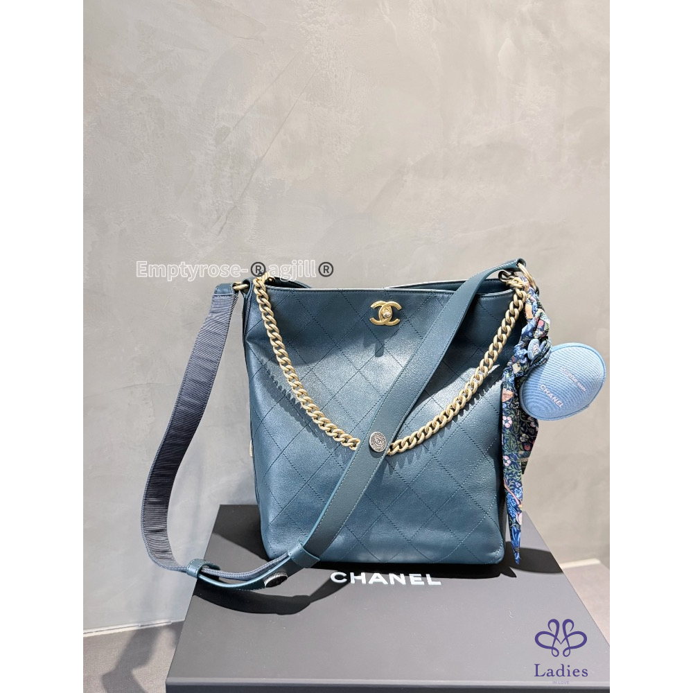 CHANEL香奈兒 經典菱格紋 藍白拼色漁夫鞋 38碼 成色如圖