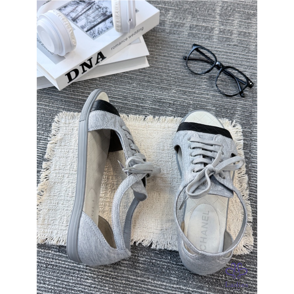 CHANEL香奈兒係帶涼鞋 灰黑配色 39碼 全新 成色如圖