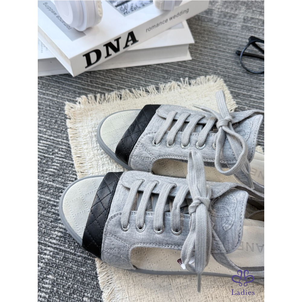 首頁 精品女鞋 CHANEL香奈兒係帶涼鞋 灰黑配色 39碼 全新 成色如圖