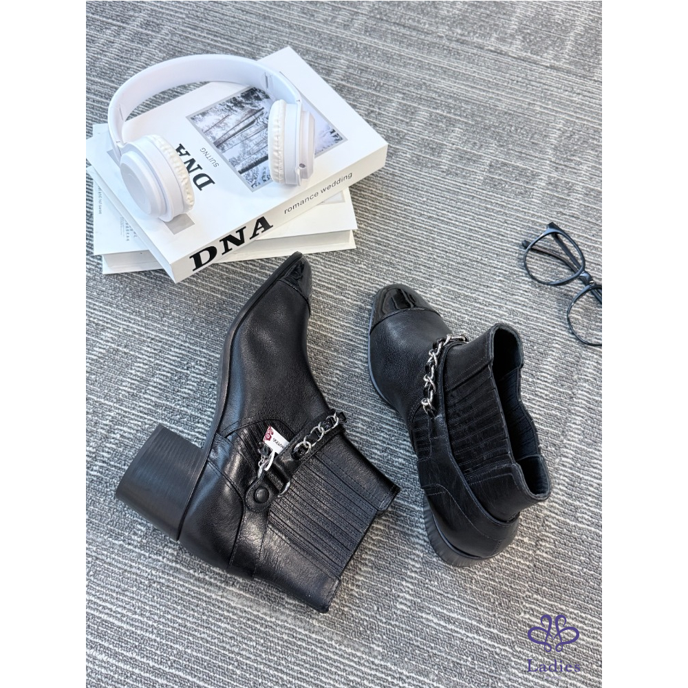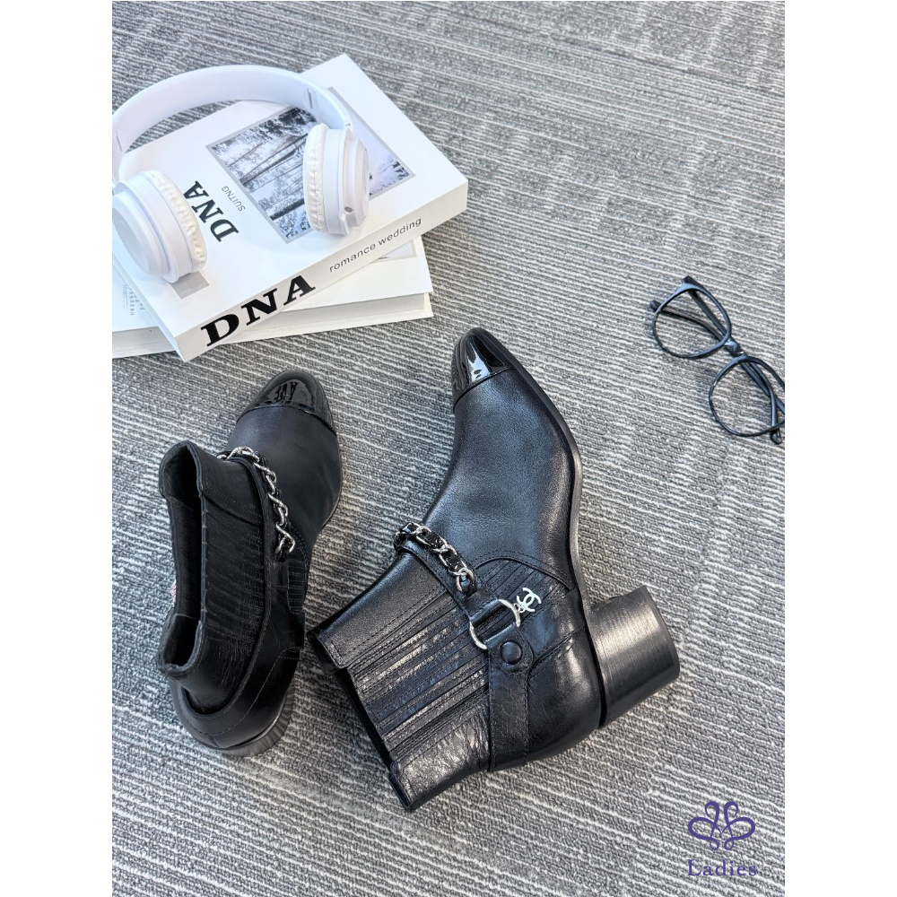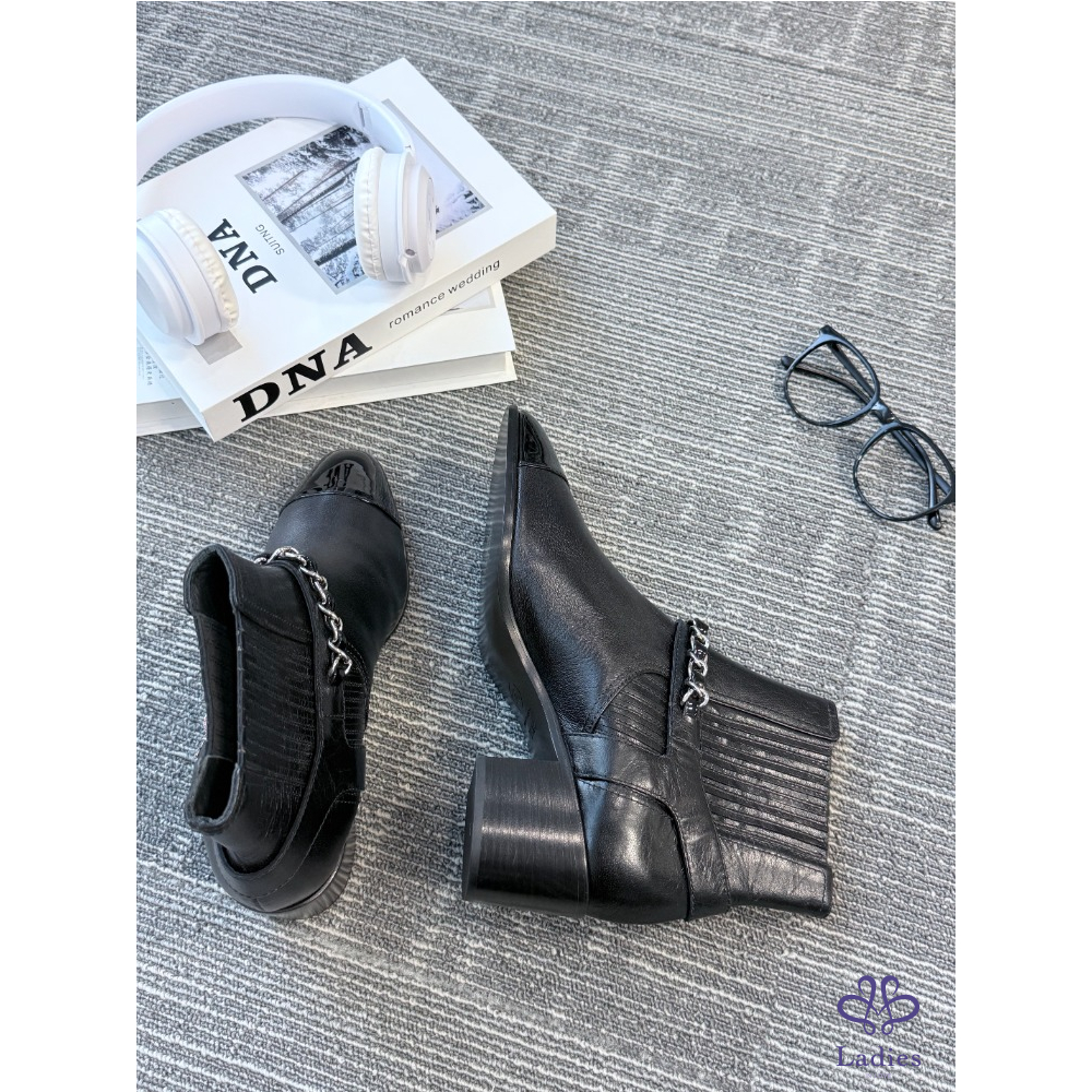 CHANEL香奈兒 黑色皮穿鏈雙C 切爾西靴 39.5碼 全新