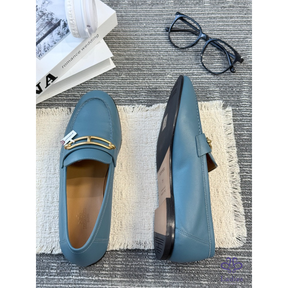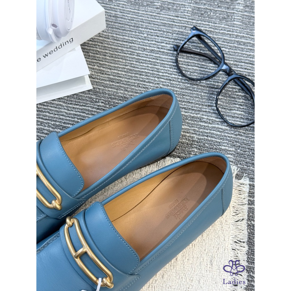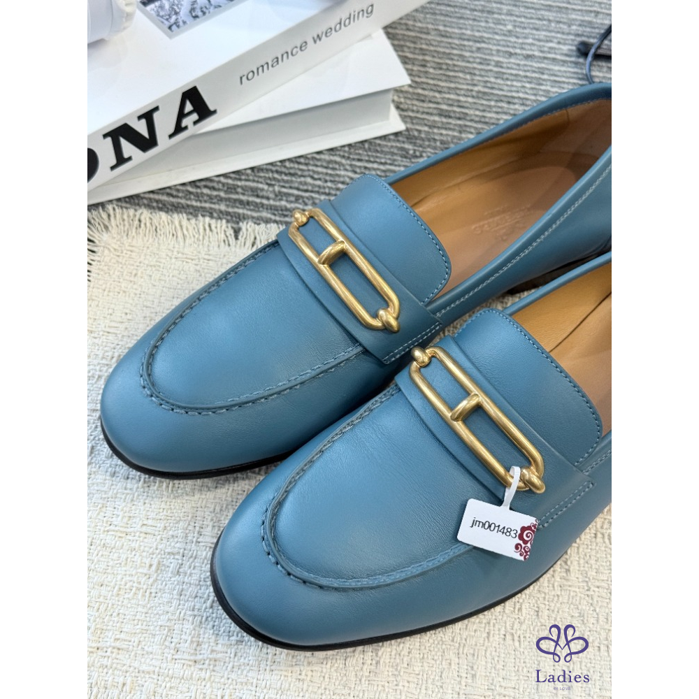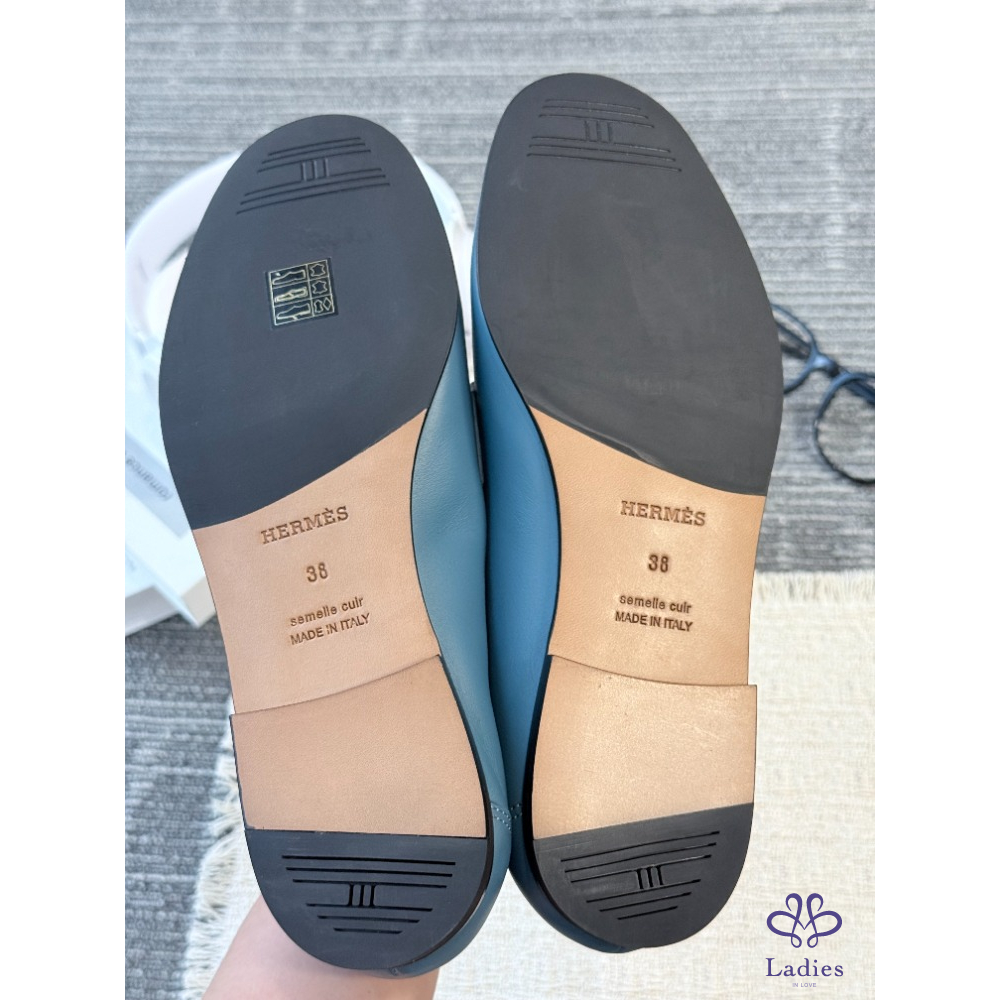 HERMES愛馬仕 藍色豬鼻子 樂福鞋 全新試穿 38碼