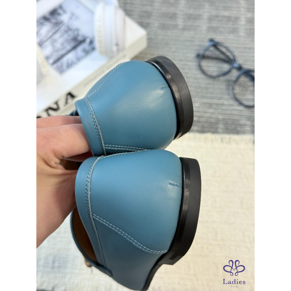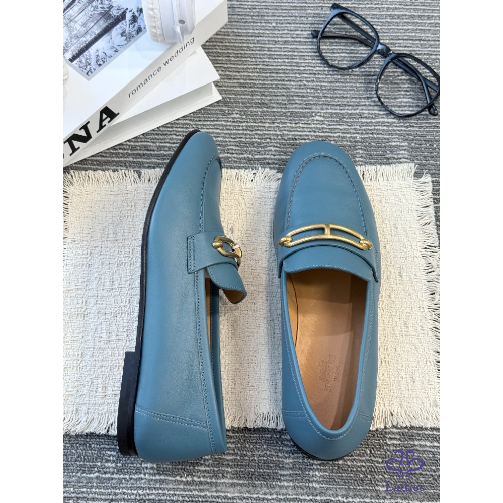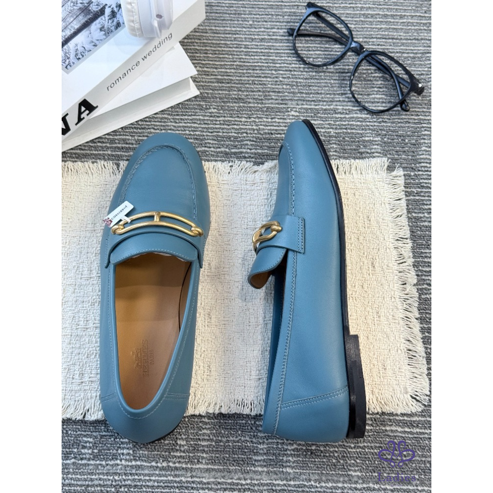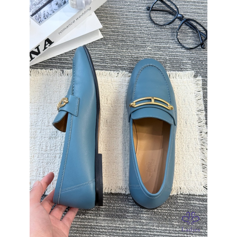 HERMES愛馬仕 藍色豬鼻子 樂福鞋 全新試穿 38碼