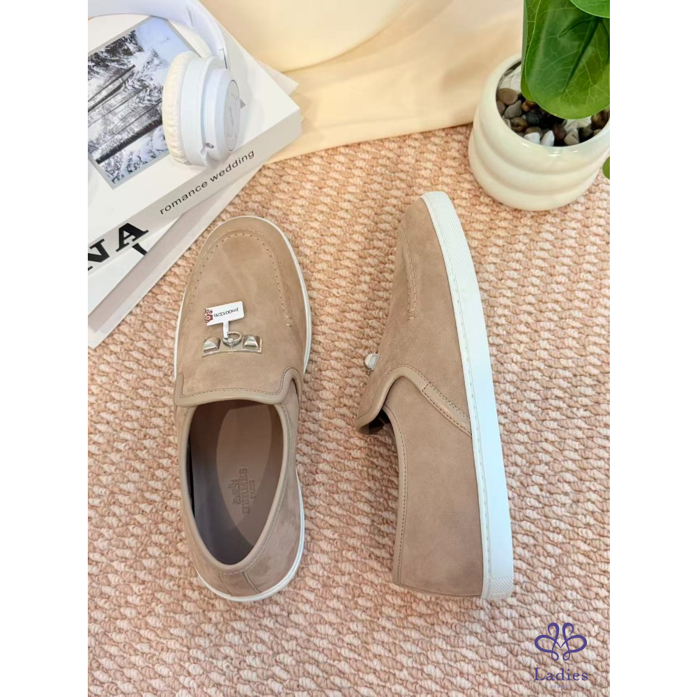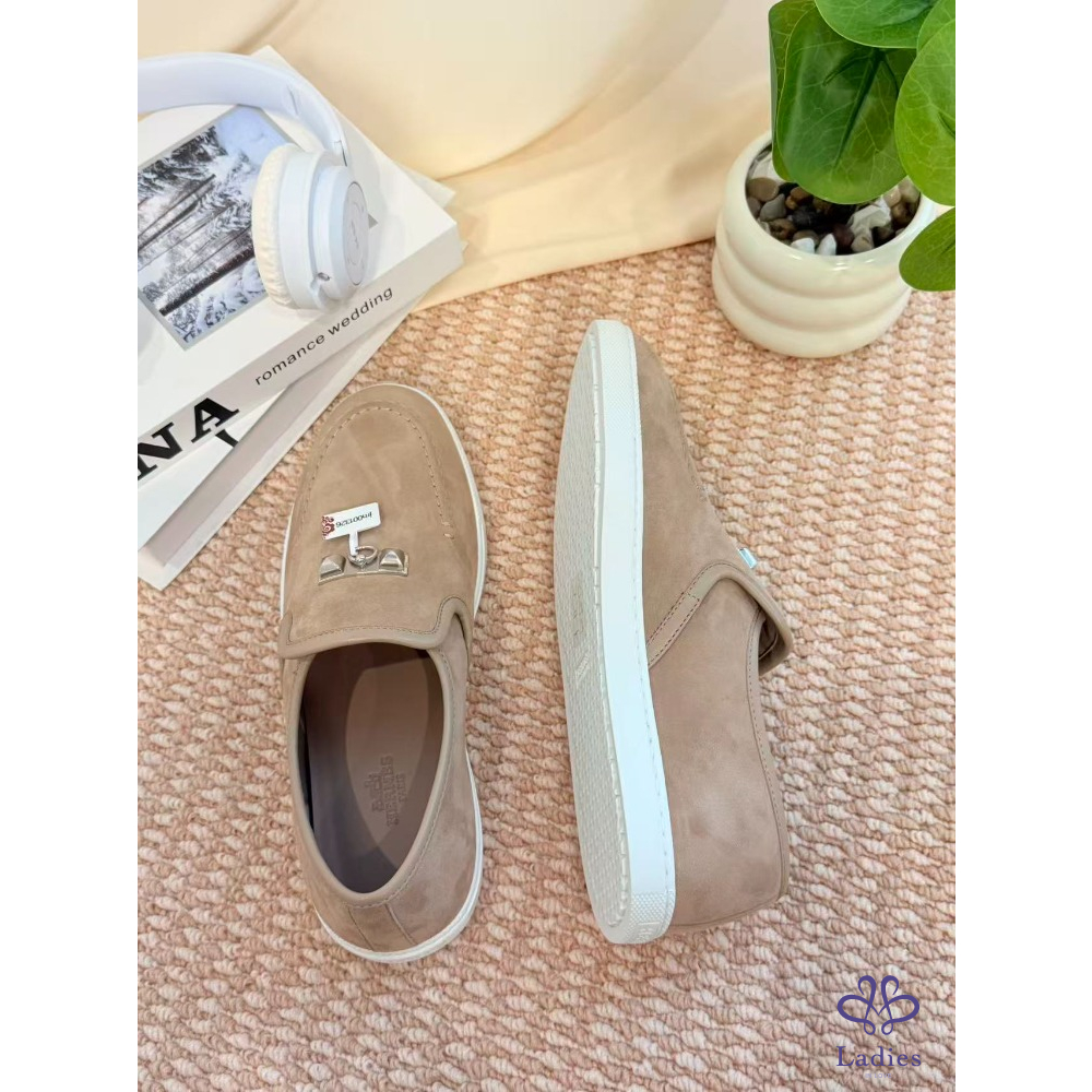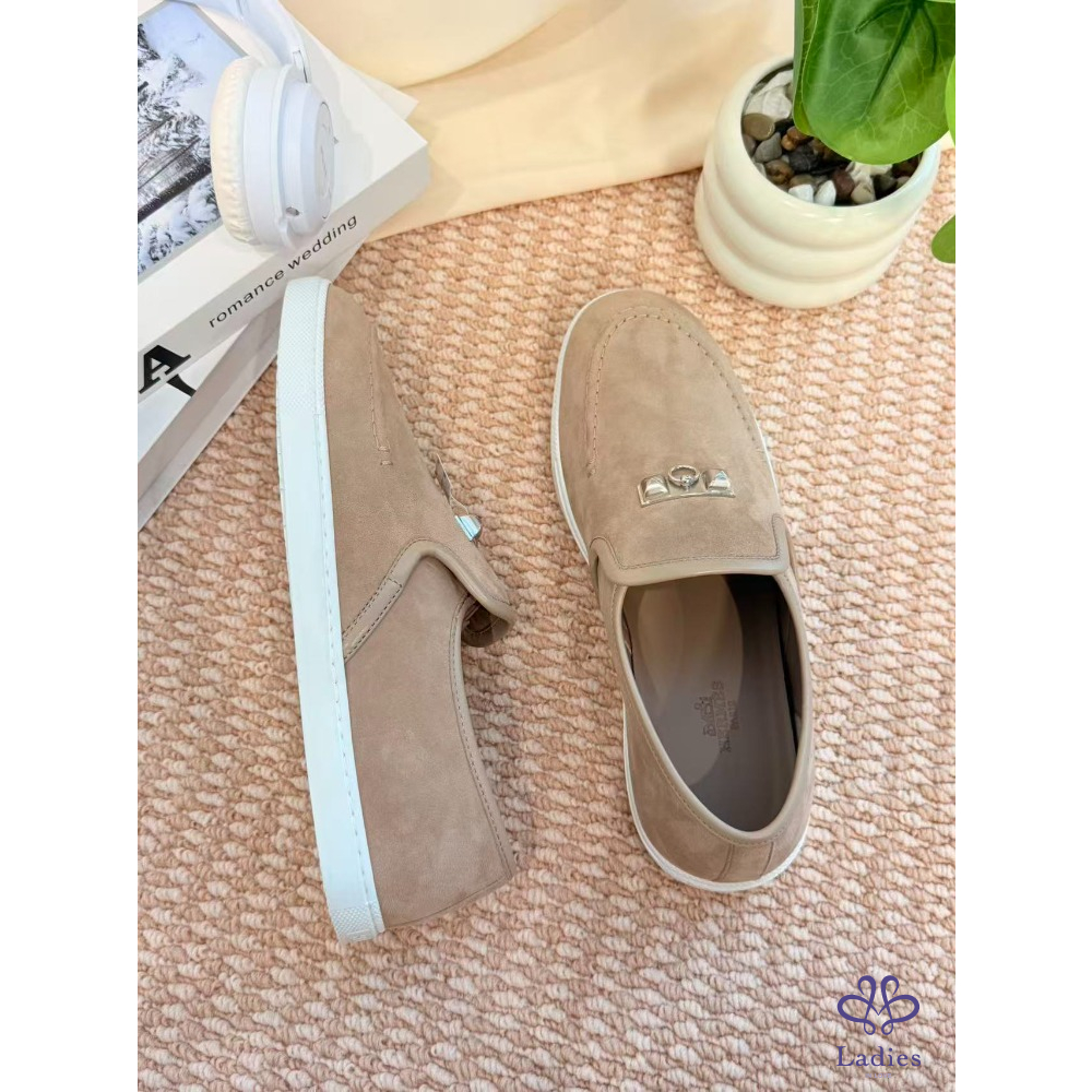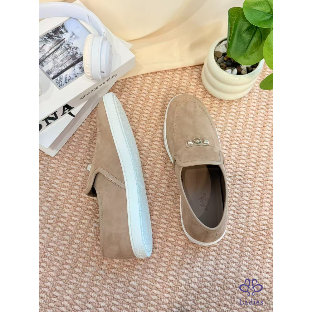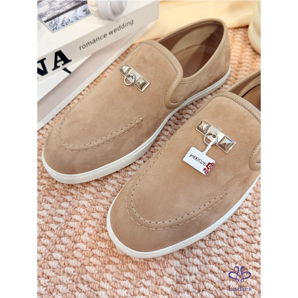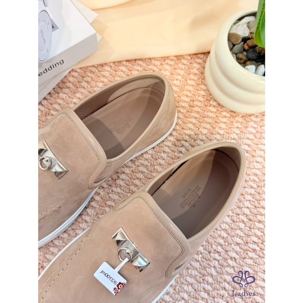 HERMES愛馬仕 灰色麝皮樂福鞋 全新 38碼