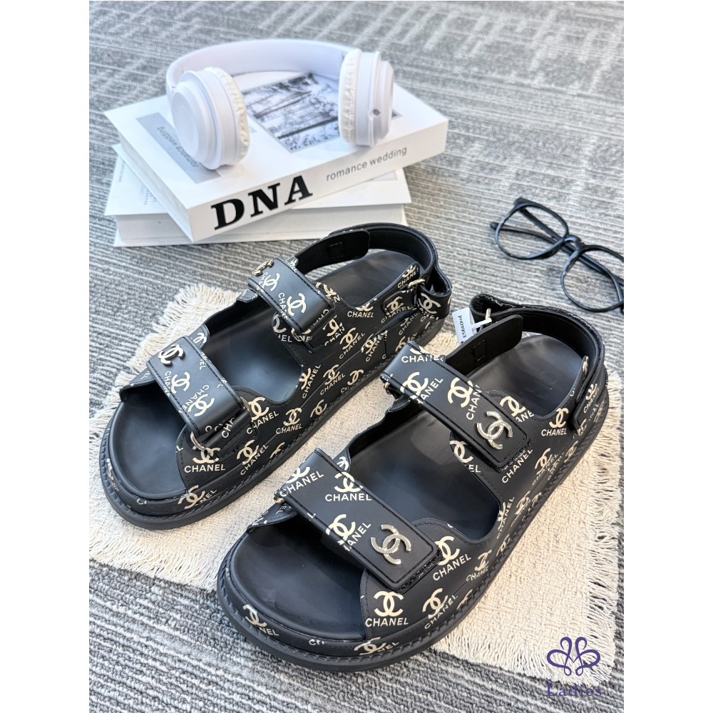 CHANEL香奈兒 雙C香水吊墜黑色涼鞋 全新 37碼