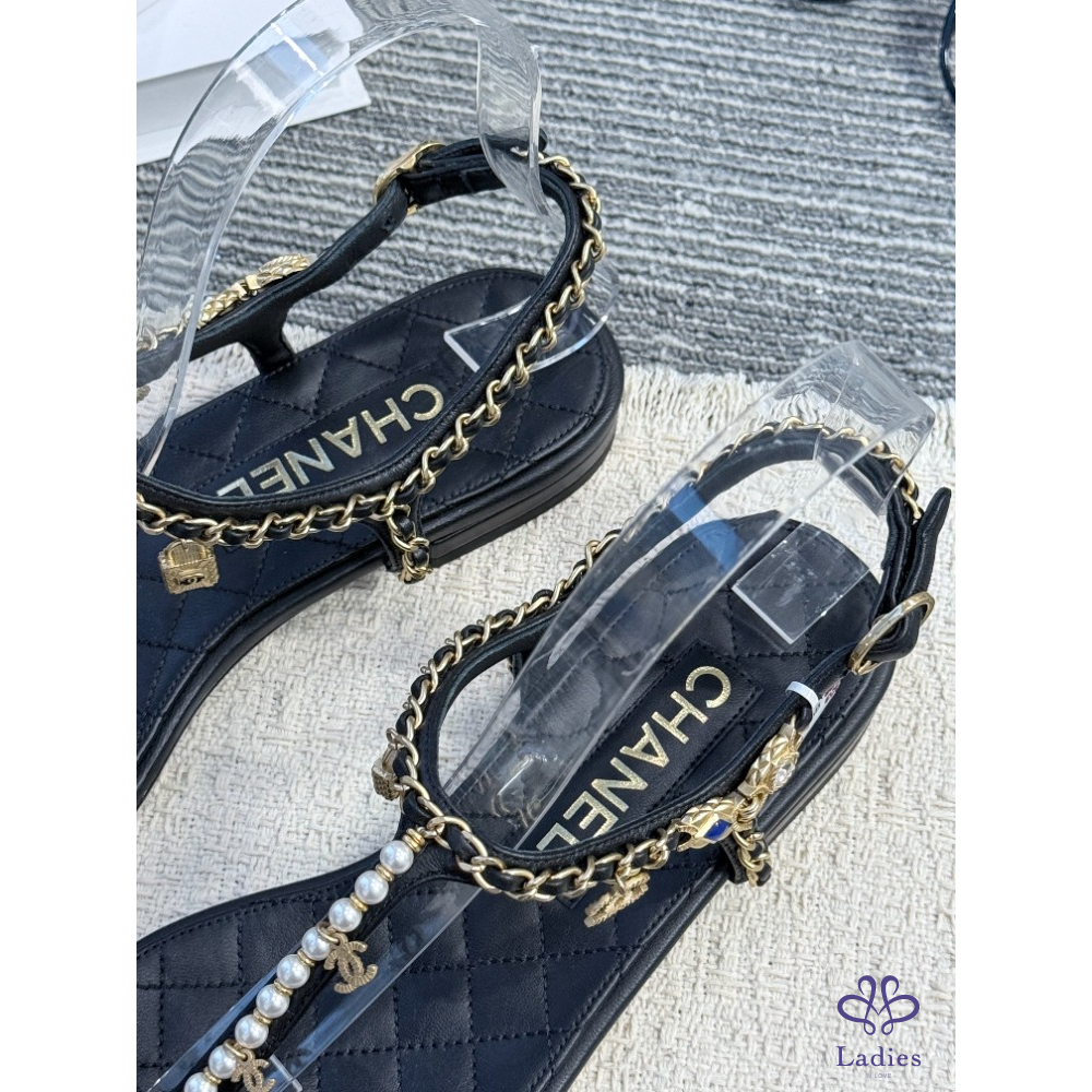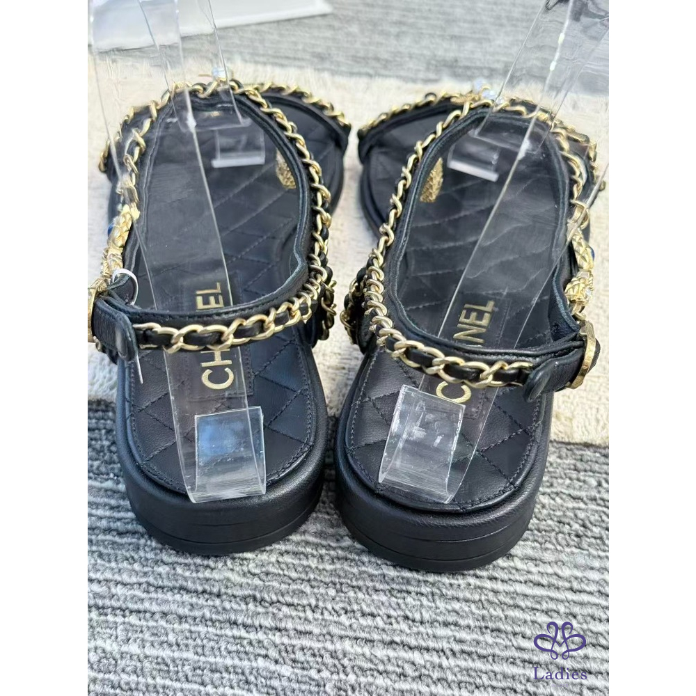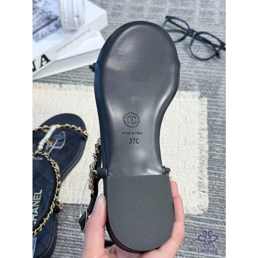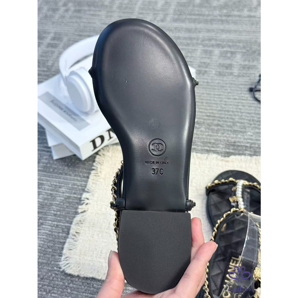 首頁 精品女鞋 CHANEL香奈兒 雙C香水吊墜黑色涼鞋 全新 37碼