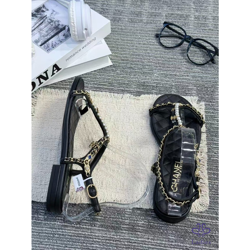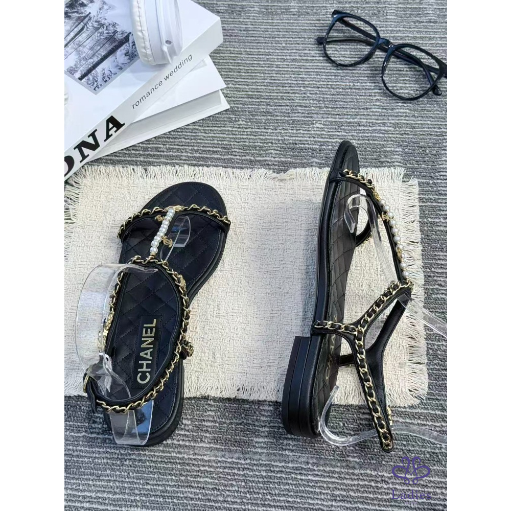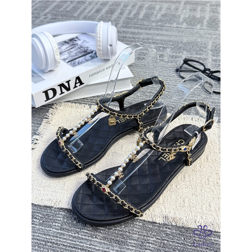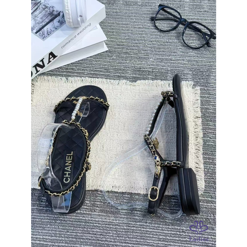 首頁 精品女鞋 CHANEL香奈兒 雙C香水吊墜黑色涼鞋 全新 37碼