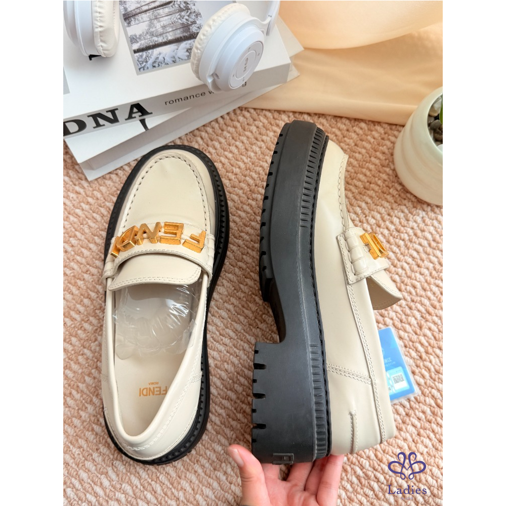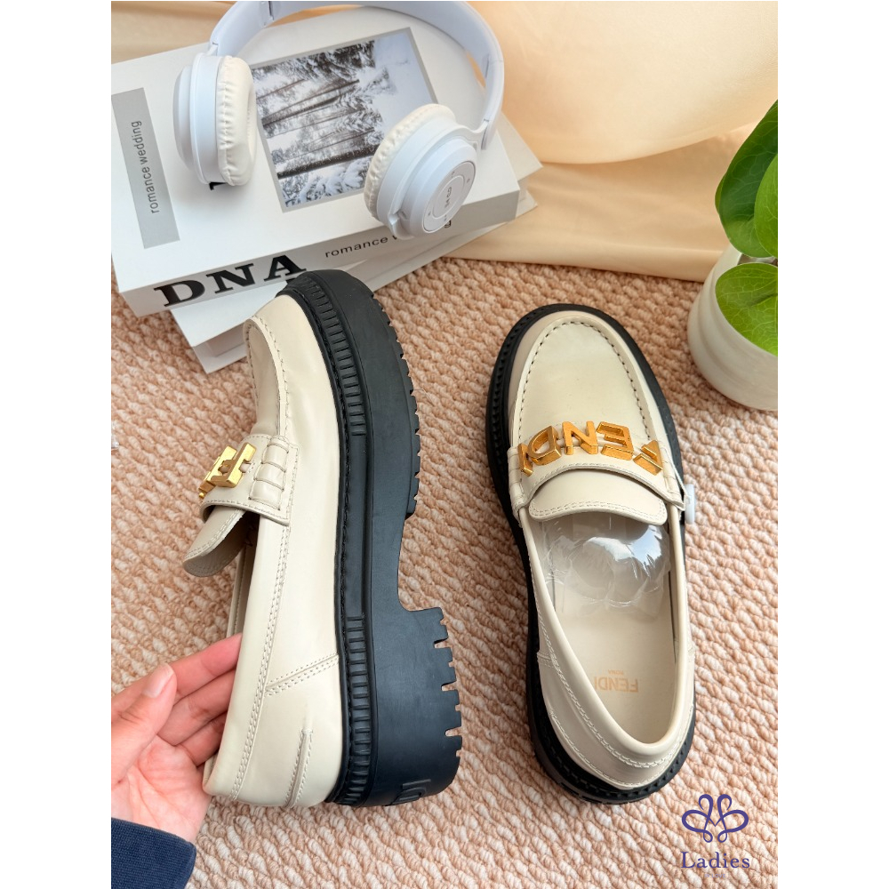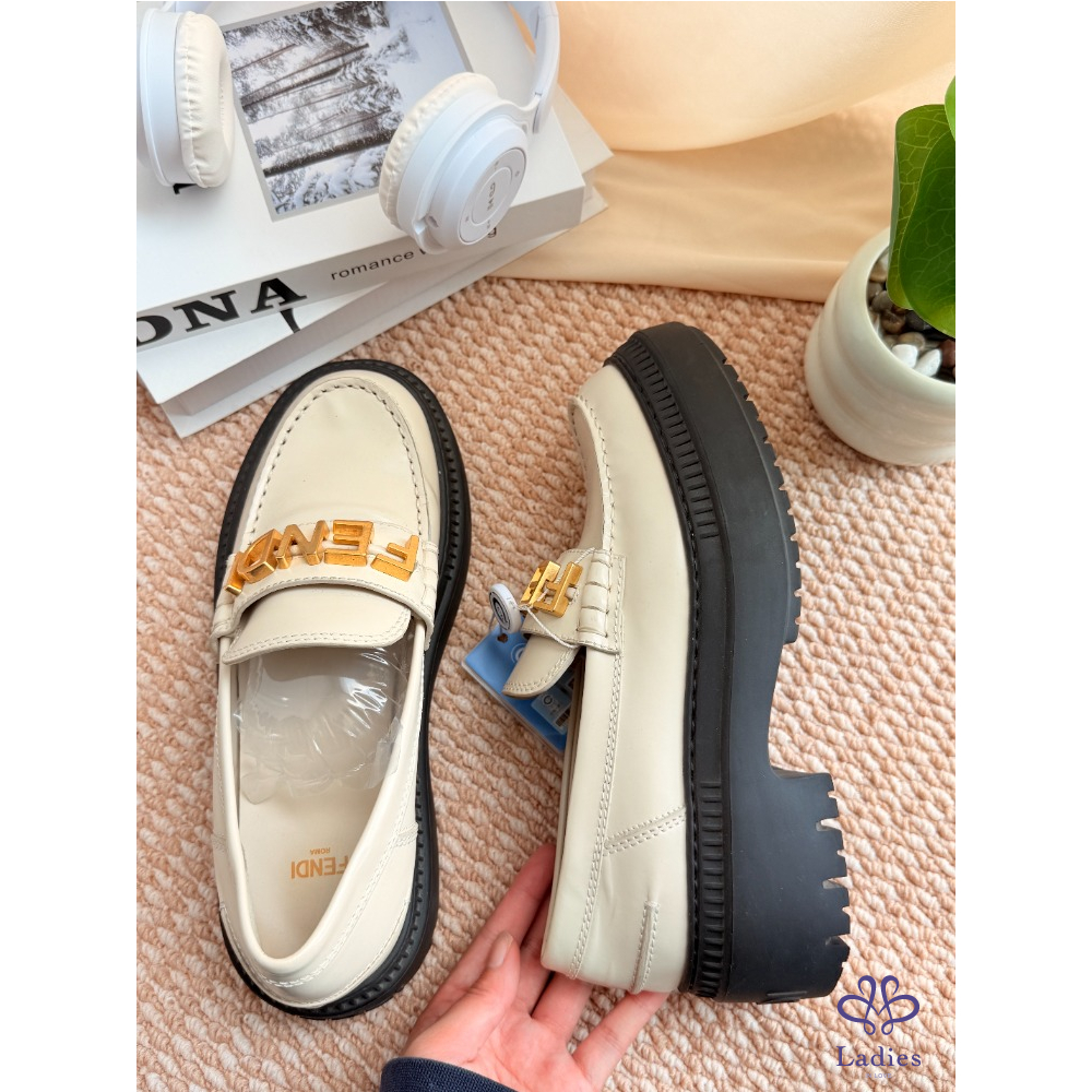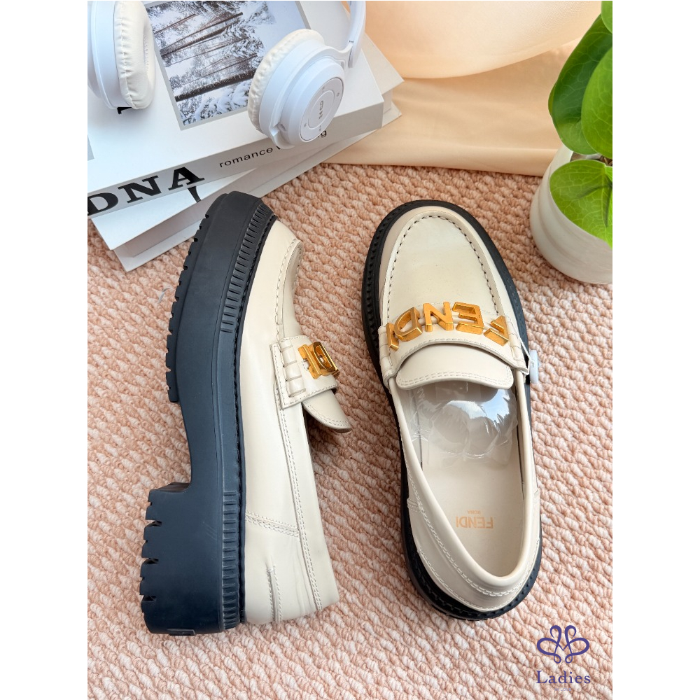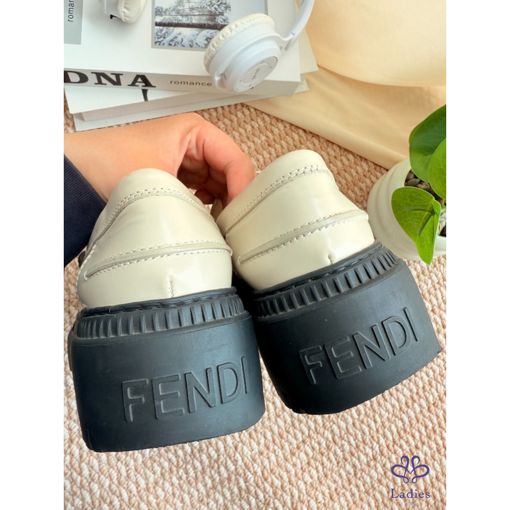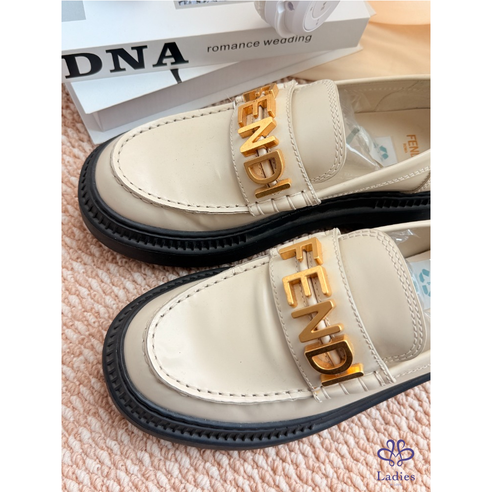 首頁 精品女鞋 FENDI 芬迪 米色字母樂福鞋 38碼 成色如圖