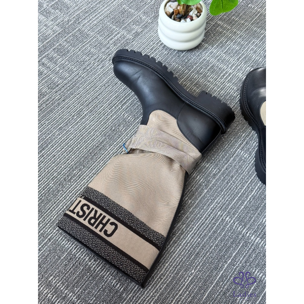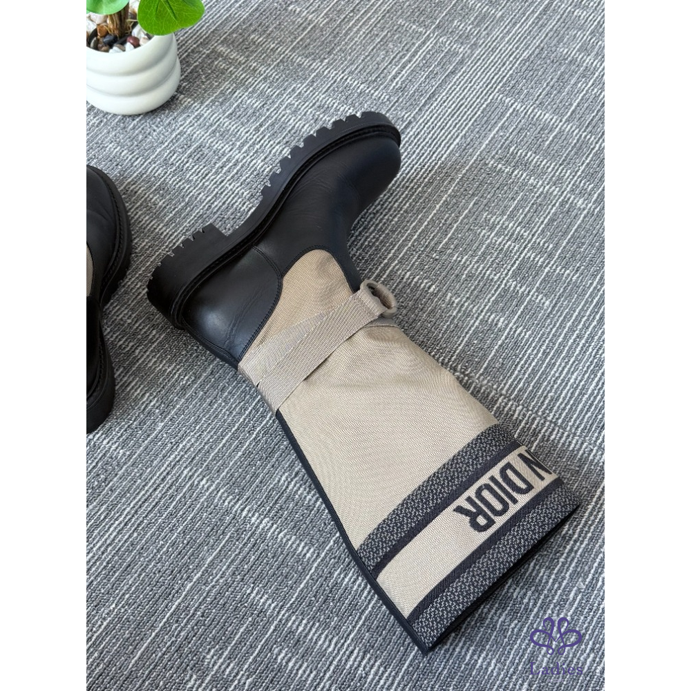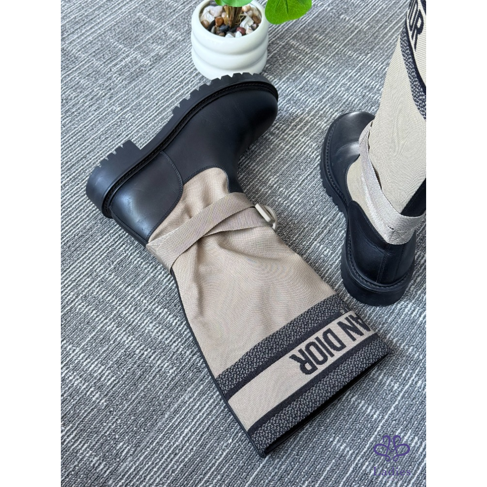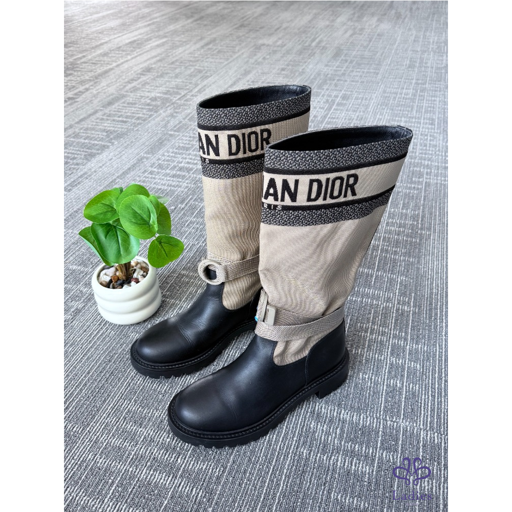 DIOR迪奧 D-MAJOR 灰褐色高幫長筒靴 36.5碼 成色如圖
