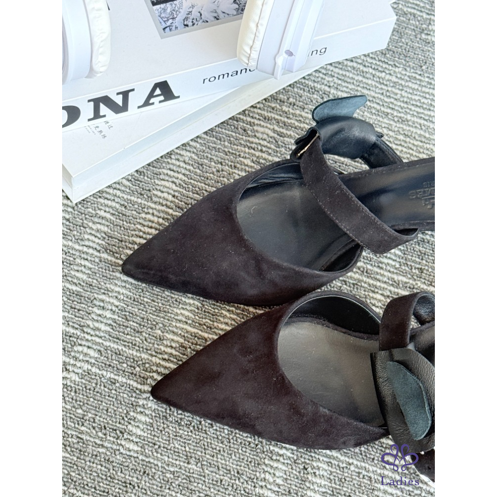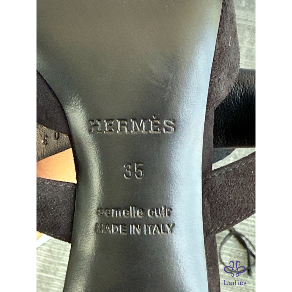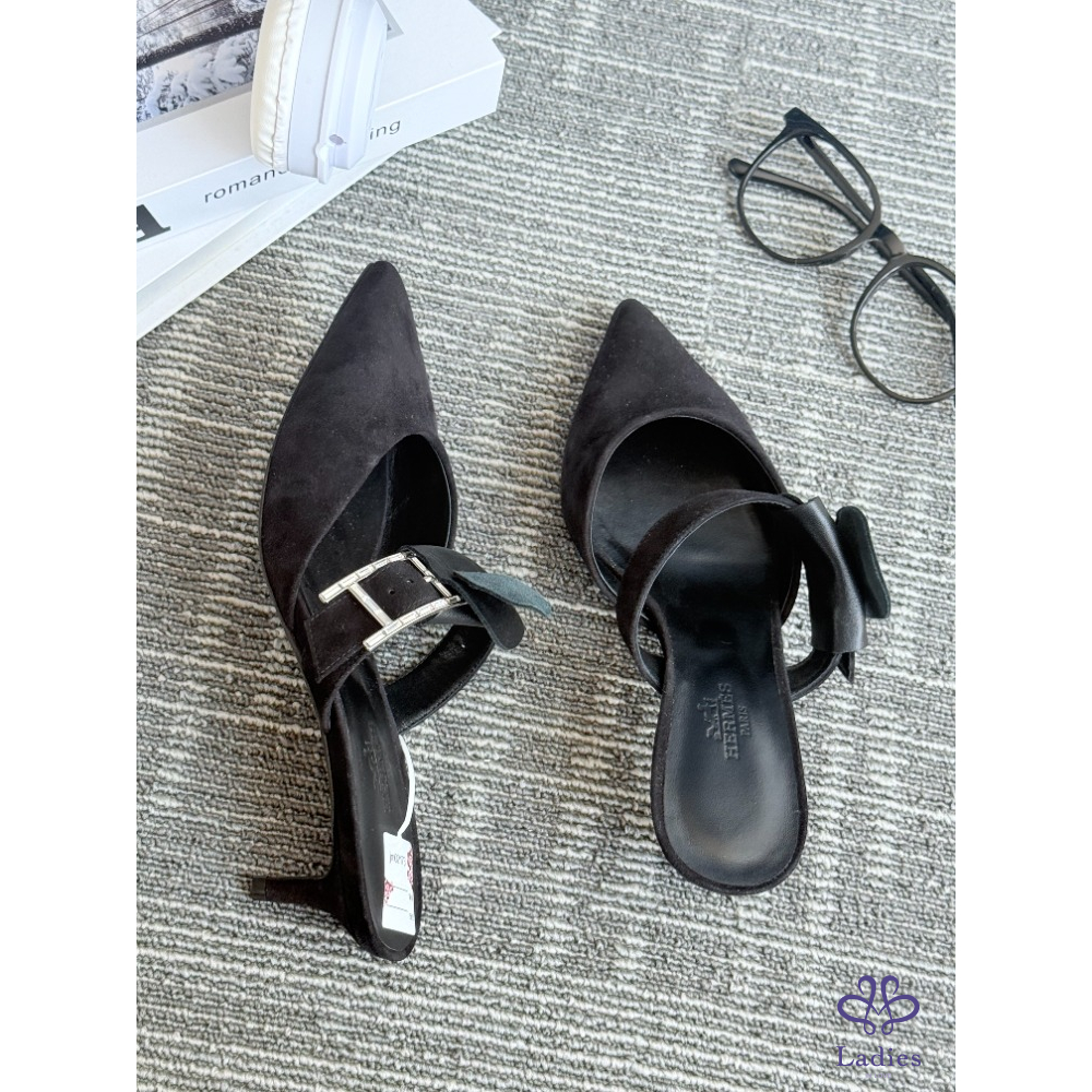 HERMES愛馬仕 Blink系列 黑色麝皮尖頭鑽扣 35碼 全新