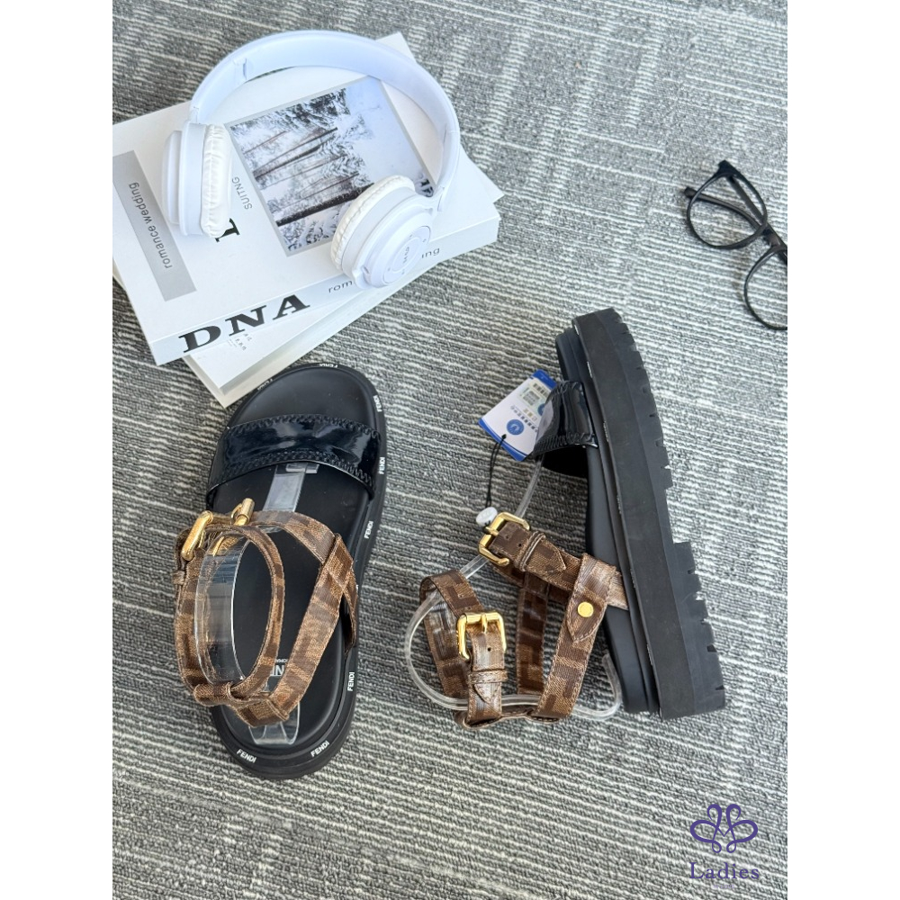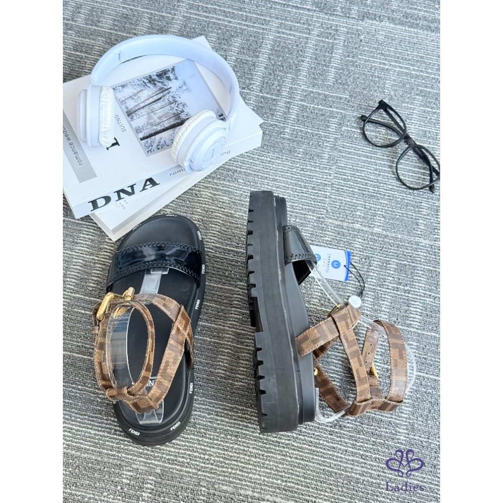 FENDI芬迪 老花綁帶厚底涼鞋 36碼 成色如圖