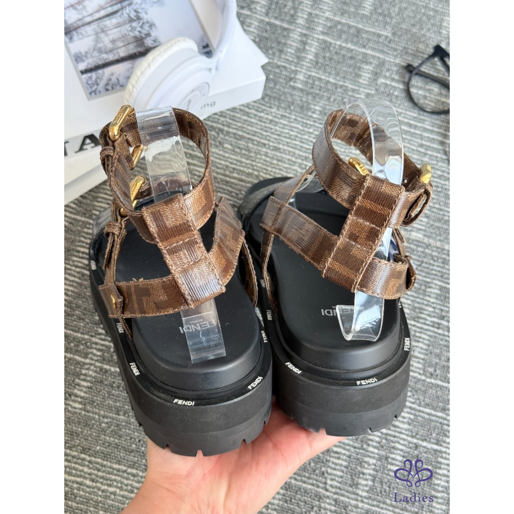 首頁 精品女鞋 FENDI芬迪 老花綁帶厚底涼鞋 36碼 成色如圖