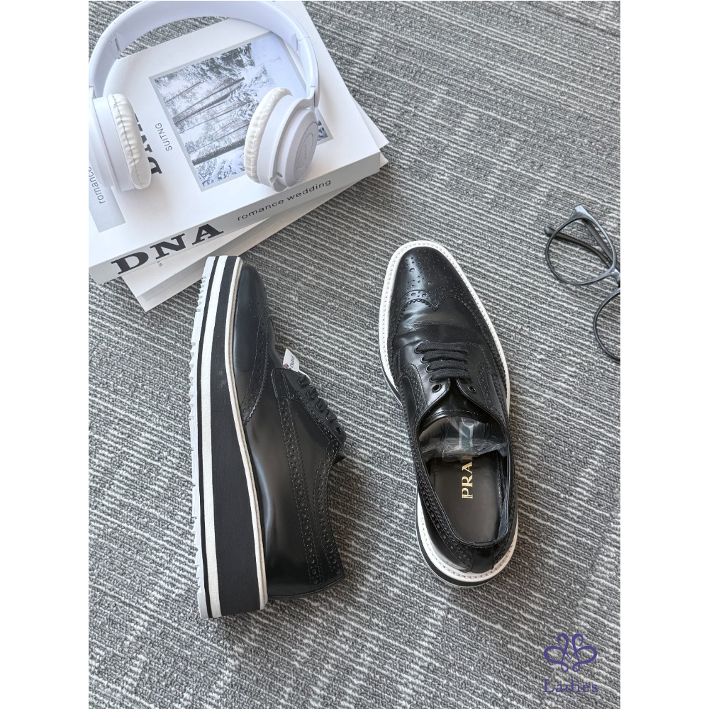 PRADA普拉達 黑白鬆糕鞋 36碼 成色如圖