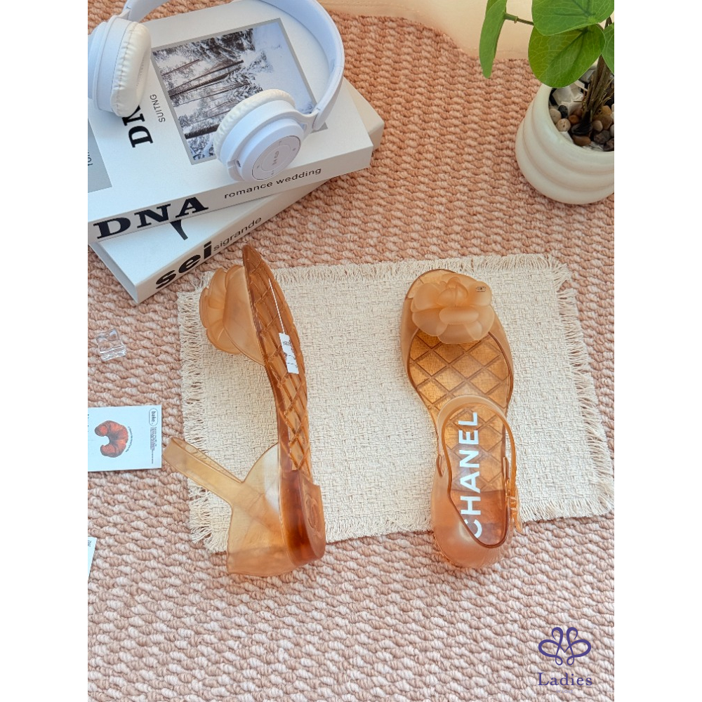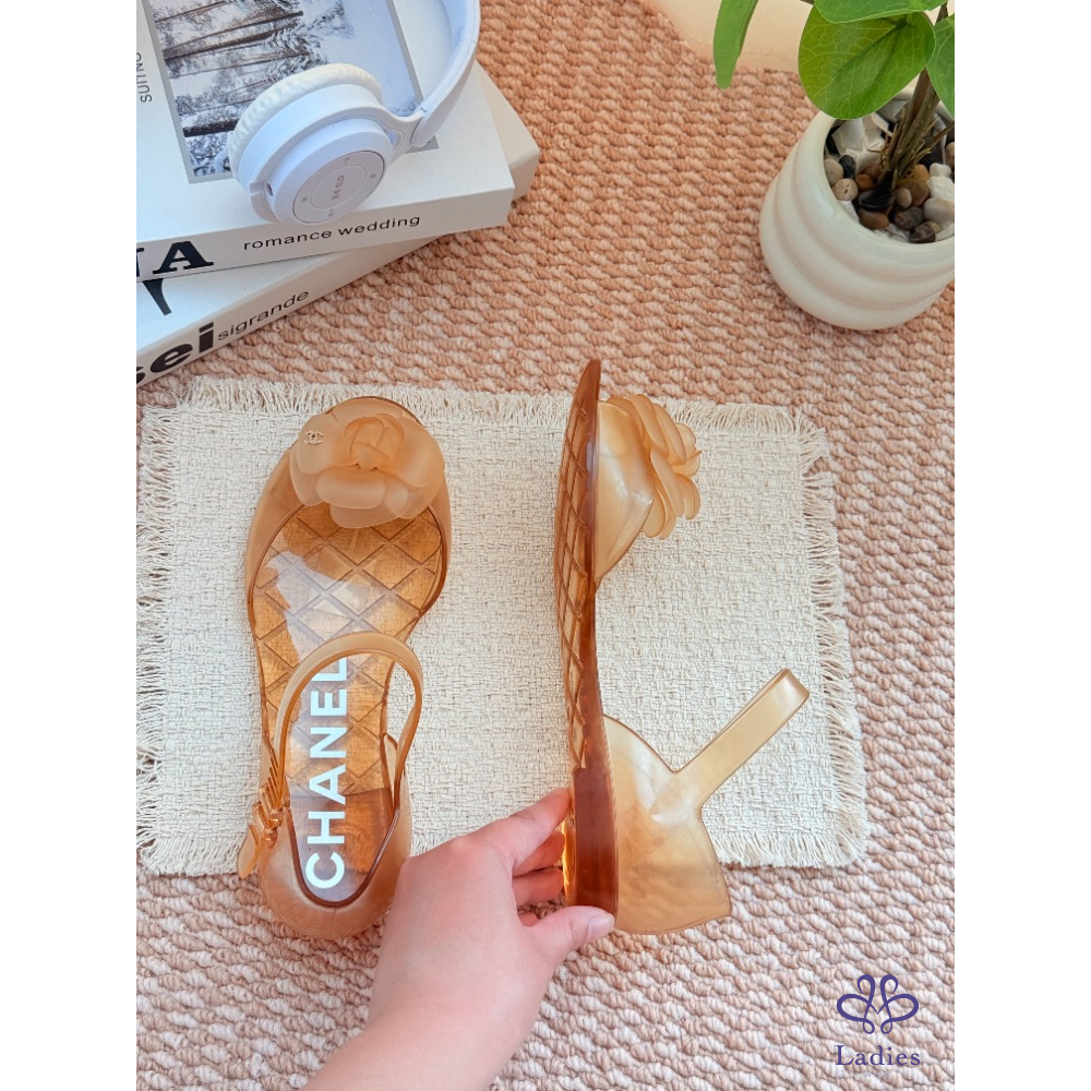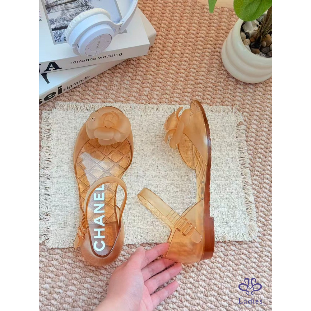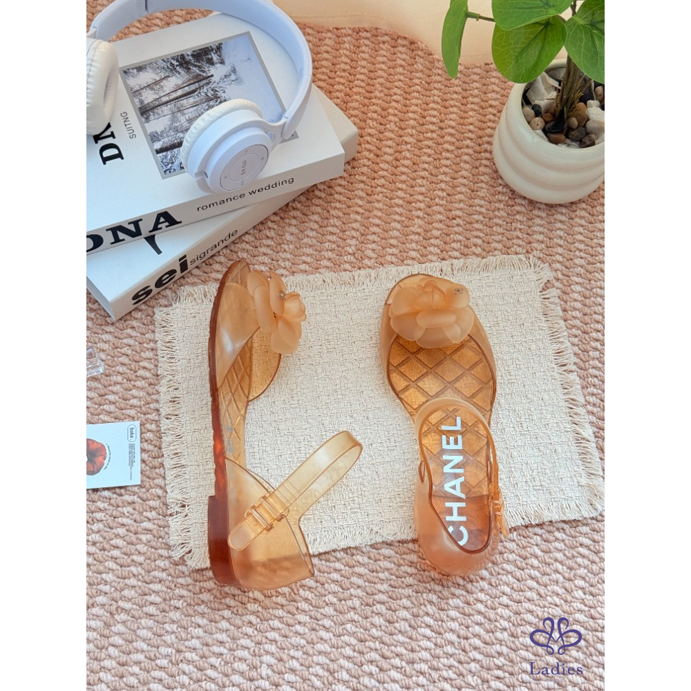 首頁 精品女鞋 CHANEL香奈兒 金色山茶花凉拖 37碼 成色如圖