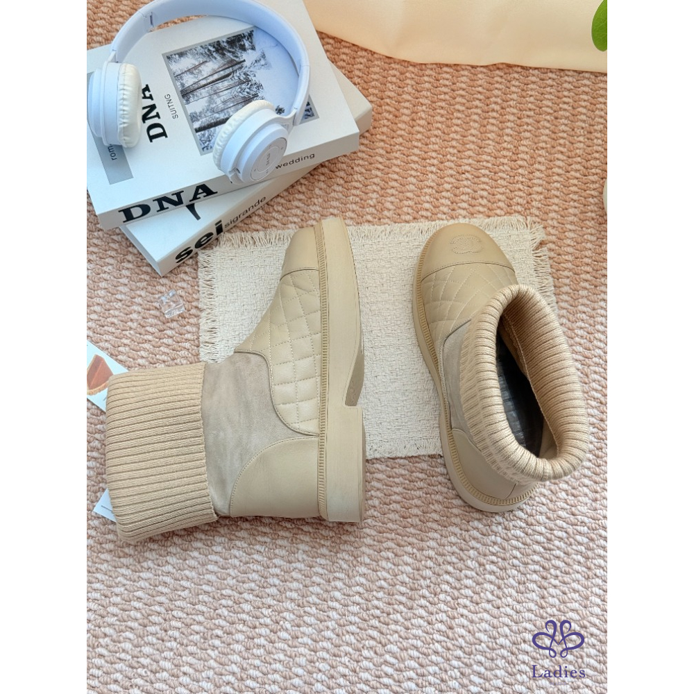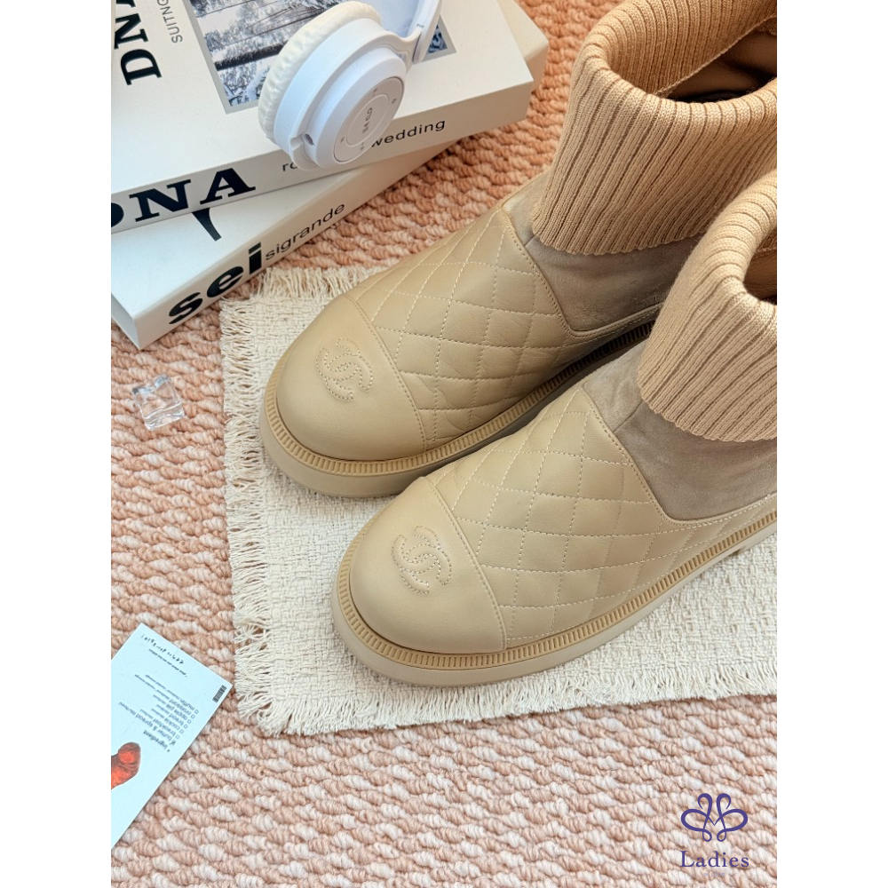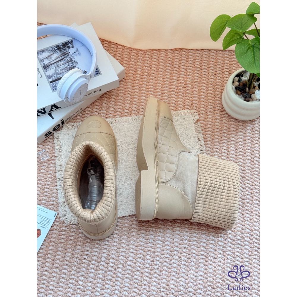 CHANEL 香奈兒 米色菱格紋 雙C襪筒靴 37碼 成色如圖