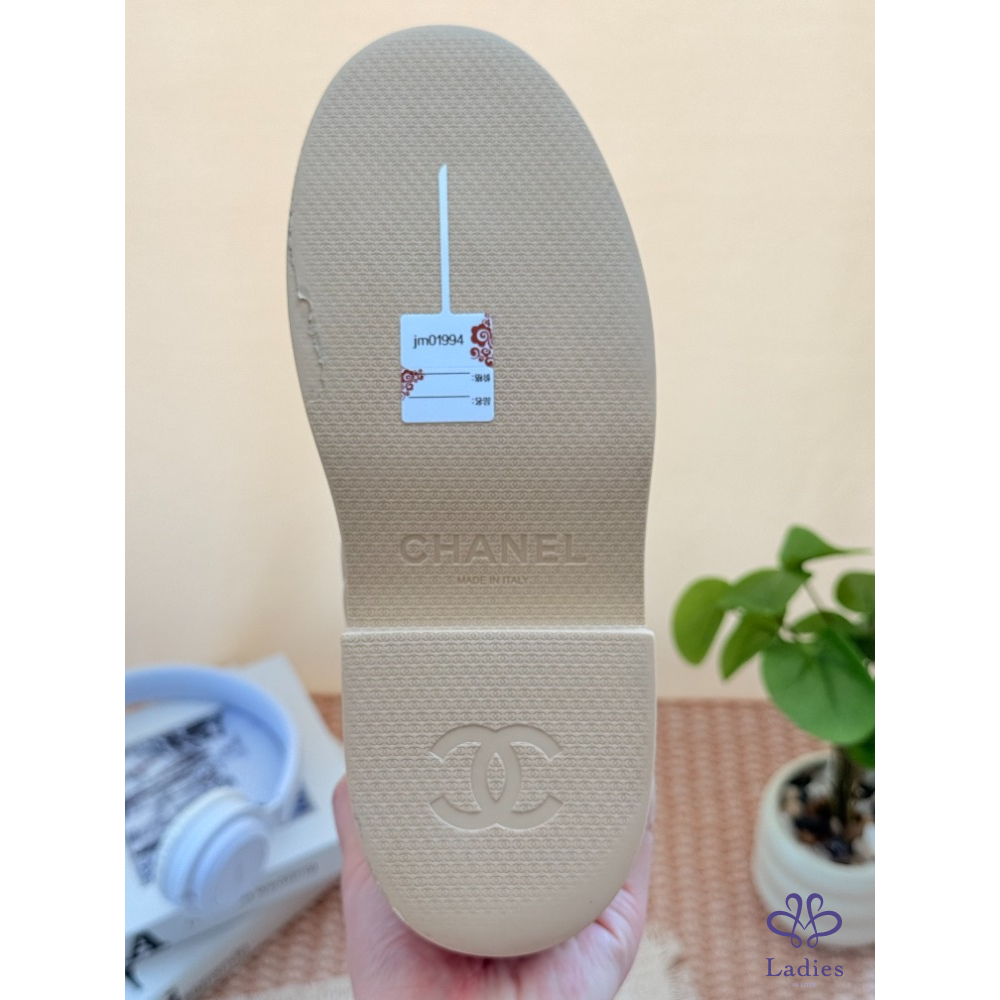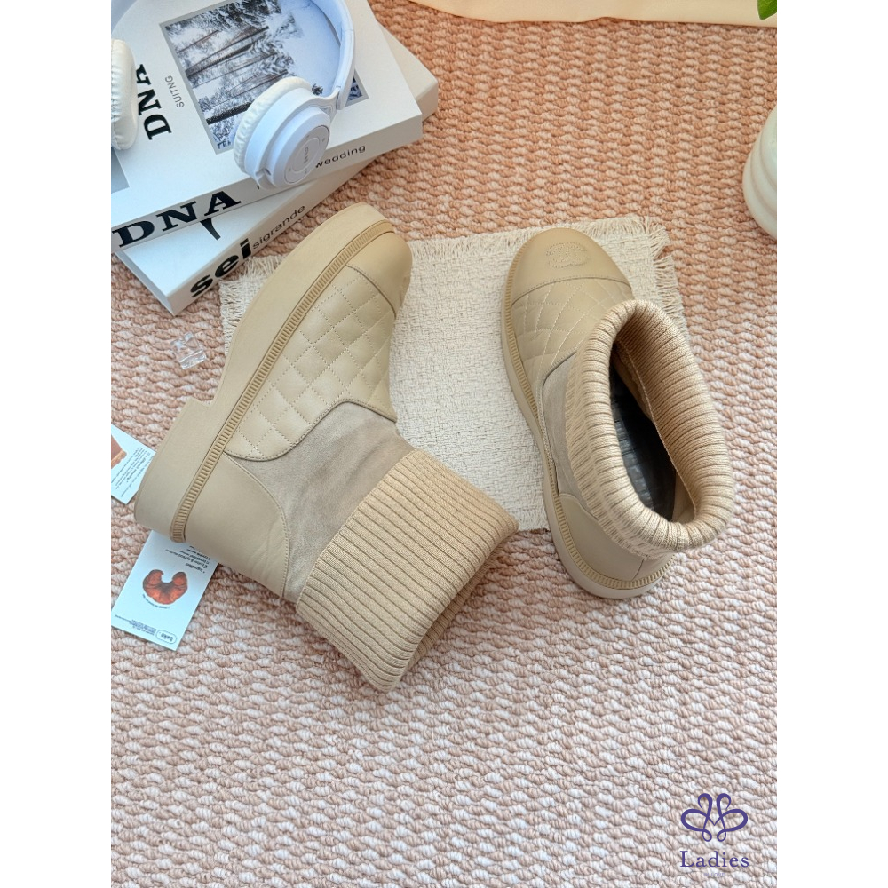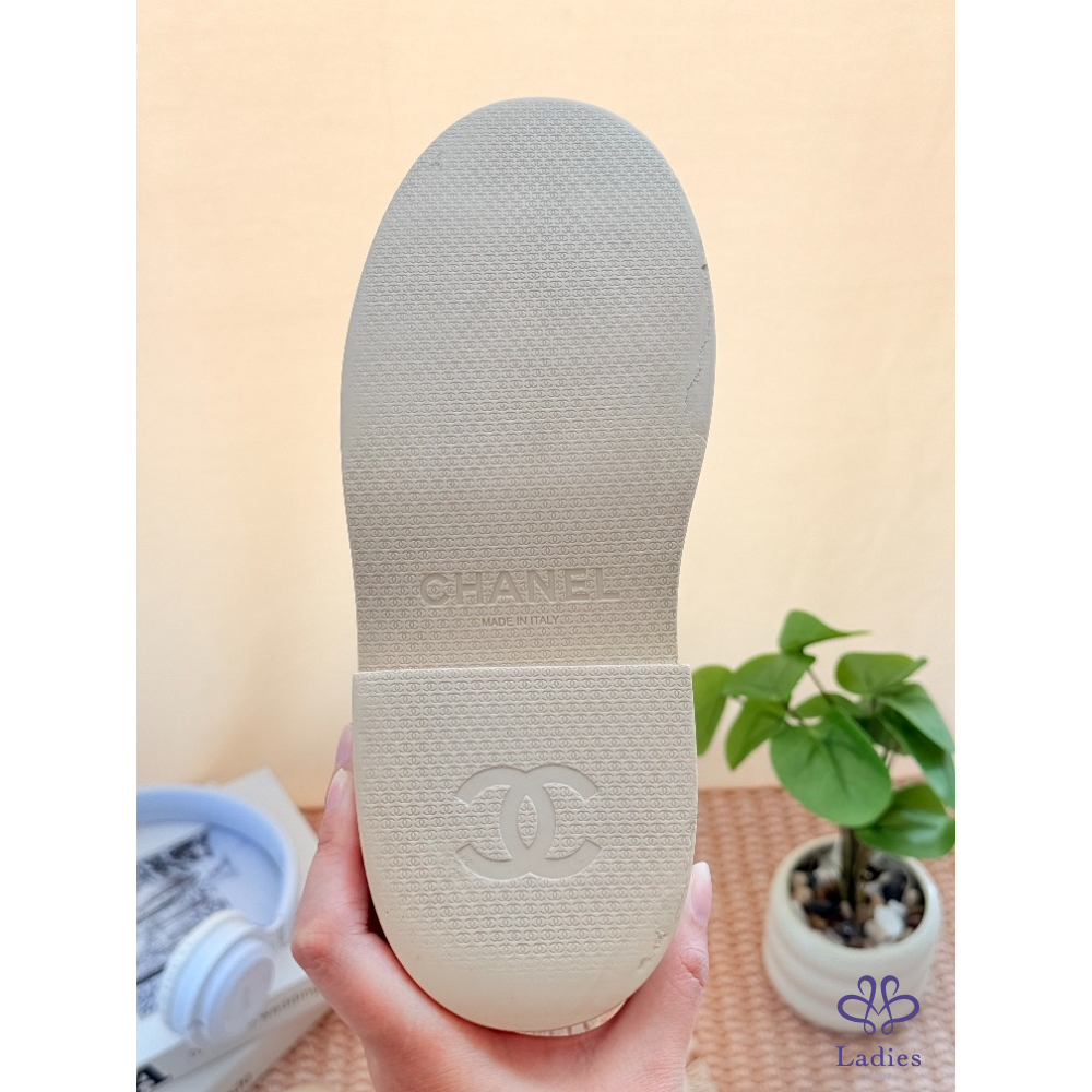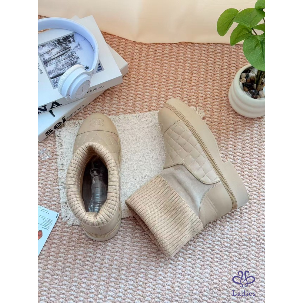CHANEL 香奈兒 米色菱格紋 雙C襪筒靴 37碼 成色如圖