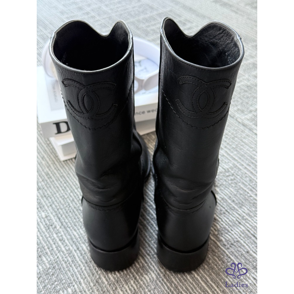 CHANEL香奈兒 黑色雙C短靴 36.5碼 成色如圖