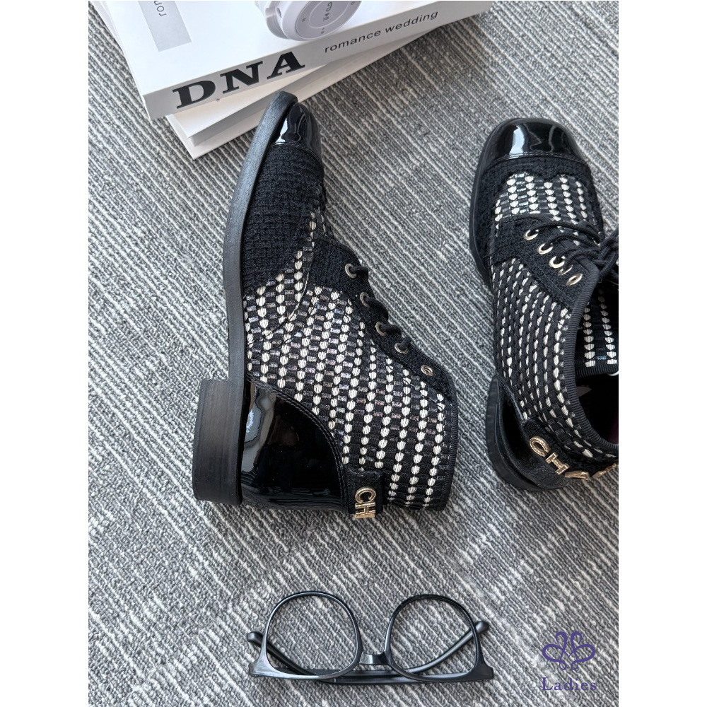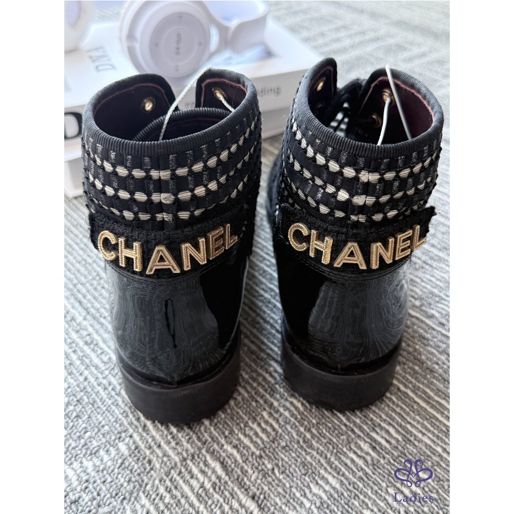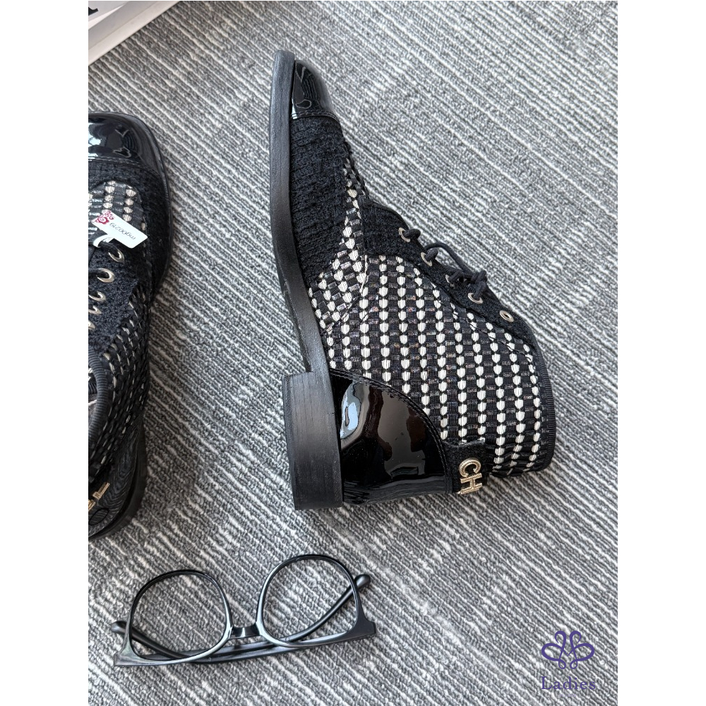 CHANEL 香奈兒 毛呢黑色短靴 37碼 成色如圖