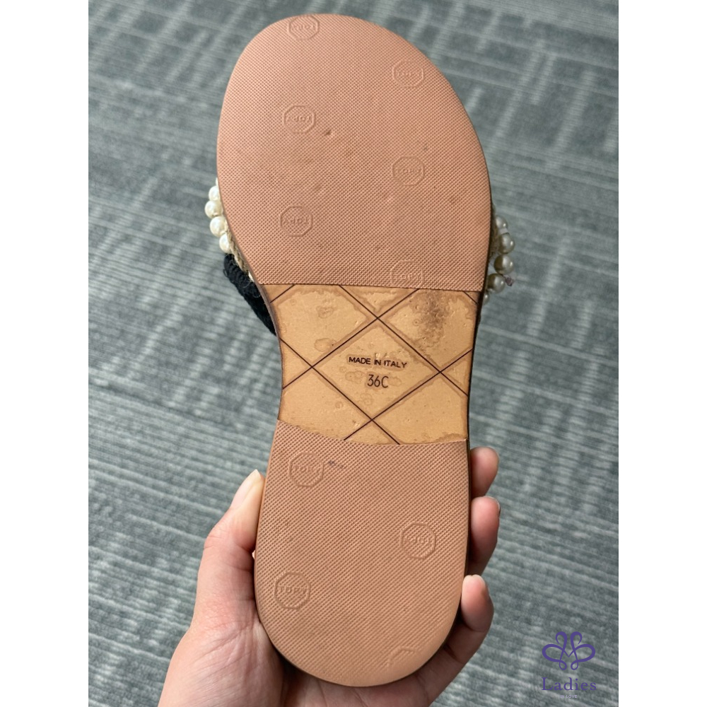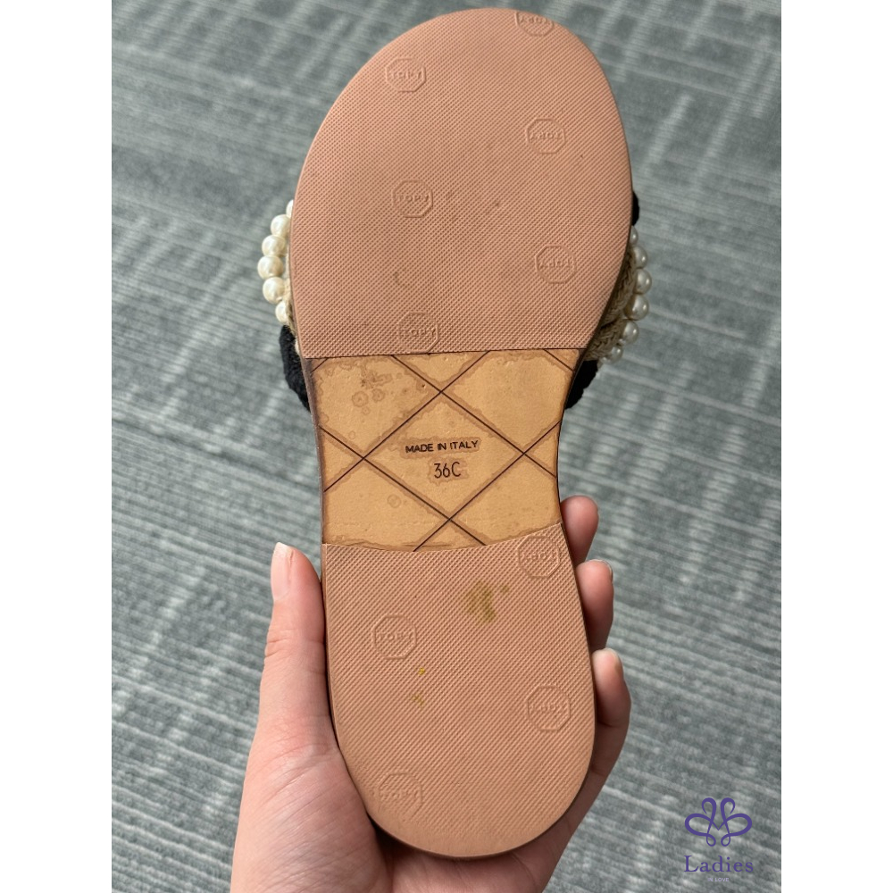 CHANEL香奈兒 黑色珍珠牛皮涼拖 36碼 成色如圖