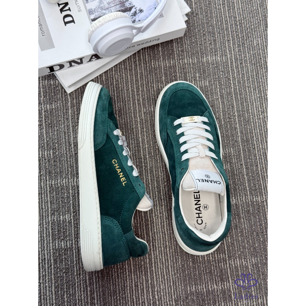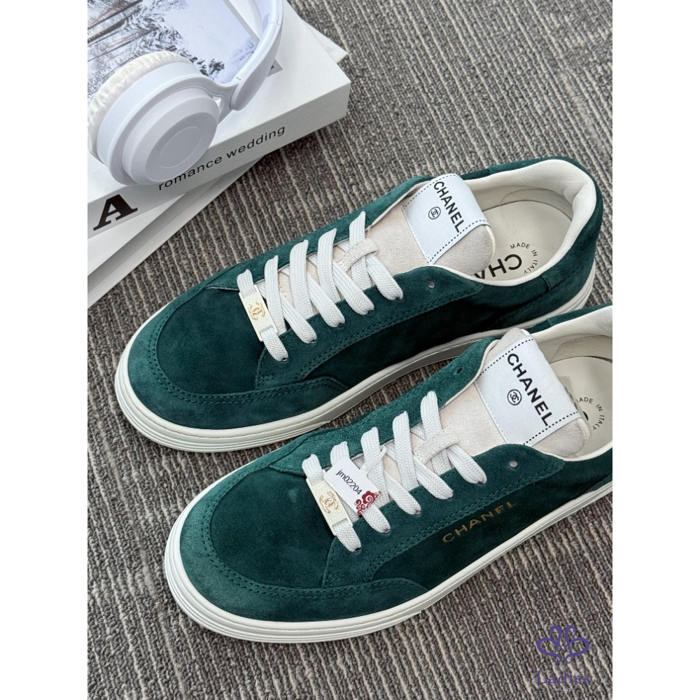CHANEL香奈兒 墨綠麝皮板鞋 39碼 成色如圖