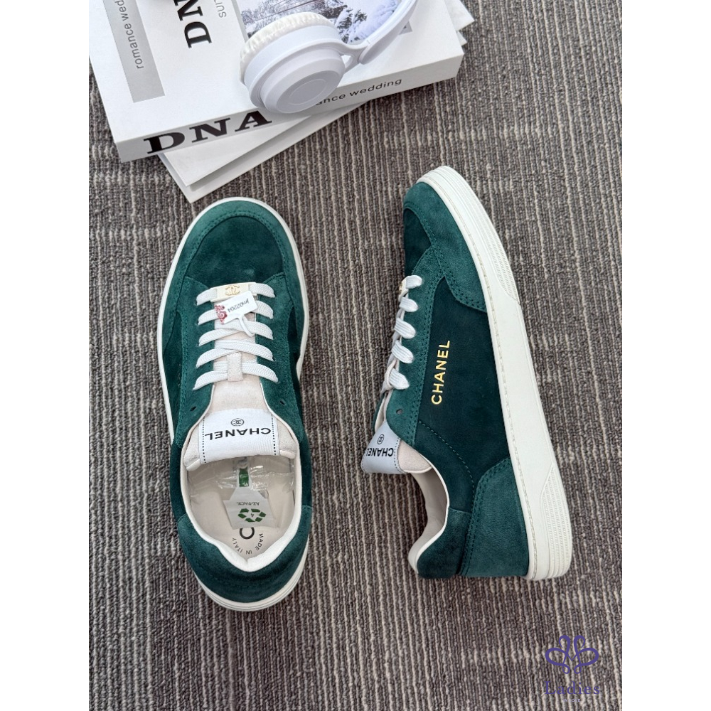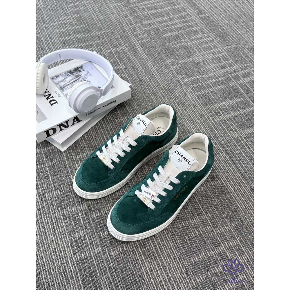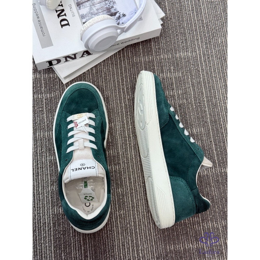 首頁 精品女鞋 CHANEL香奈兒 墨綠麝皮板鞋 39碼 成色如圖