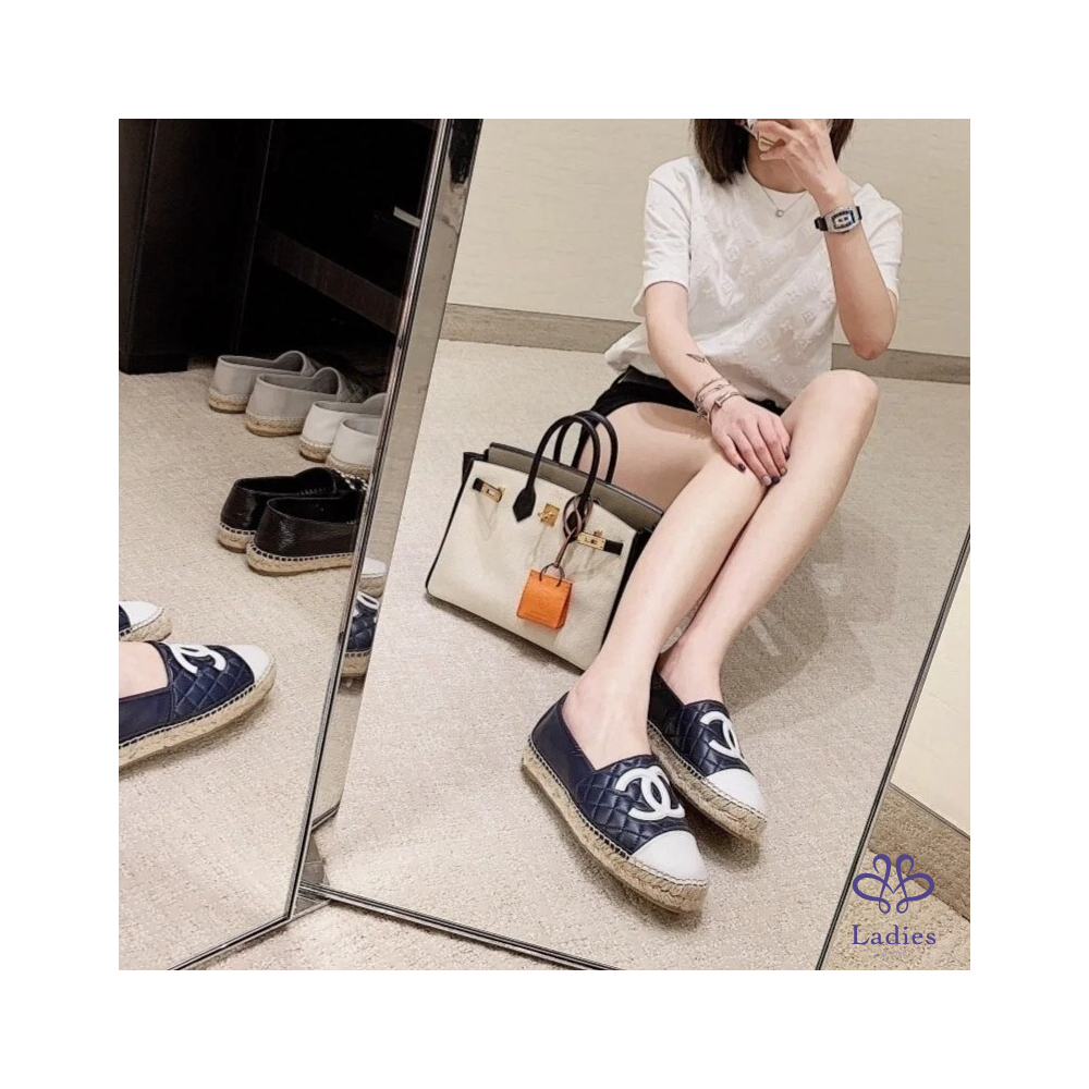 首頁 精品女鞋 CHANEL香奈兒 經典菱格紋 藍白拼色漁夫鞋 38碼 成色如圖