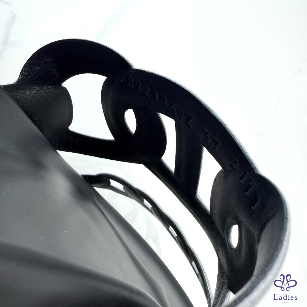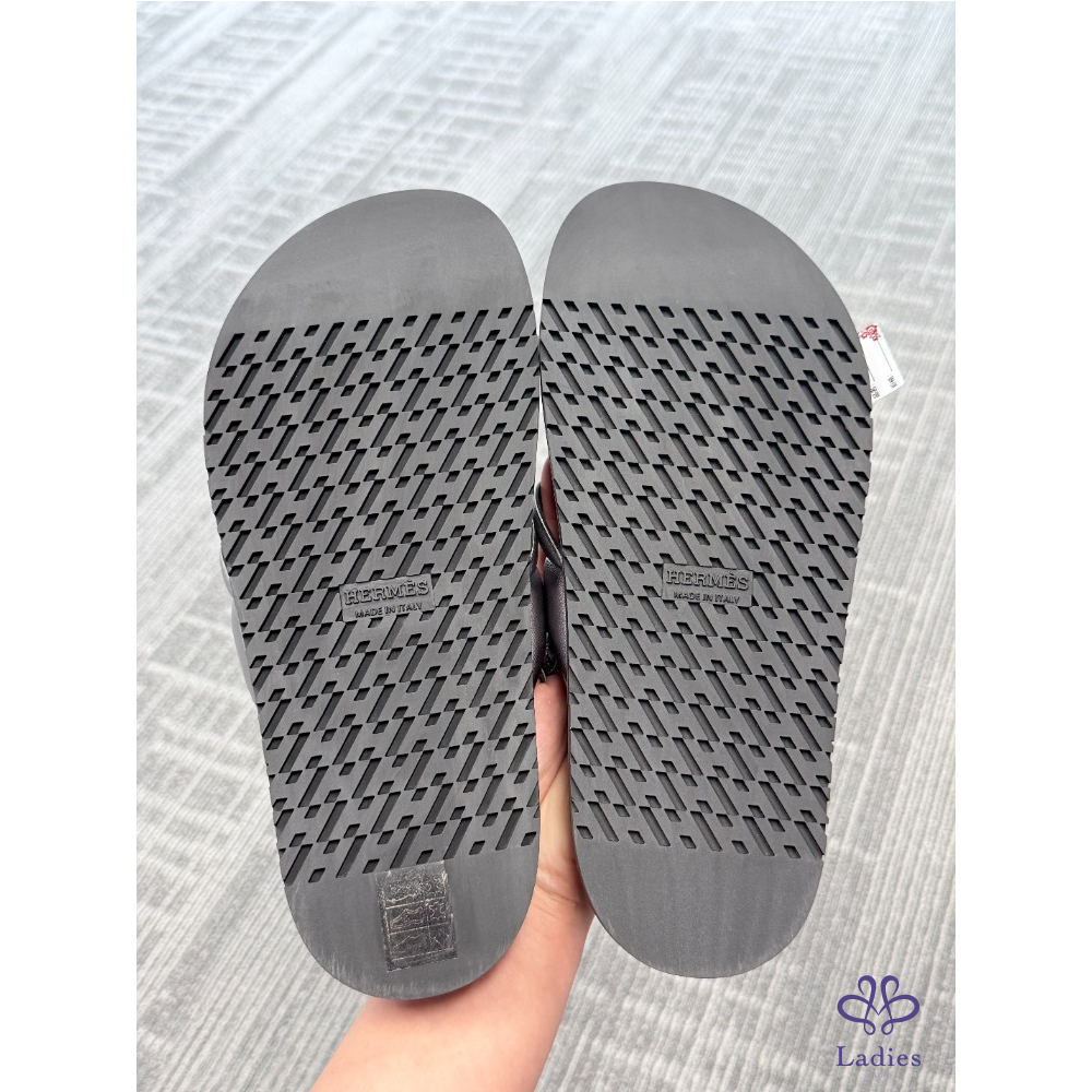 HERMES愛馬仕 黑銀豬鼻子 二舅拖 37碼 成色如圖