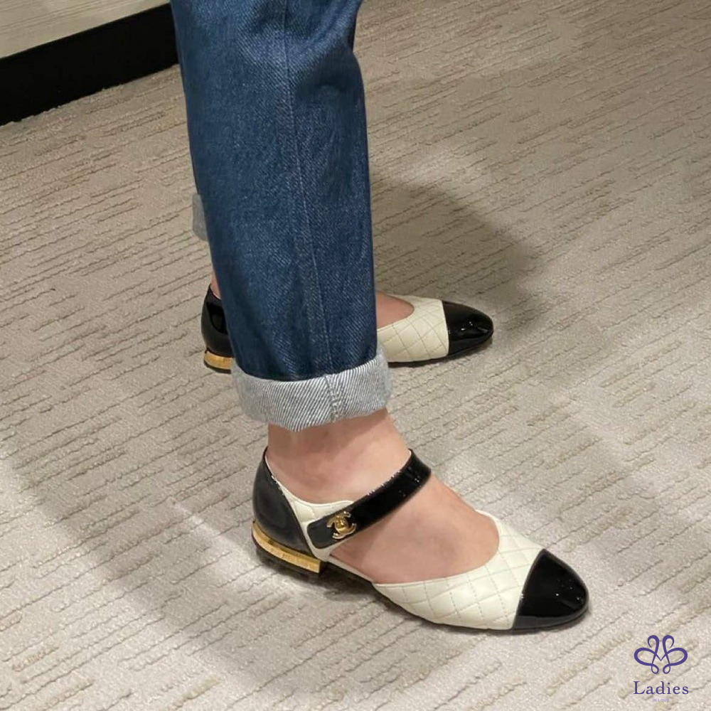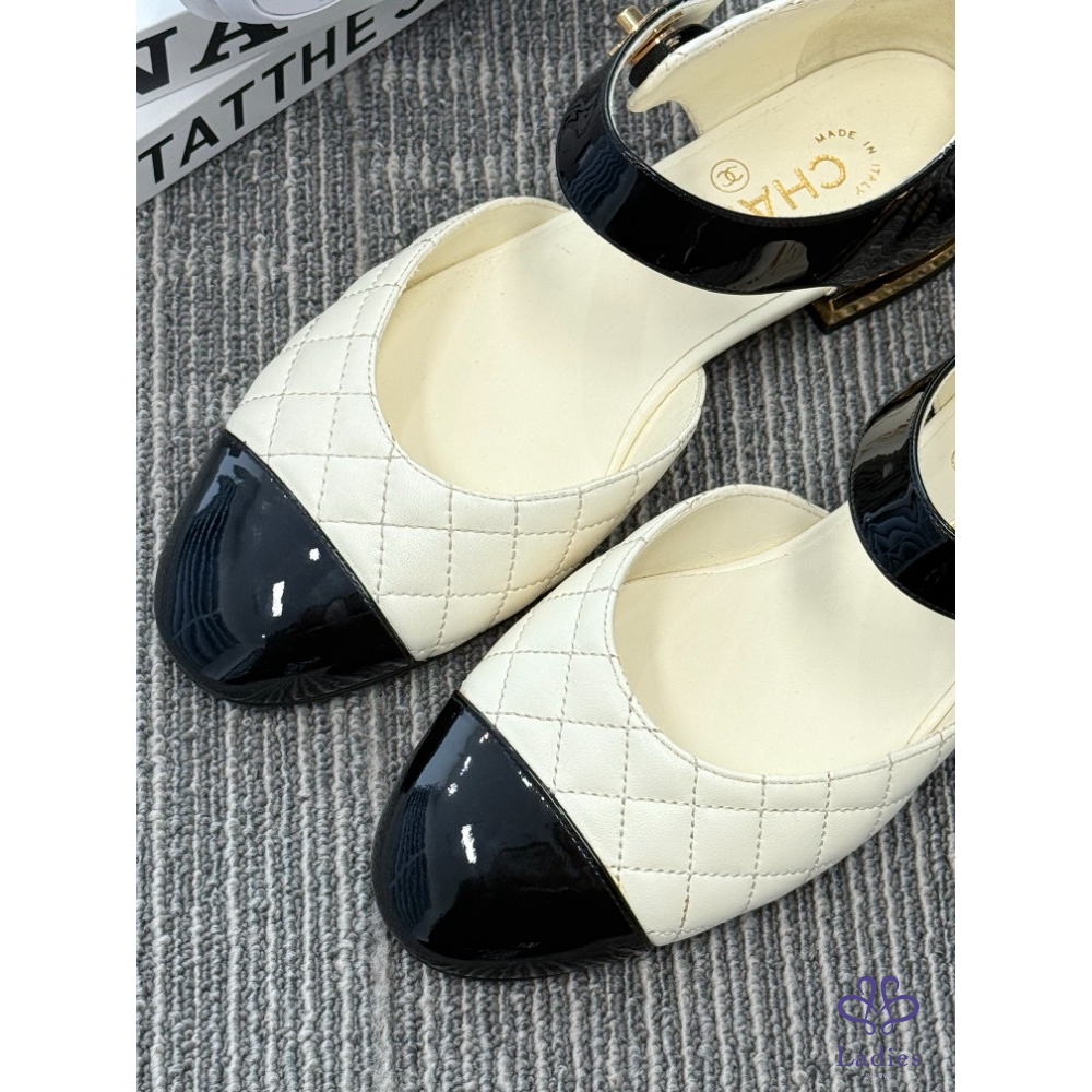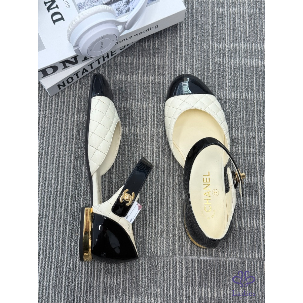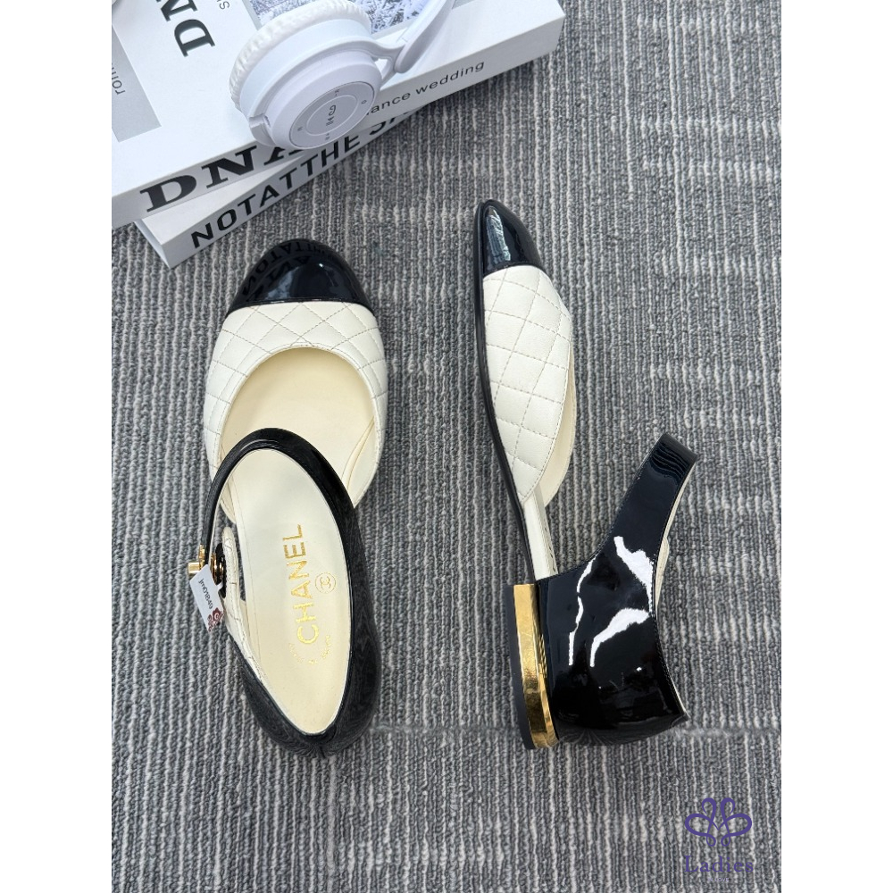 CHANL香奈兒 黑白拼色菱格紋瑪麗珍 37碼 全新