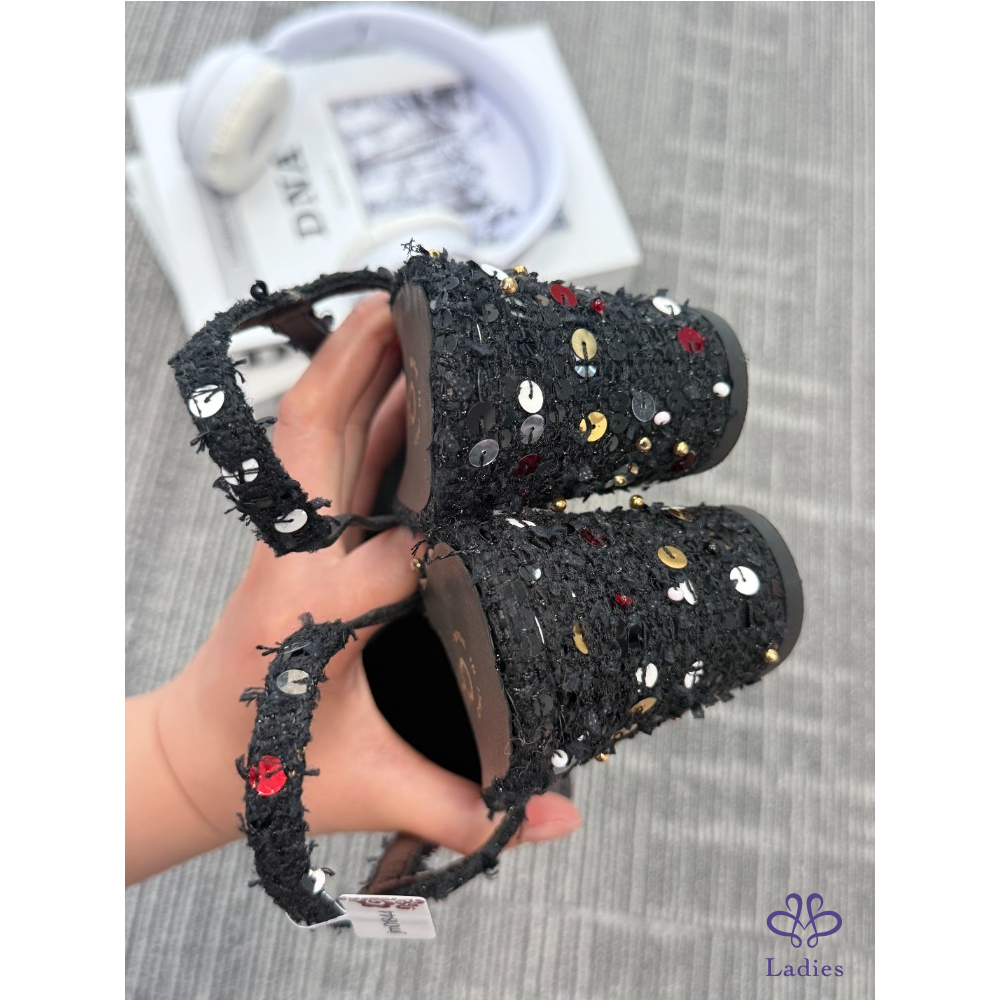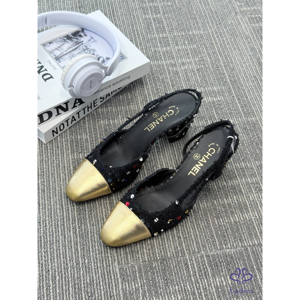 首頁 精品女鞋 CHANEL香奈兒 黑金閃片 粗花呢 slingblack高跟鞋 39碼 成色如圖