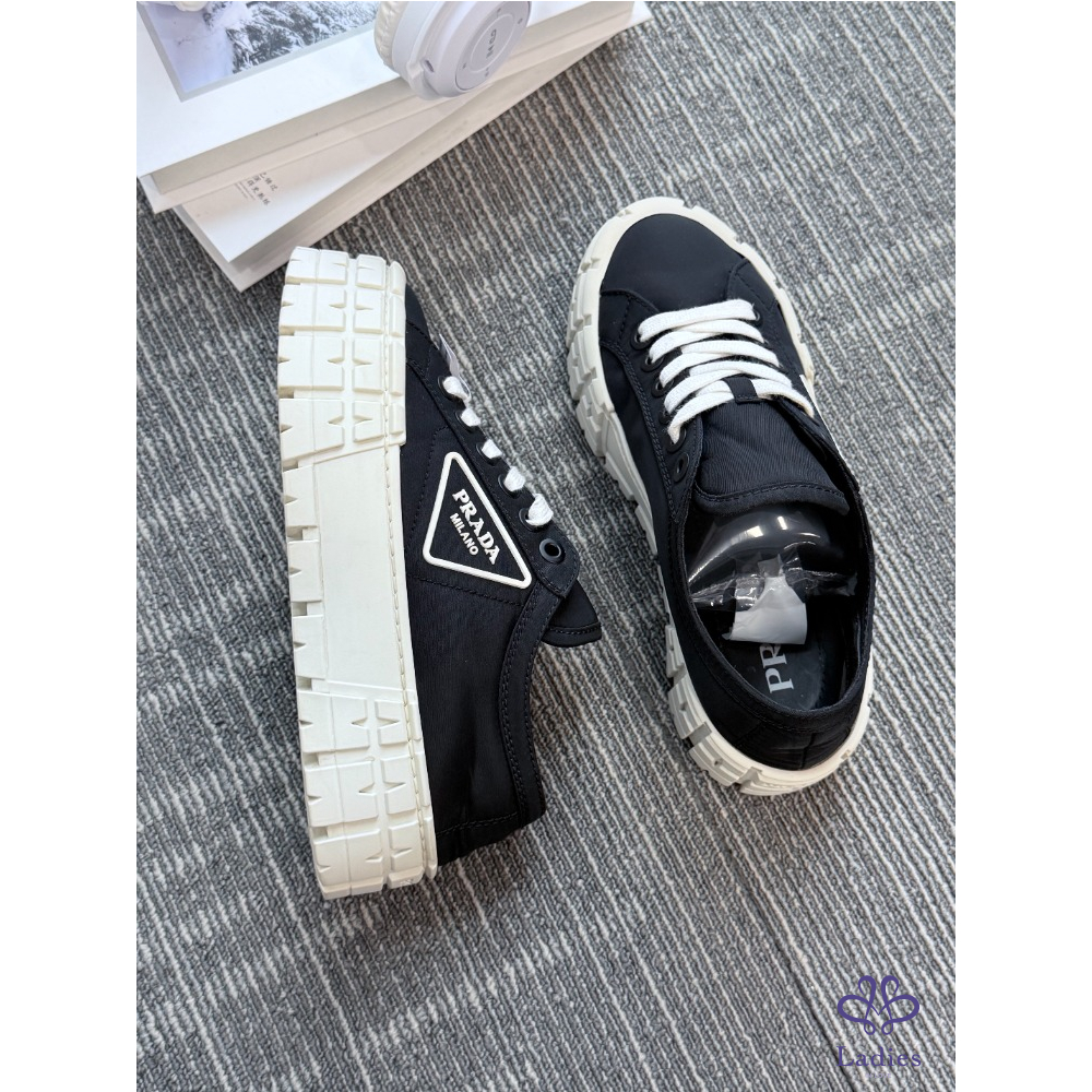 首頁 精品女鞋 PRADA普拉達 黑色厚底餅幹鞋 36碼 成色如圖