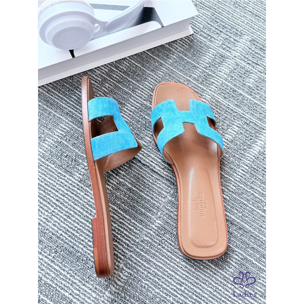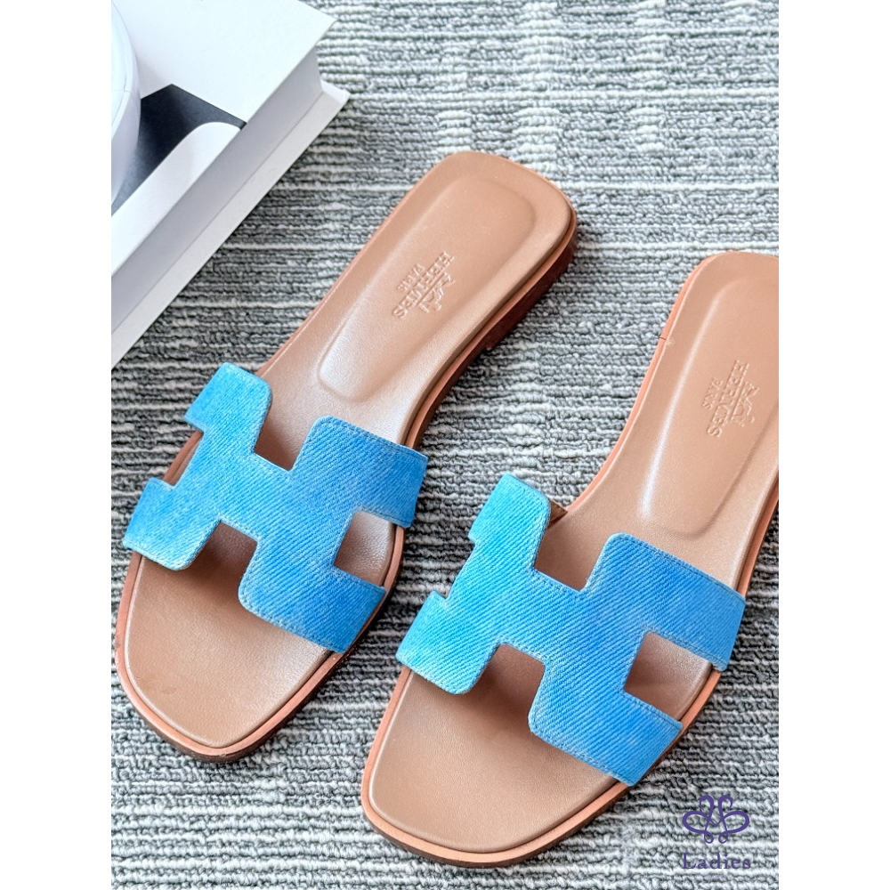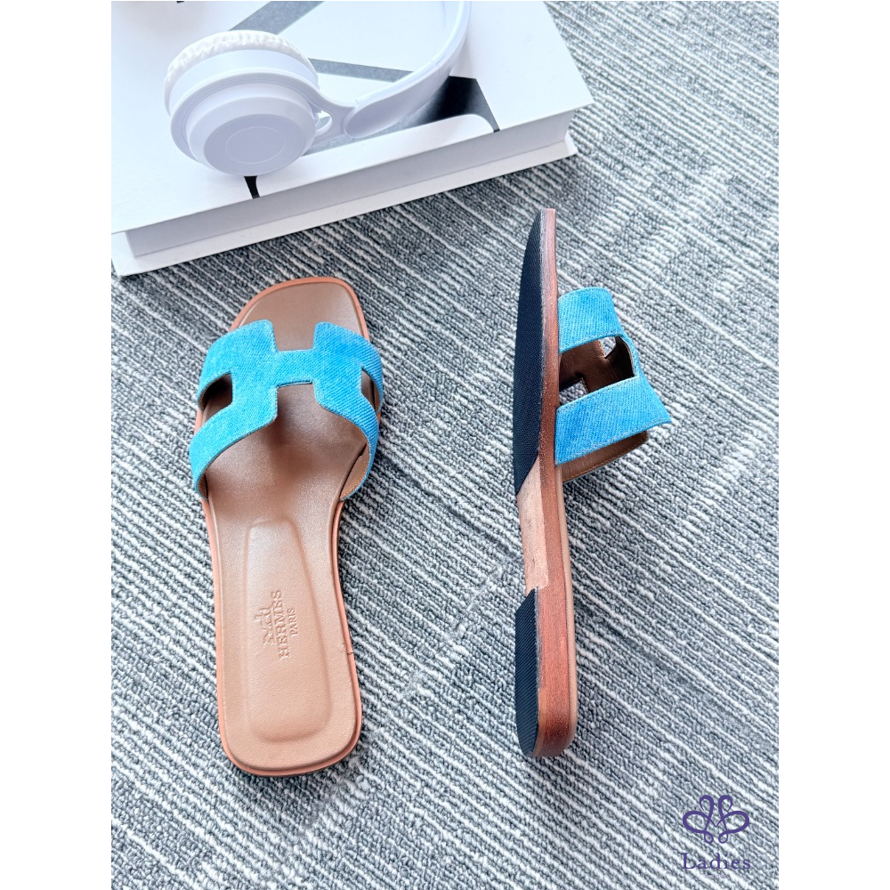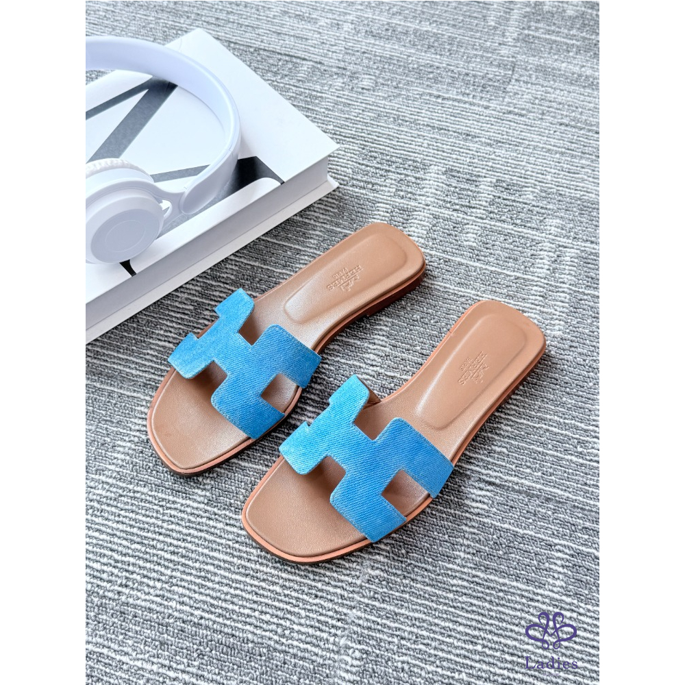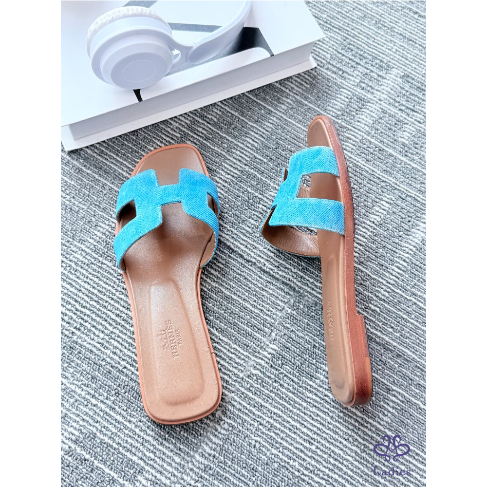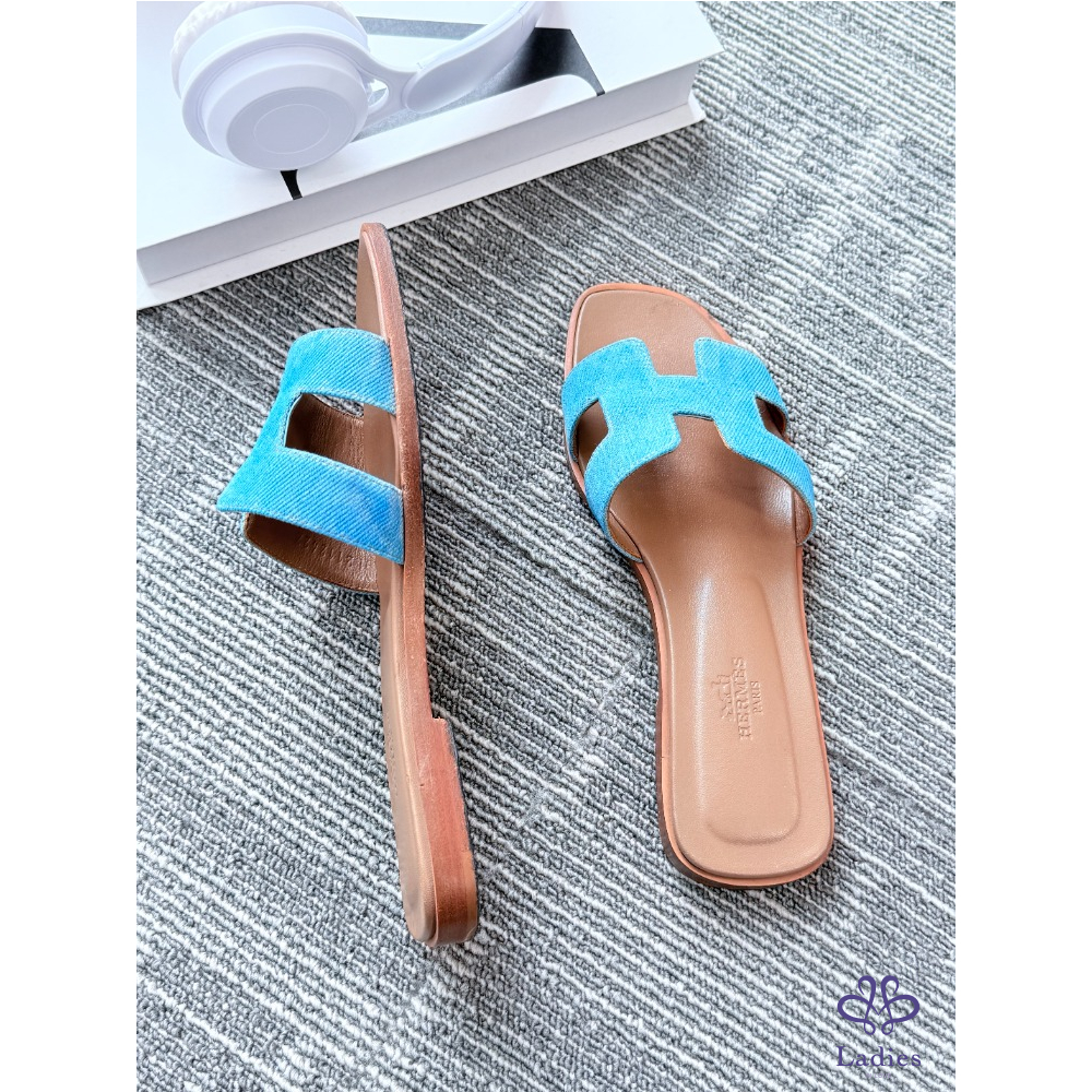 首頁 精品女鞋 HERMES愛馬仕 牛仔藍H拖 36碼 成色如圖