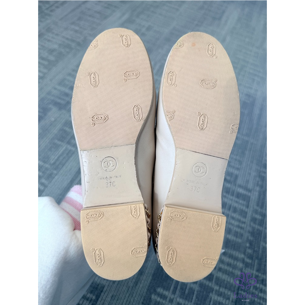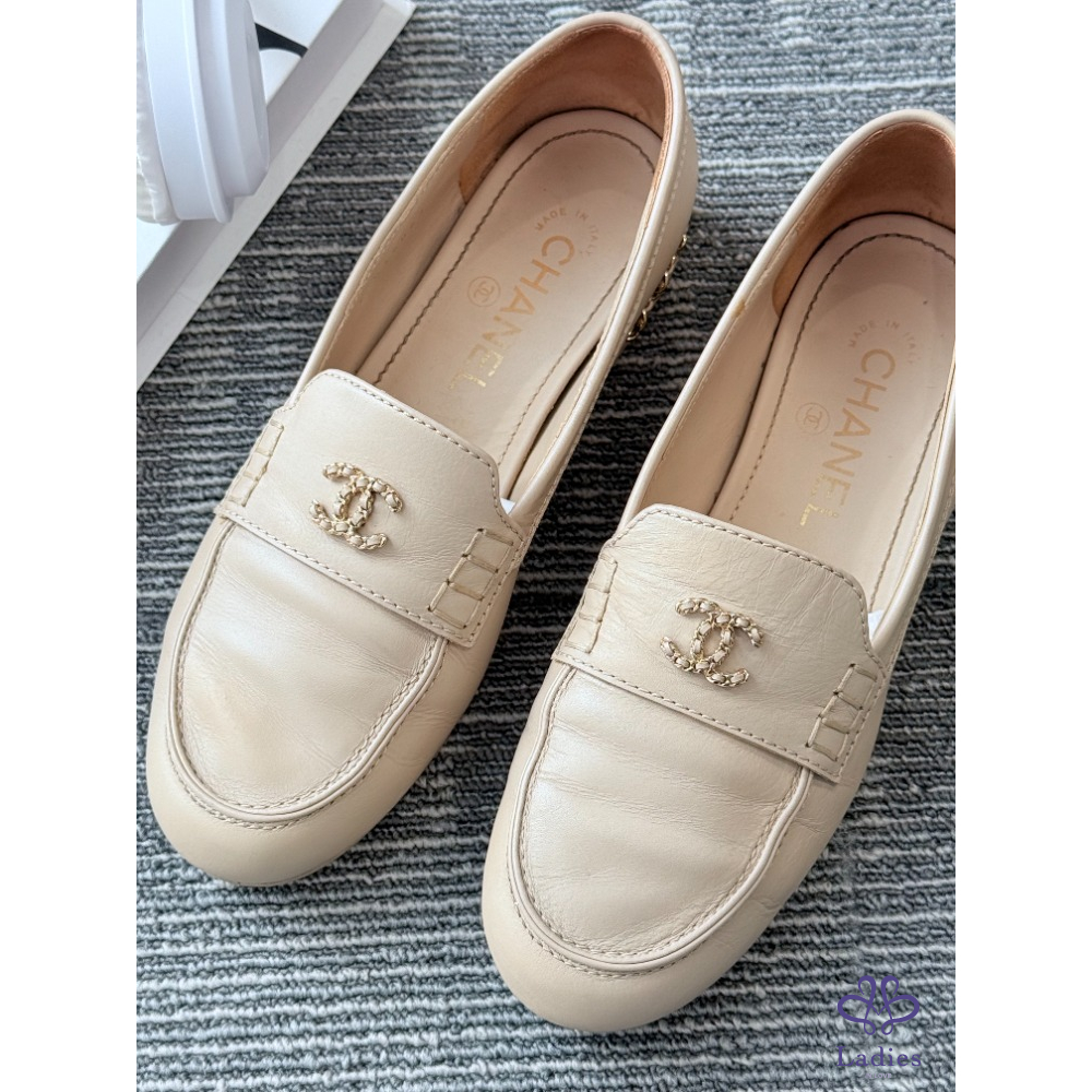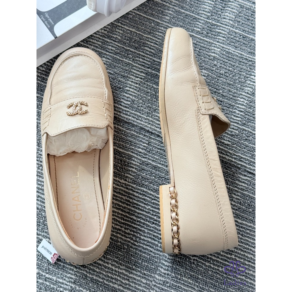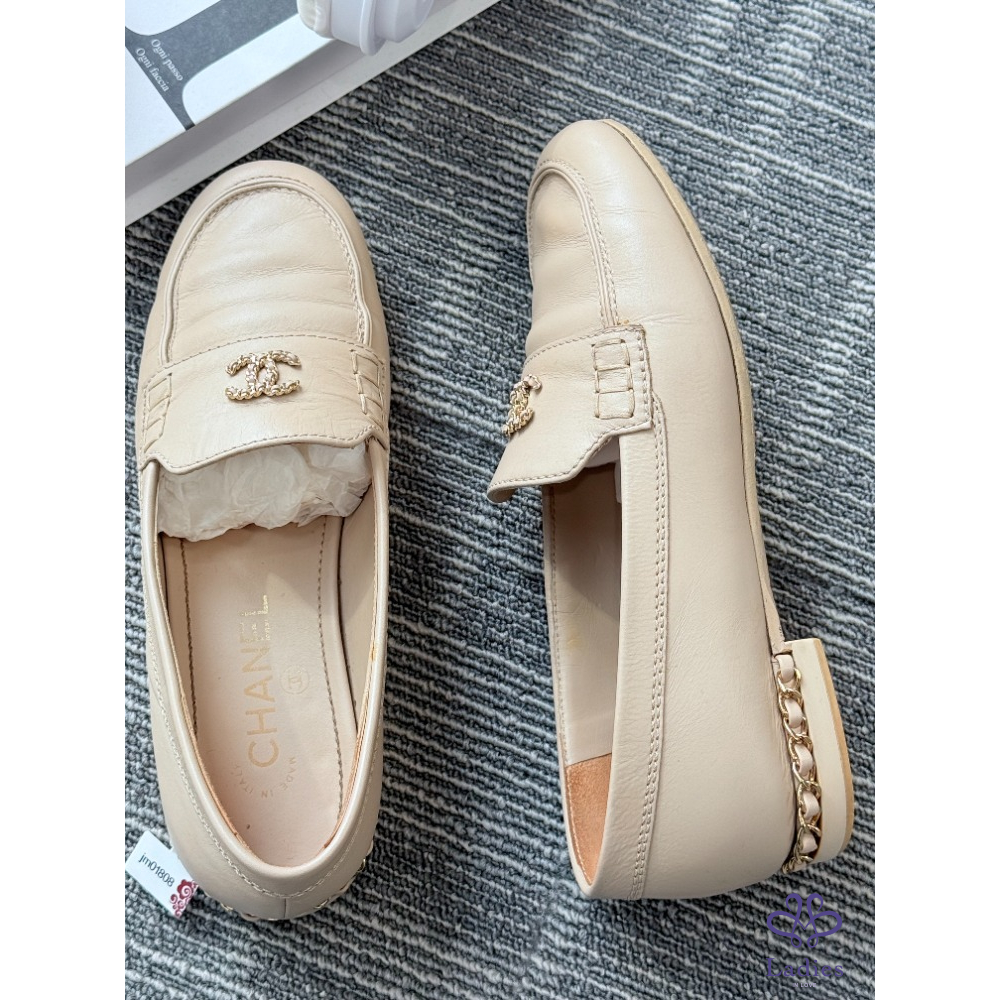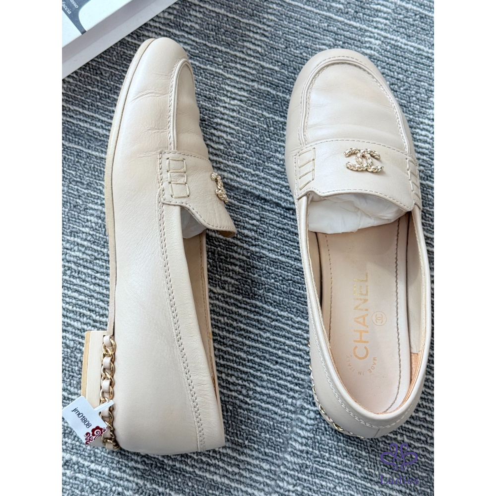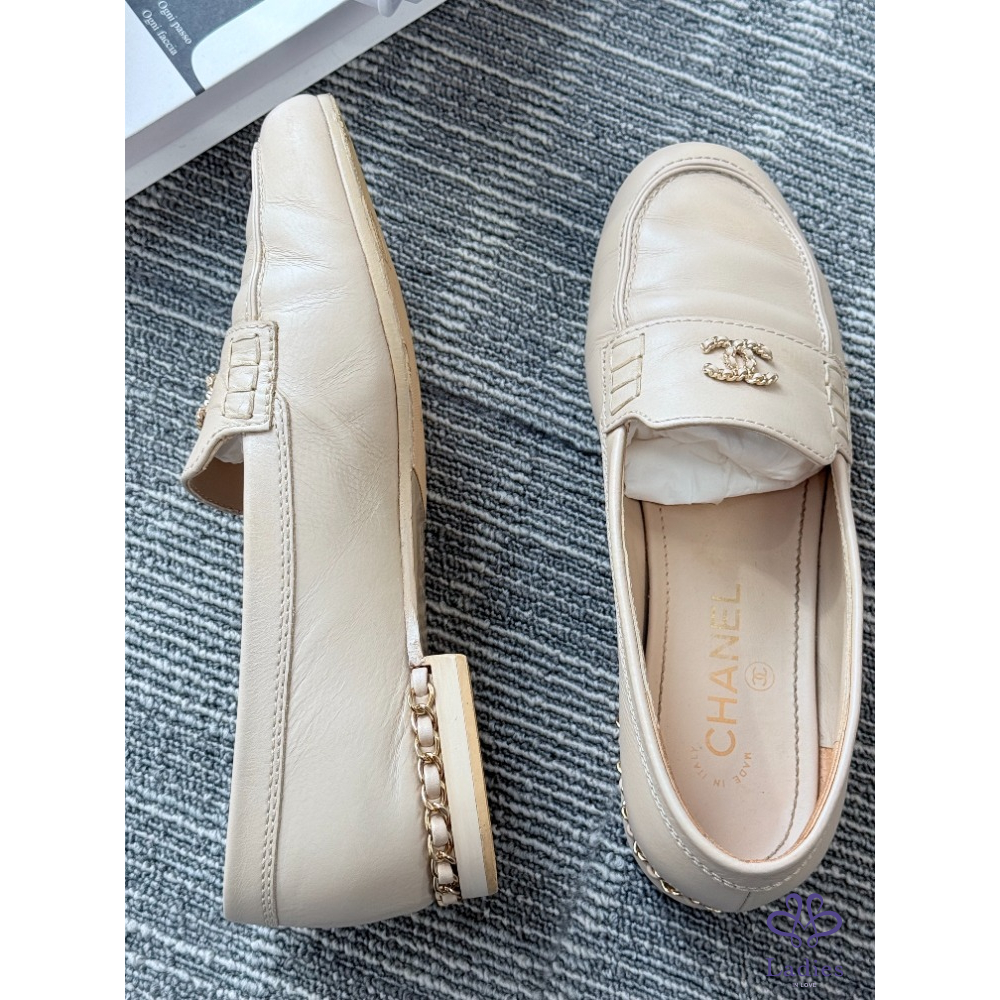 CHANEL 香奈兒 米色羊皮鏈條樂福鞋 37碼 成色如圖