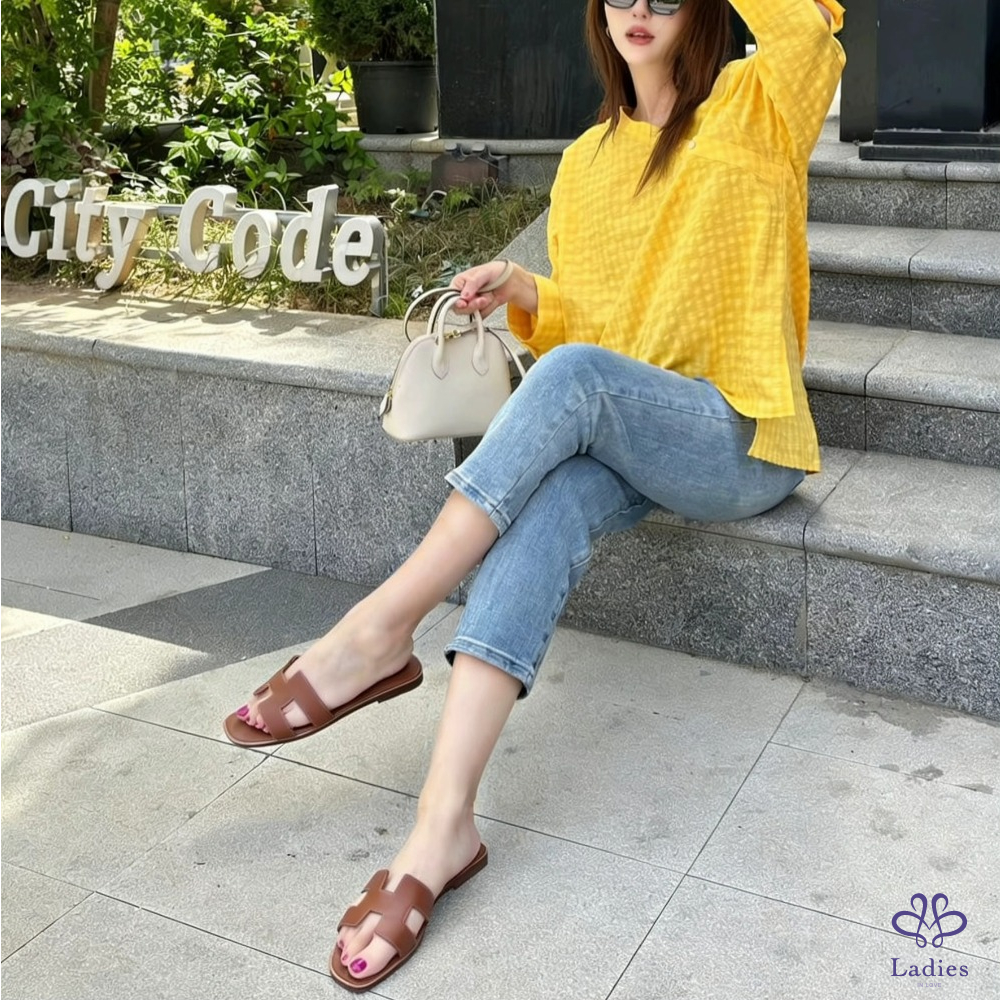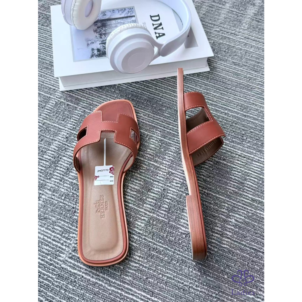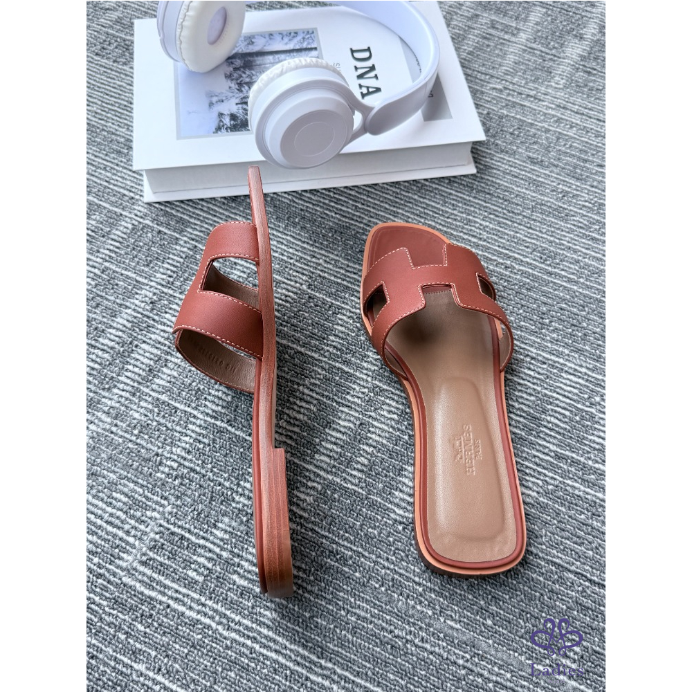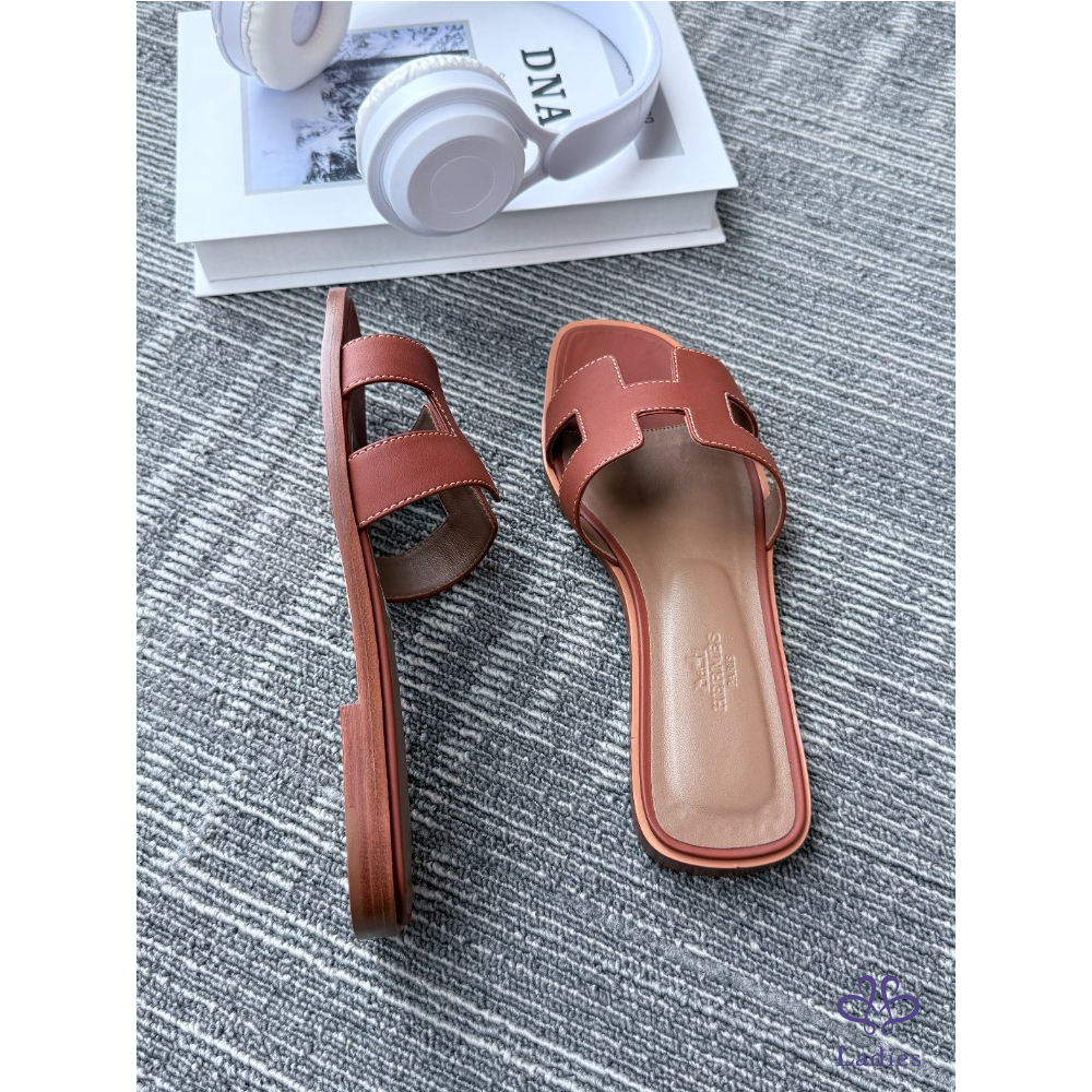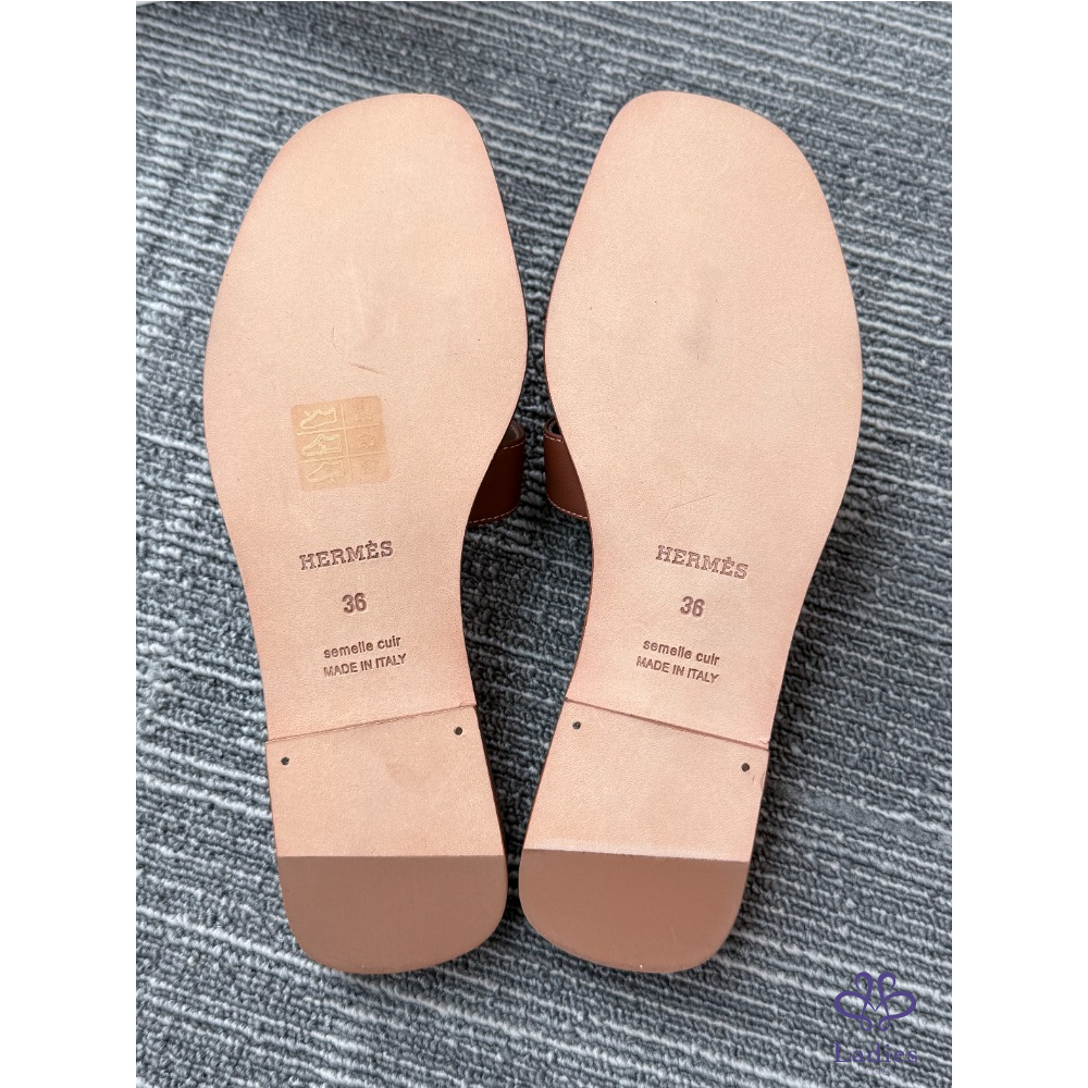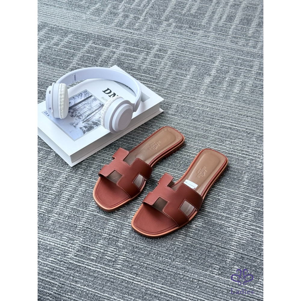 首頁 精品女鞋 HERMES 愛馬仕 ORAN棕色H拖鞋 36碼全新原盒