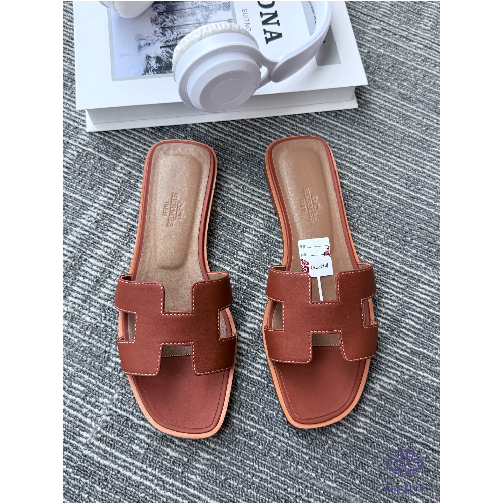 HERMES 愛馬仕 ORAN棕色H拖鞋 36碼全新原盒