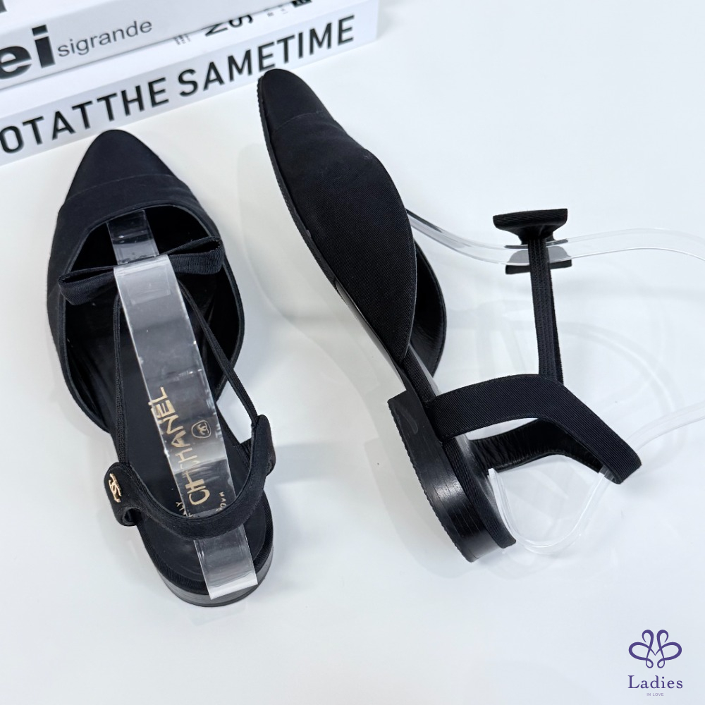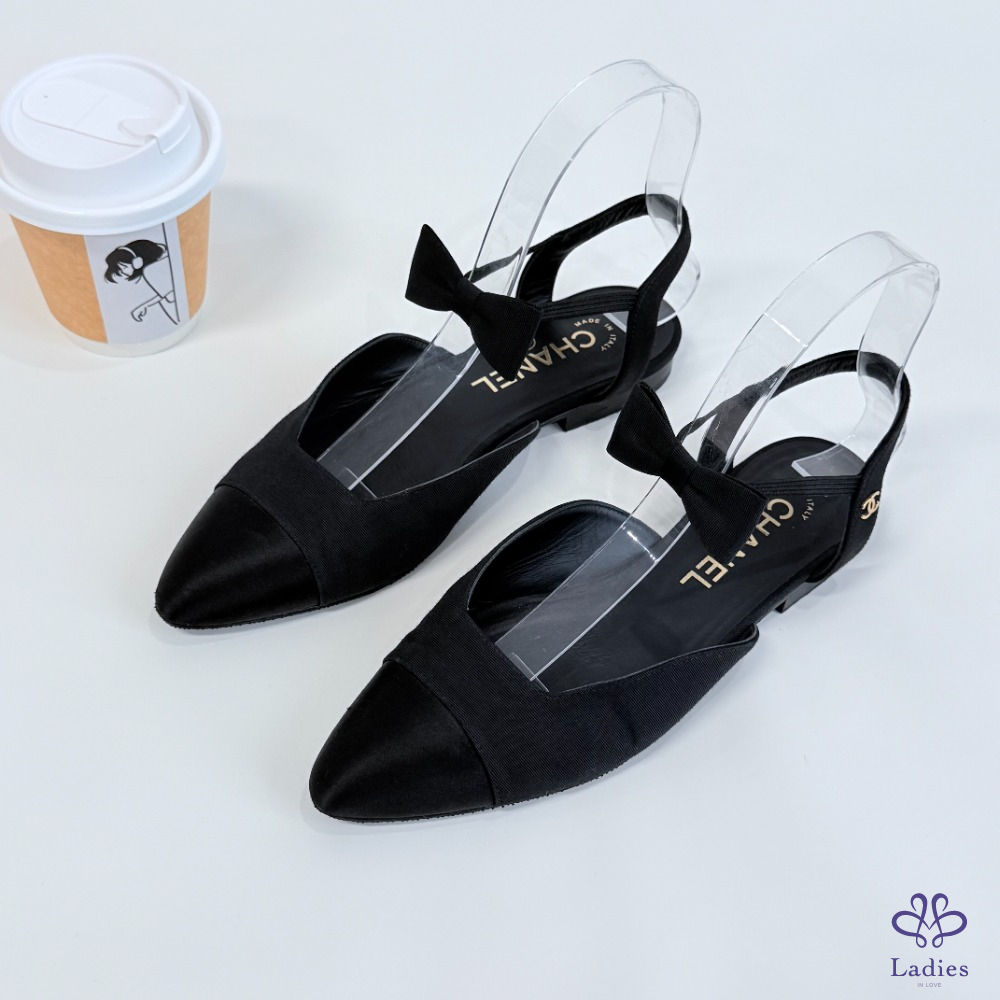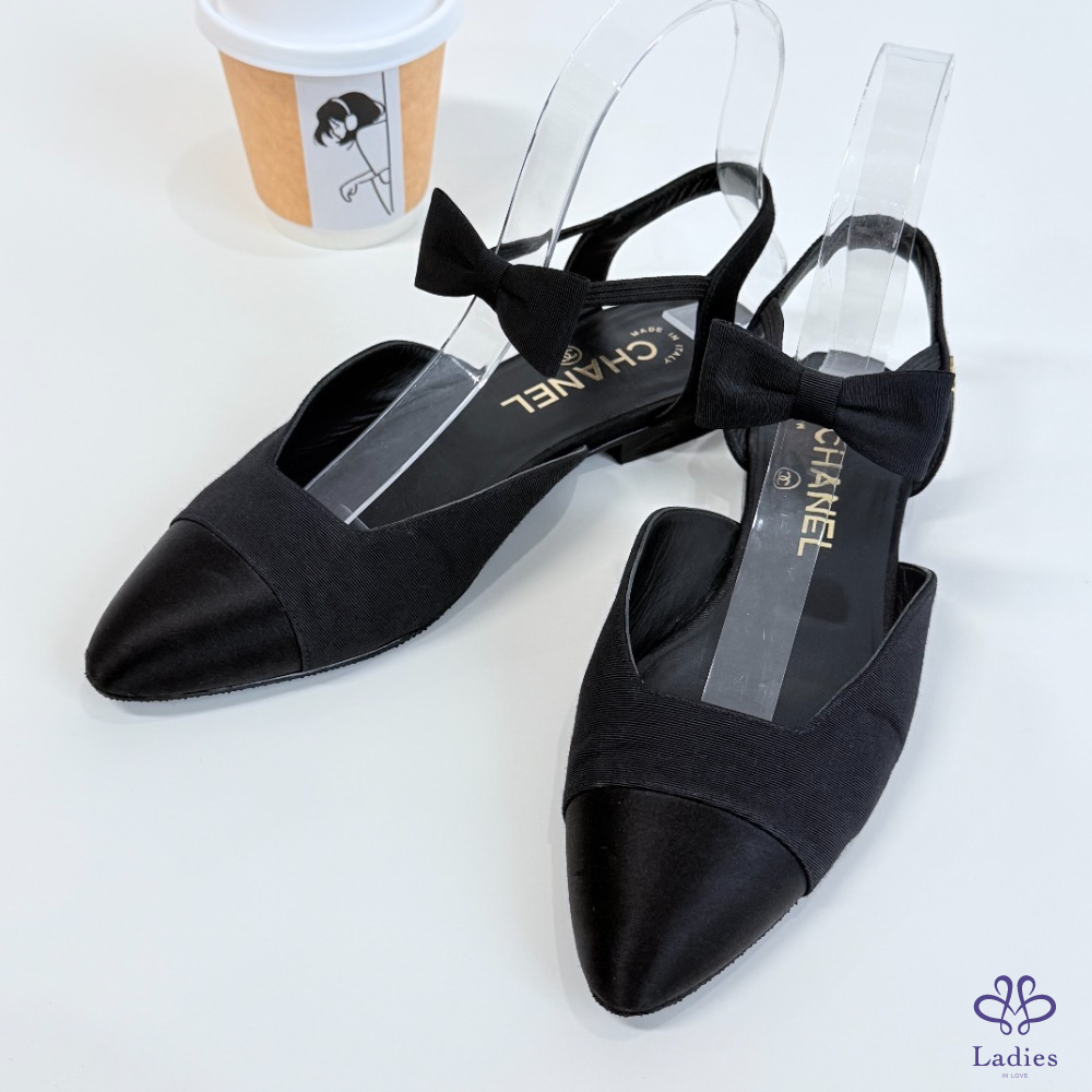 CHANEL香奈兒 黑色蝴蝶結平底鞋 36碼 新舊如圖