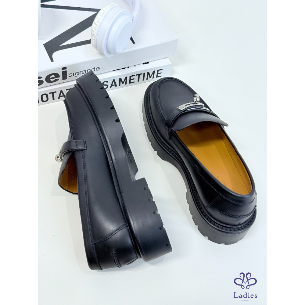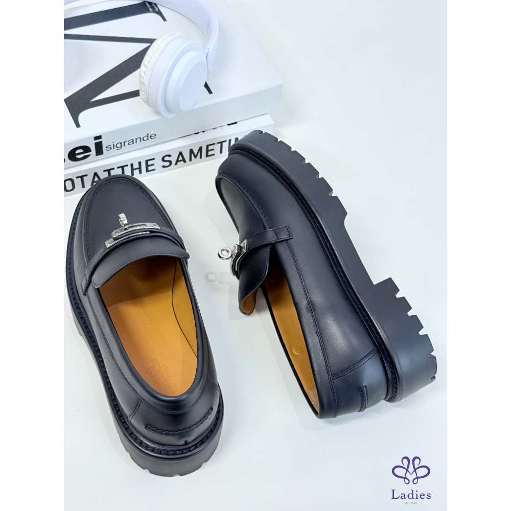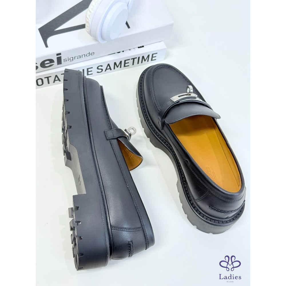 HERMES 愛馬仕 黑銀kelly厚底樂福鞋 37碼 新舊如圖