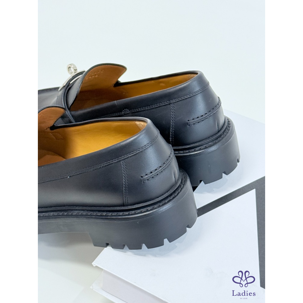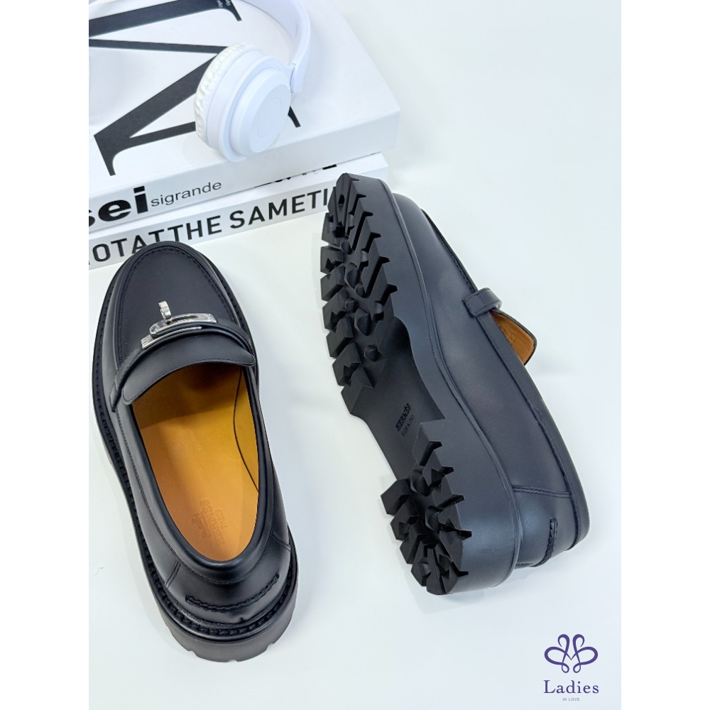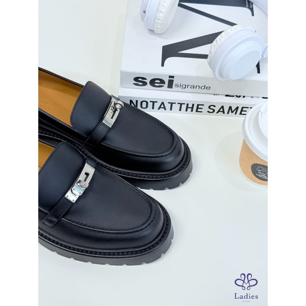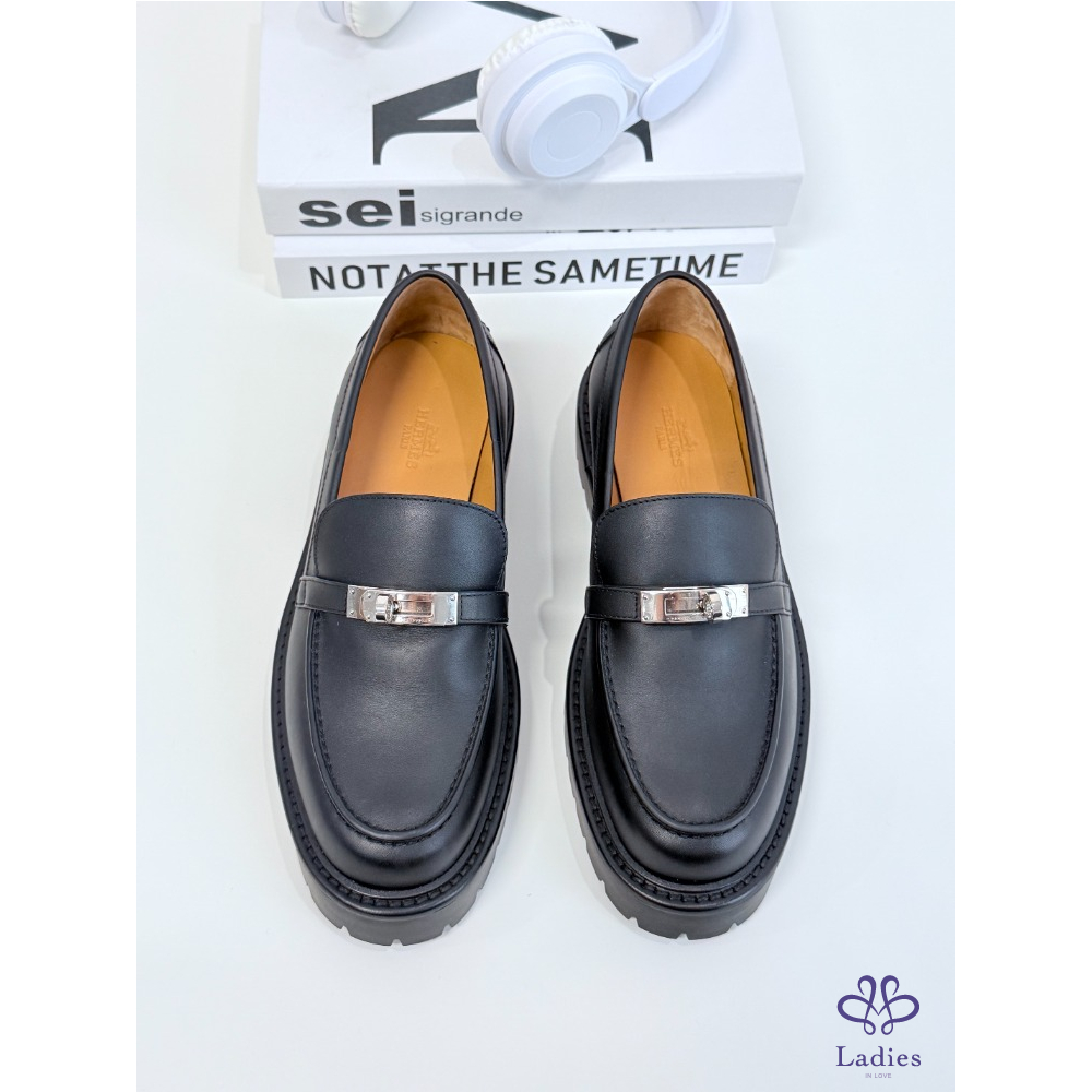 HERMES 愛馬仕 黑銀kelly厚底樂福鞋 37碼 新舊如圖