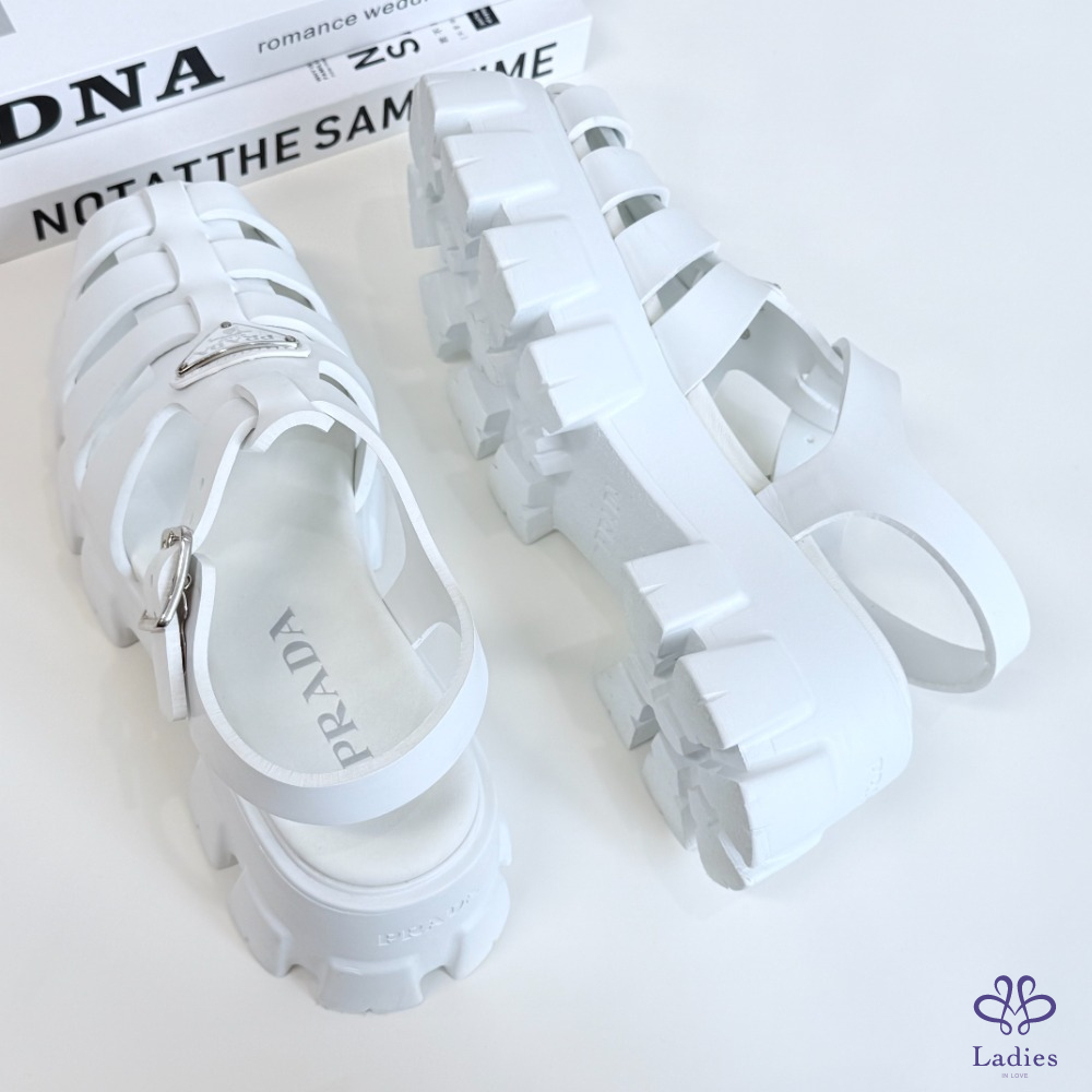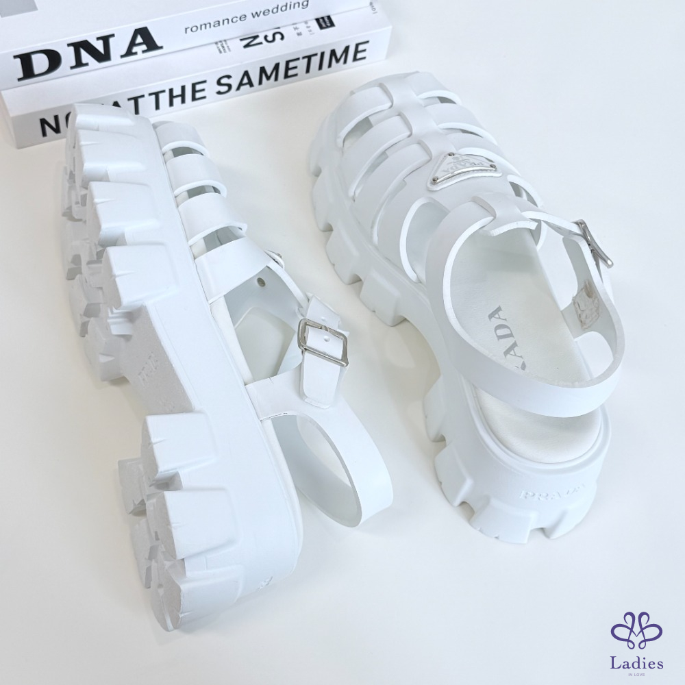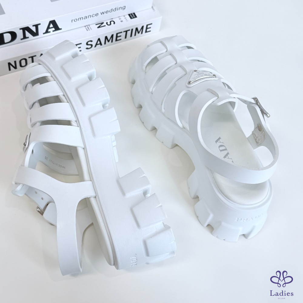 PRADA 普拉達白色三角標厚底羅馬涼鞋 38碼 如圖描述