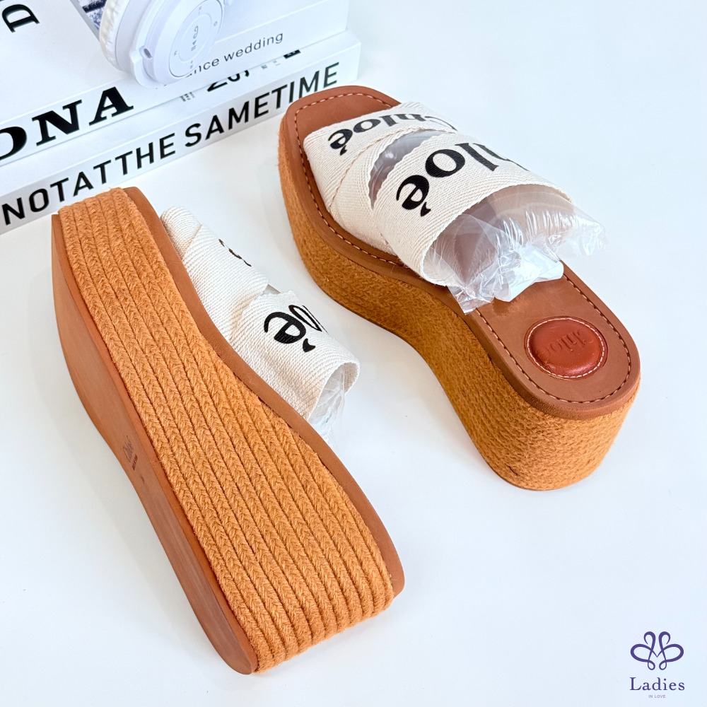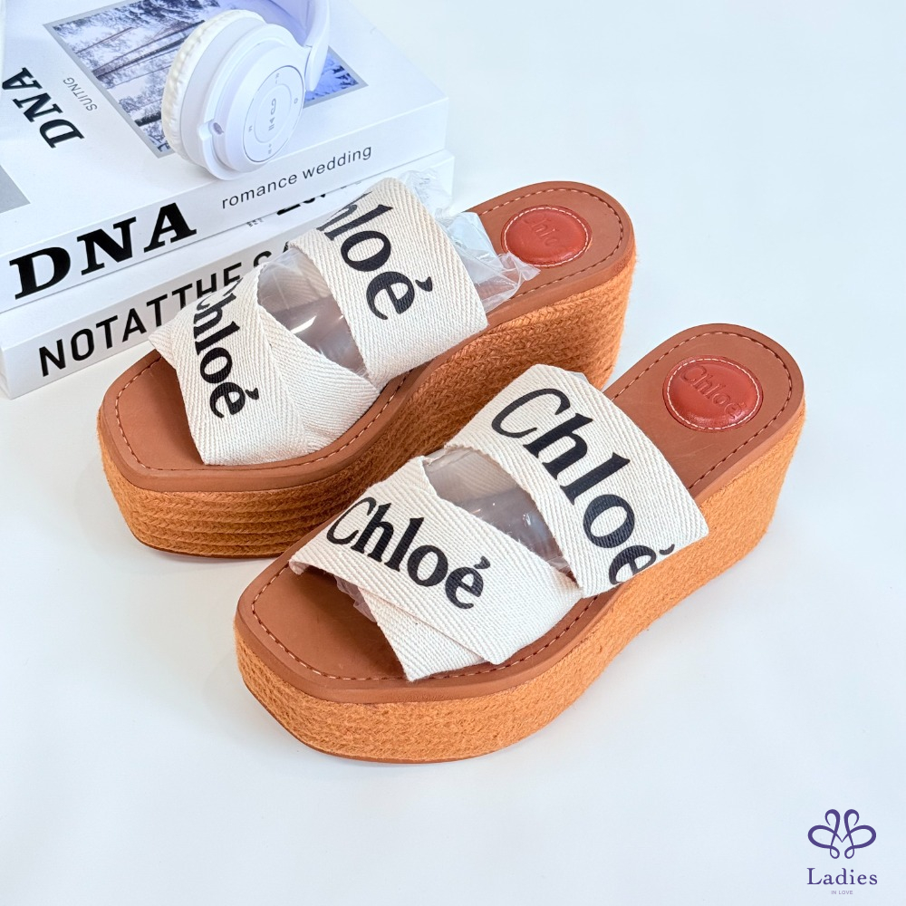 首頁 精品女鞋 CHLOE蔻依 字母坡跟拖鞋 36碼 全新 如圖描述 02733