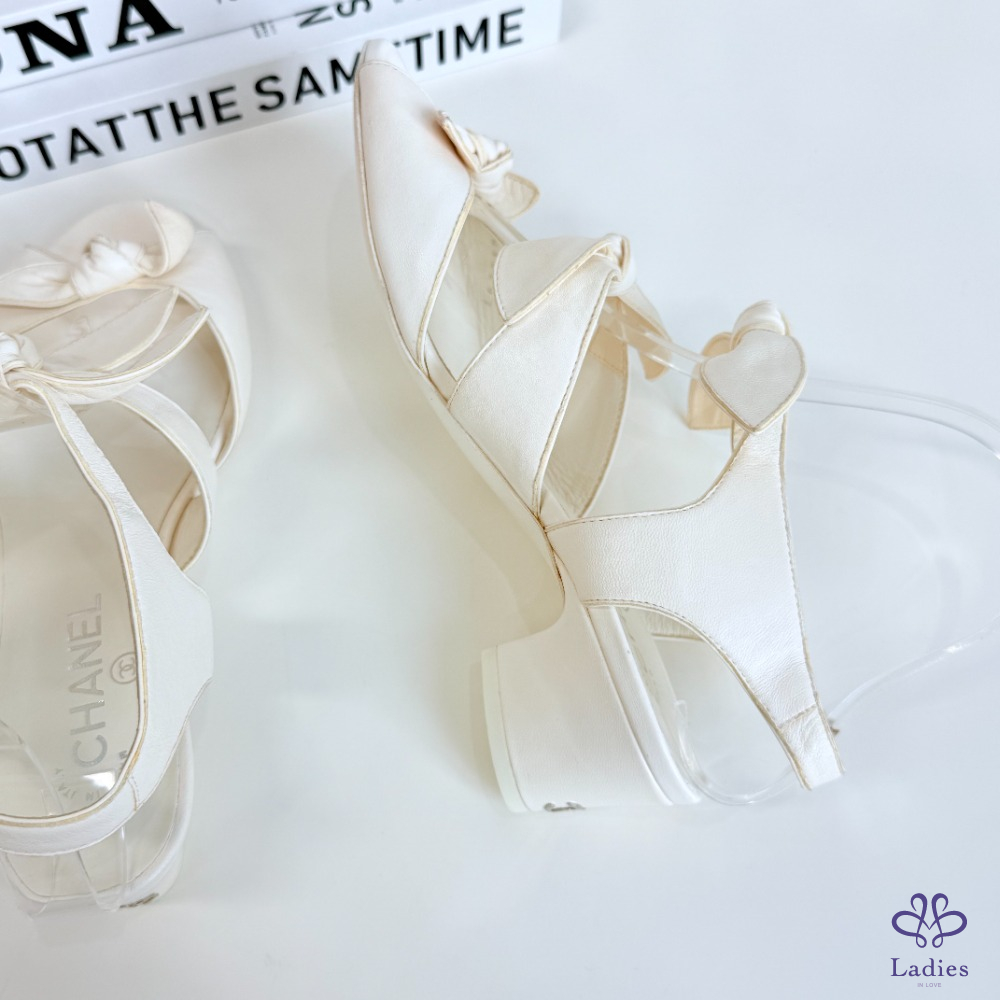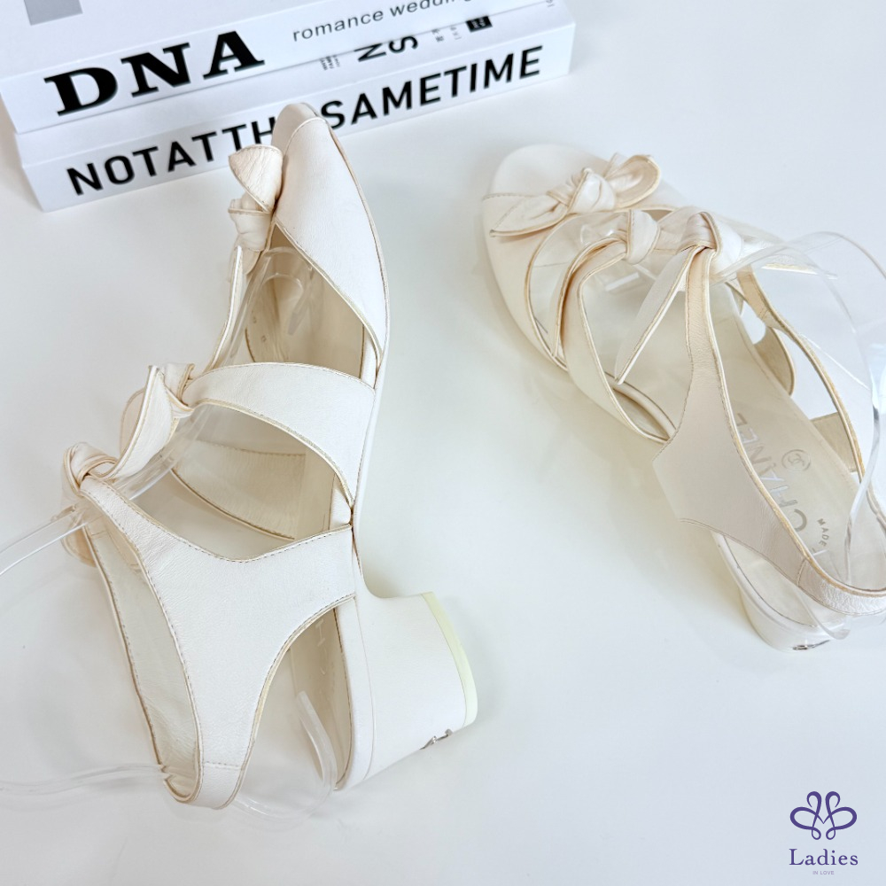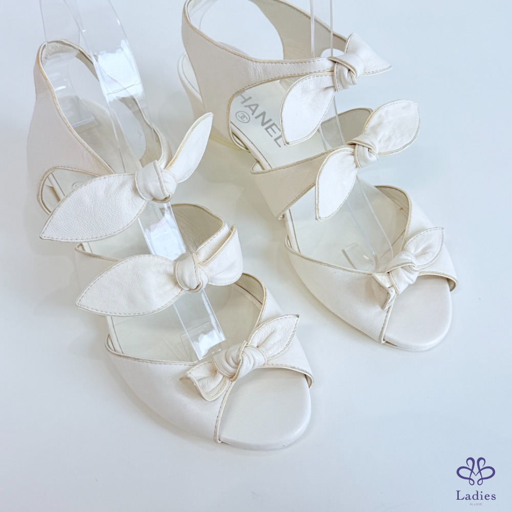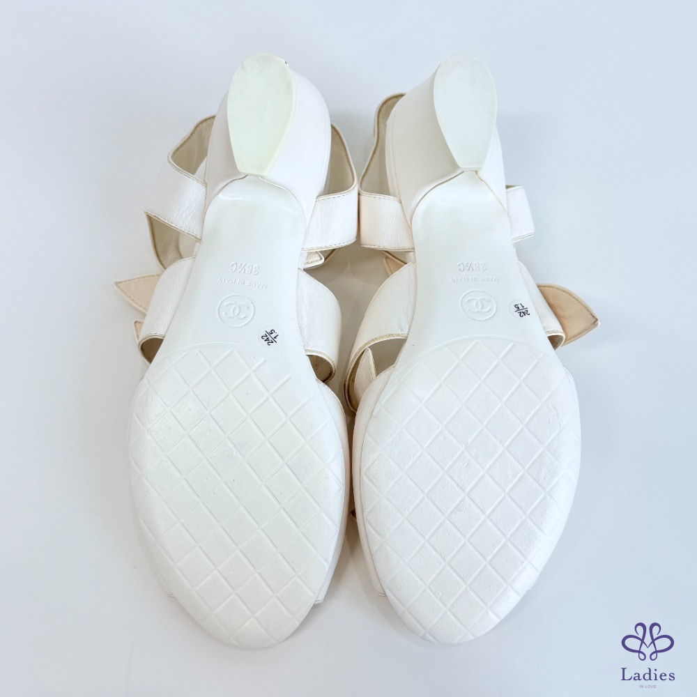 CHANEL香奈兒 白色蝴蝶結涼鞋 38.5碼 如圖描述 02711