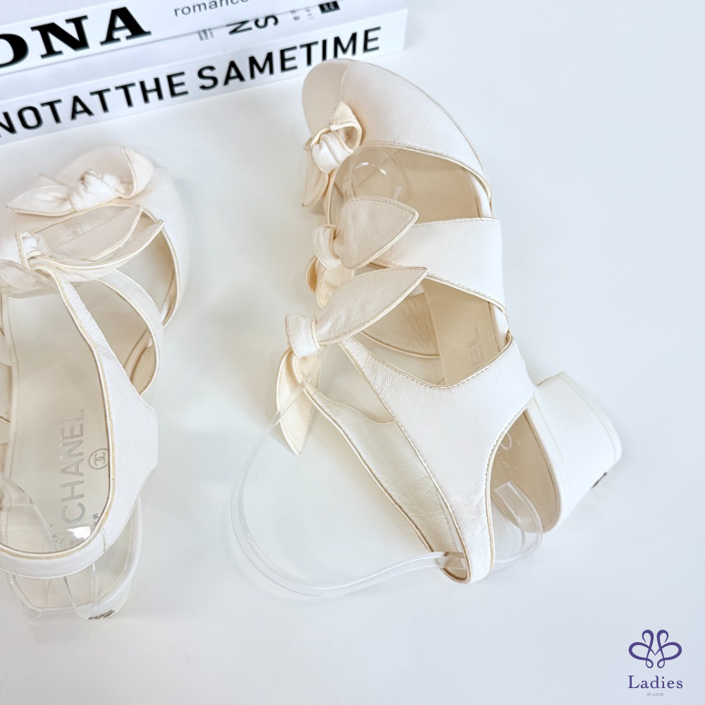 首頁 精品女鞋 CHANEL香奈兒 白色蝴蝶結涼鞋 38.5碼 如圖描述 02711