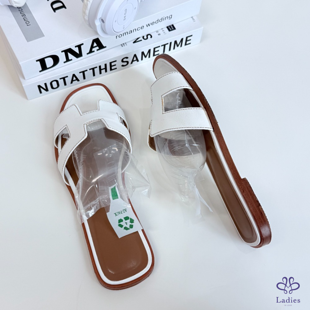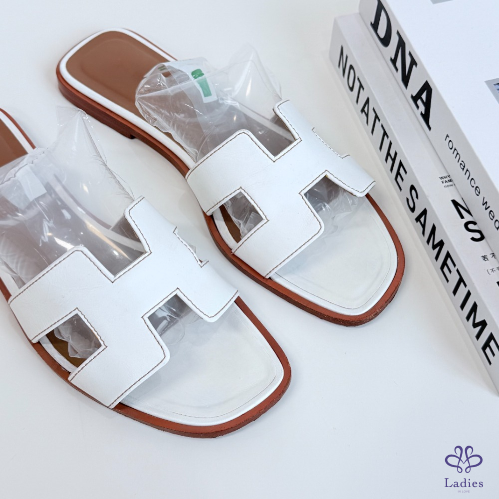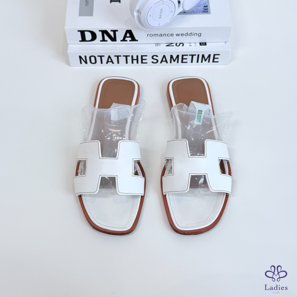 HERMES愛馬仕 白色H拖 38碼 如圖描述 02712