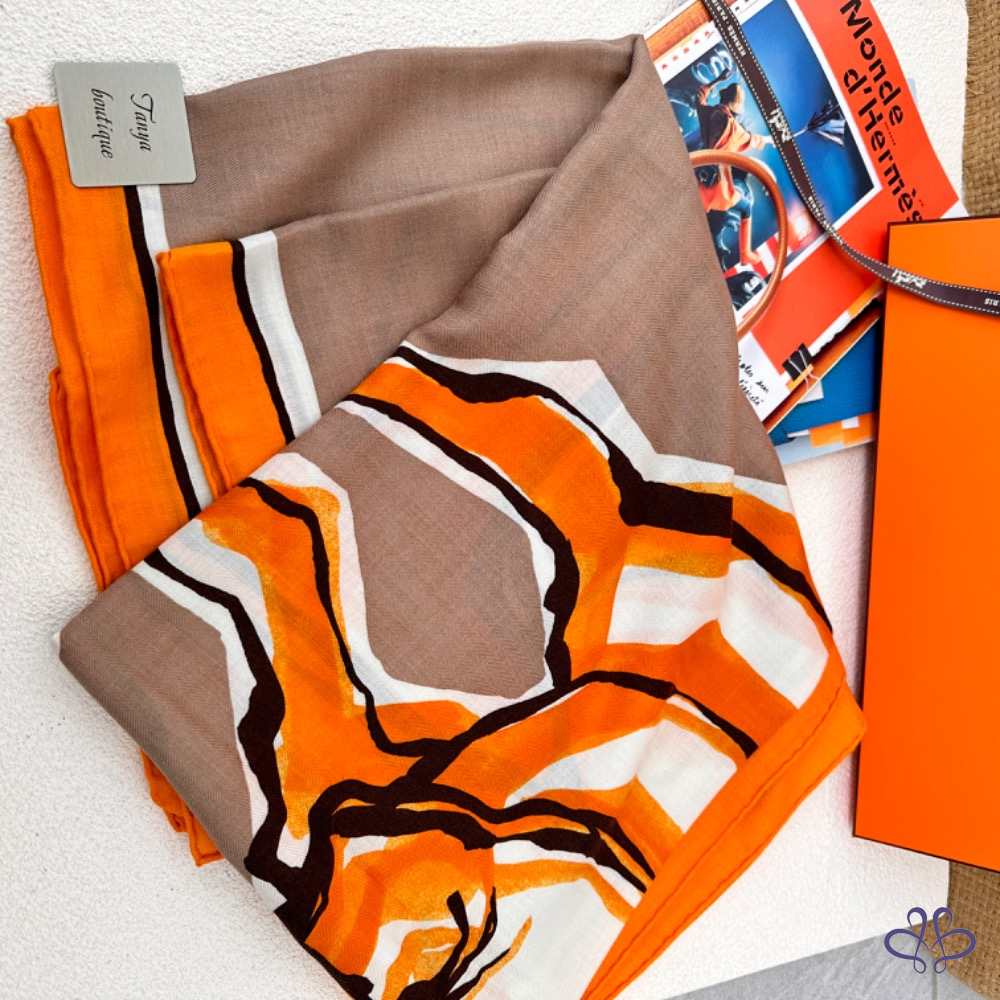 不配貨也要買的圍巾,實體絕對會驚艷到你,超巨大的又精美的飛馬????,表框、帶身上兩相宜,這個配色也是最百搭的大地色~絕美❤️