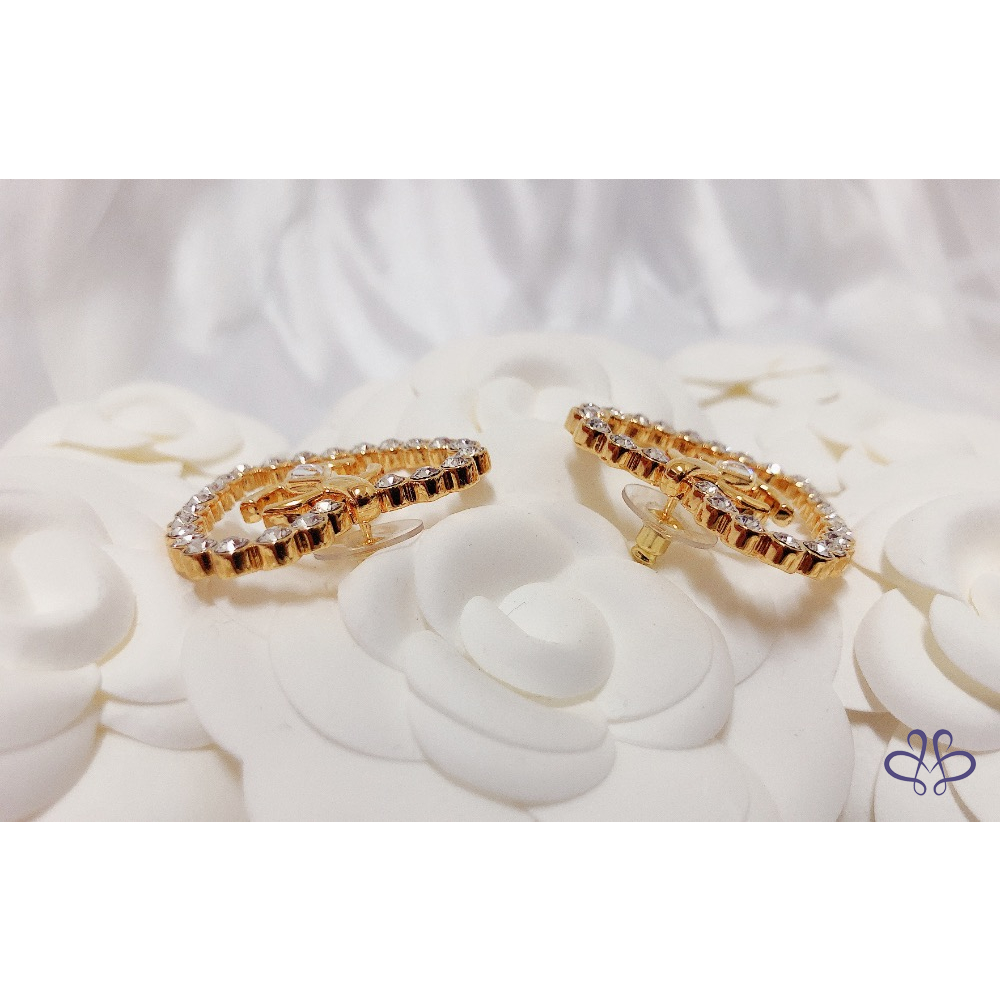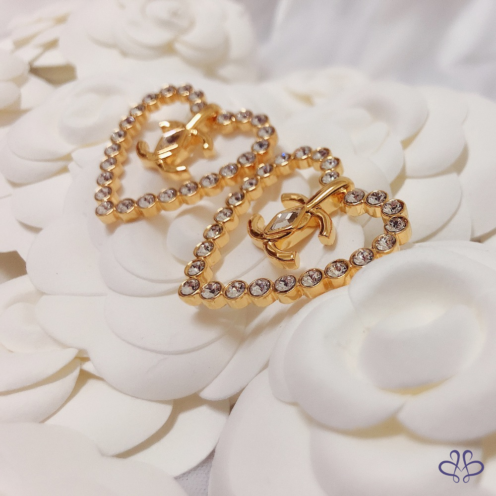 Chanel 香奈兒 小香 金色 愛心鏤空水鑽 雙C logo 菱形水鑽 針式 穿式 耳環 全新✨