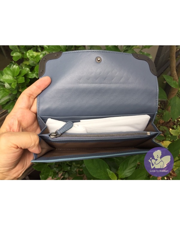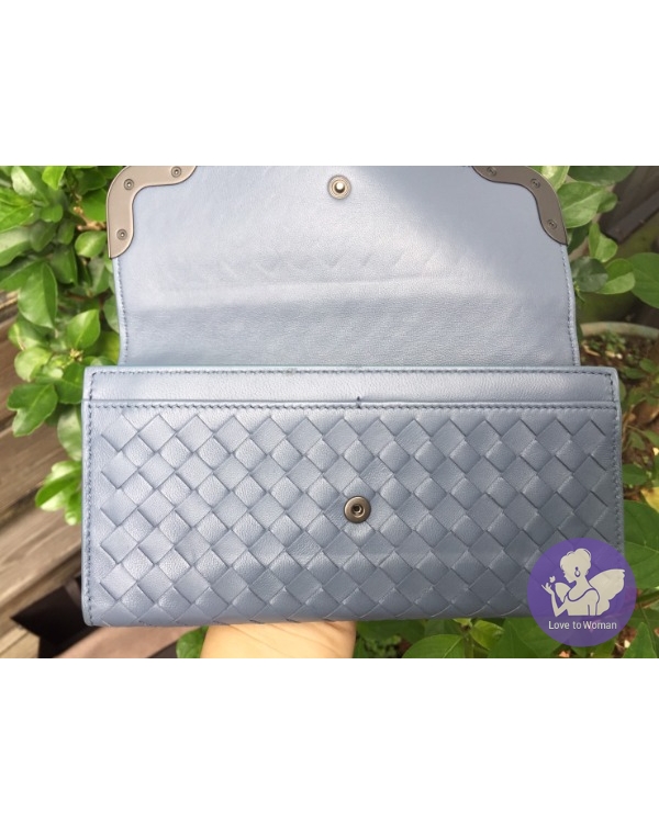 產品信息 【商品名稱】BV湖水藍小羊皮金屬扣長款開合長夾 【預售價格】11888 含運 【原價】二萬多 【新舊陳述】整體大約9成新 【尺寸】約18.8cm*11cm* 3cm 【郵寄方式】郵局,2日匯款 【商品介紹】 拿沒幾次所以整體還相當新,附防塵袋 紙盒 表面有一小點黃漬 但極不明顯 扣式開口/內有10信用卡夾+3內層+1拉鍊零錢袋
