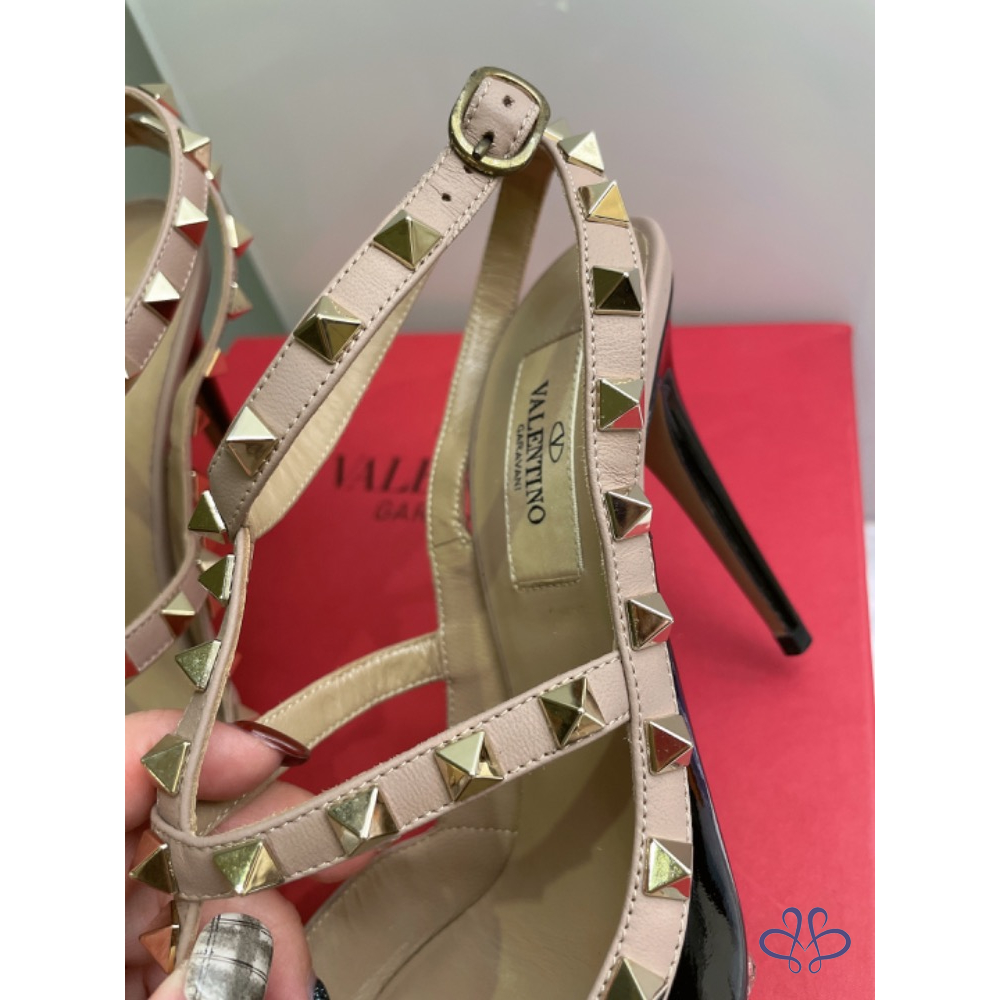 Valentino 卯釘鞋 漆皮黑色 10公分 37.5號????