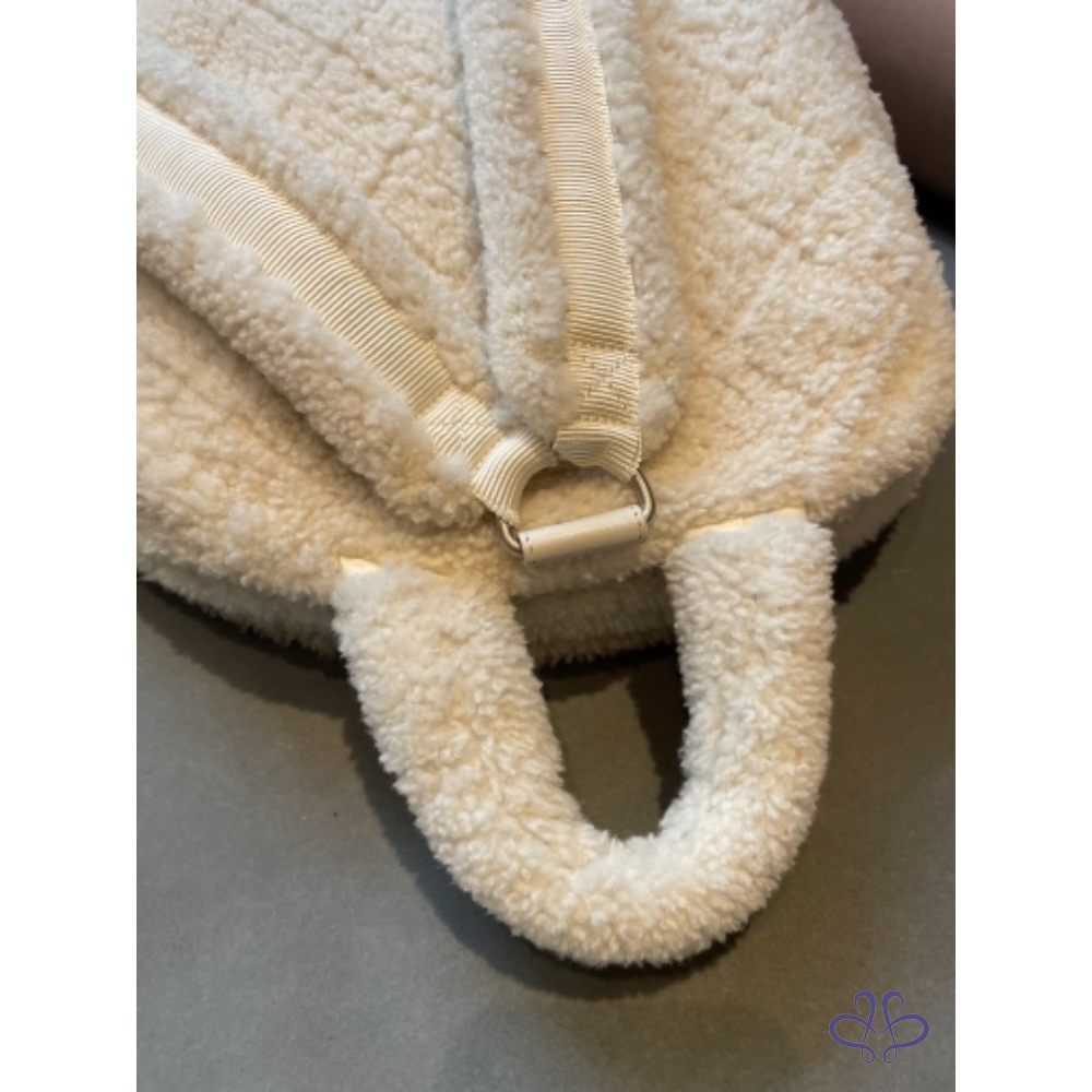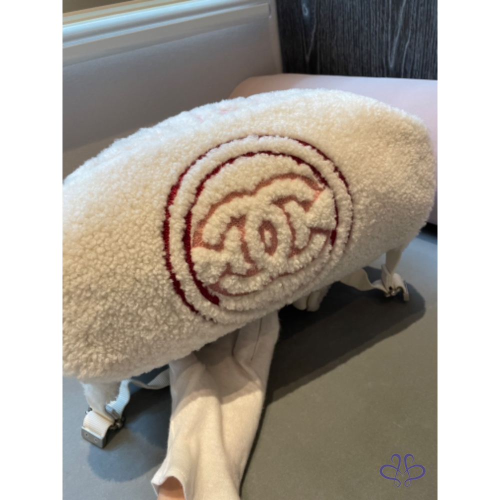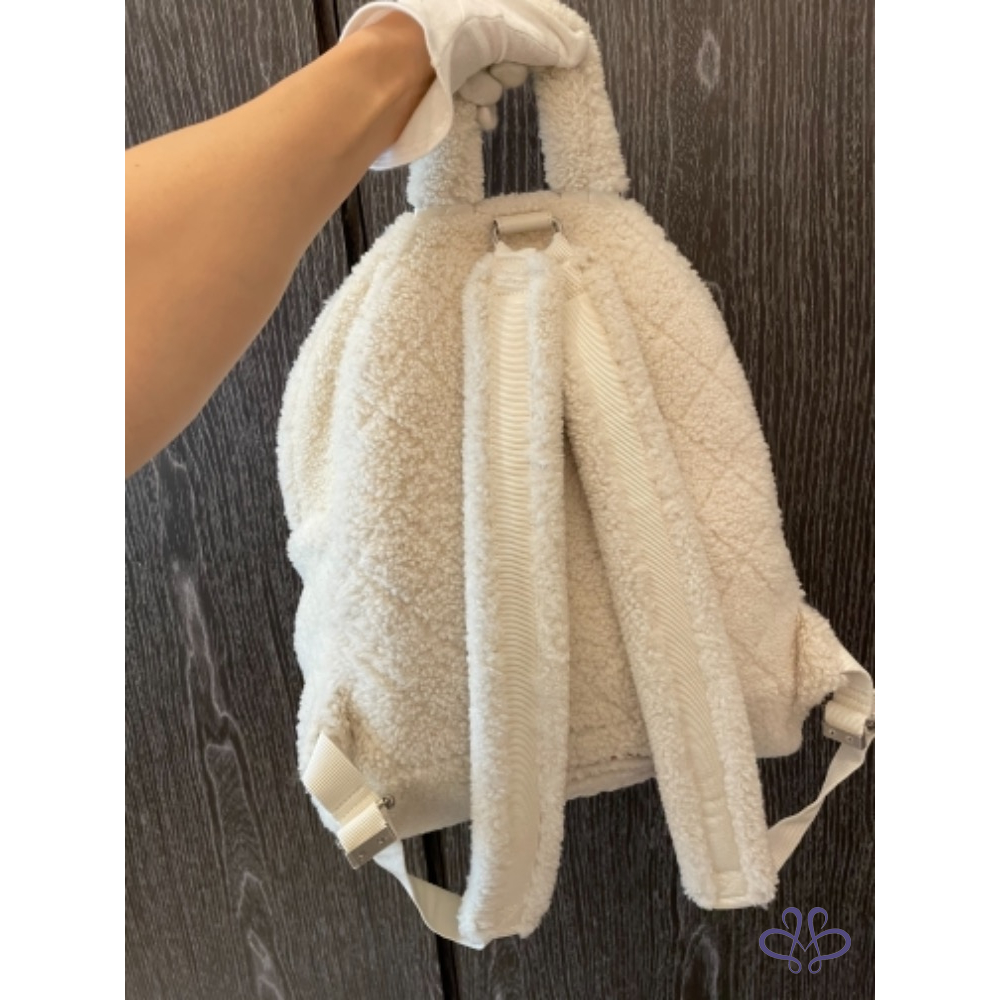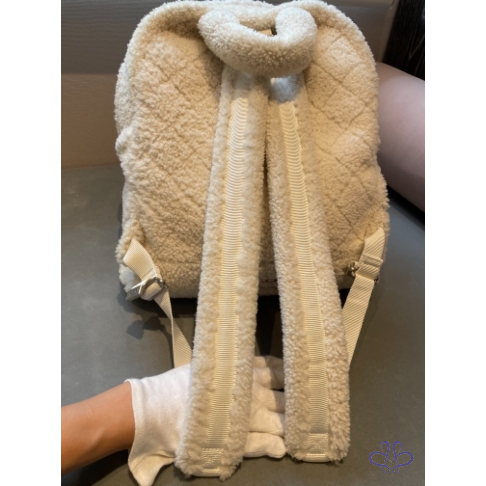 售Chanel羊毛後背吧!買來有使用一次,包況95新無髒污磨損,羔羊毛手感超好。白色超好看好清洗。(可送洗)包身很輕有型。