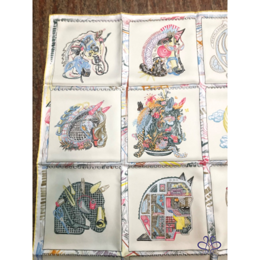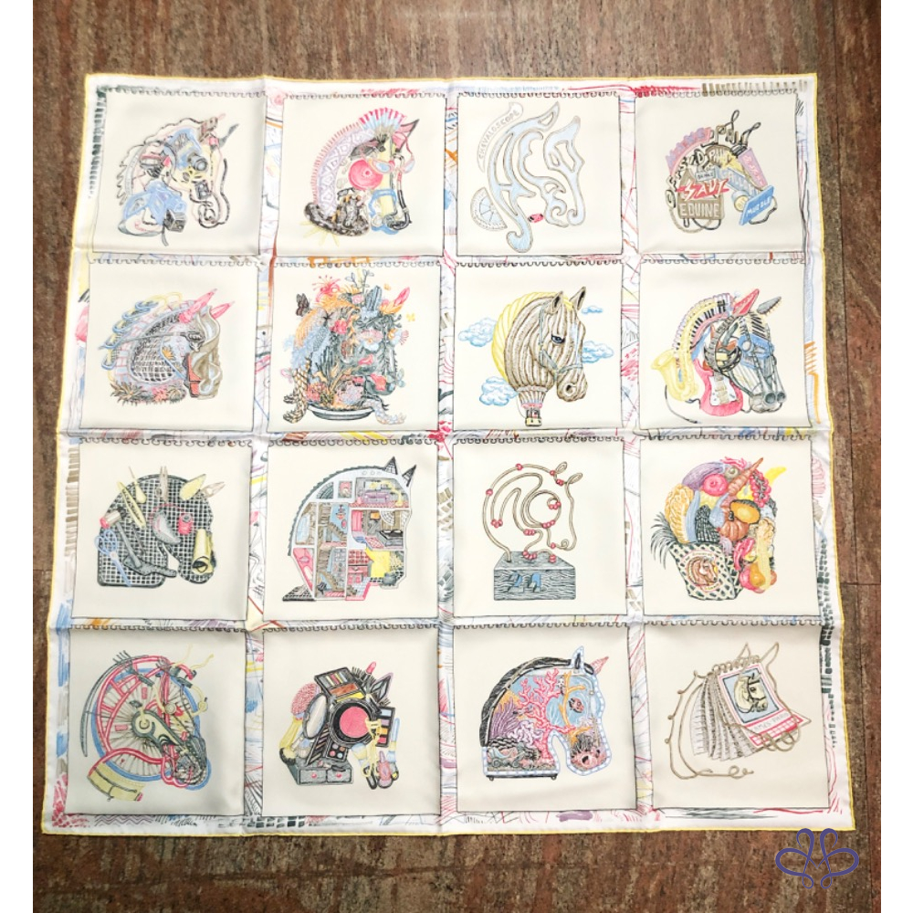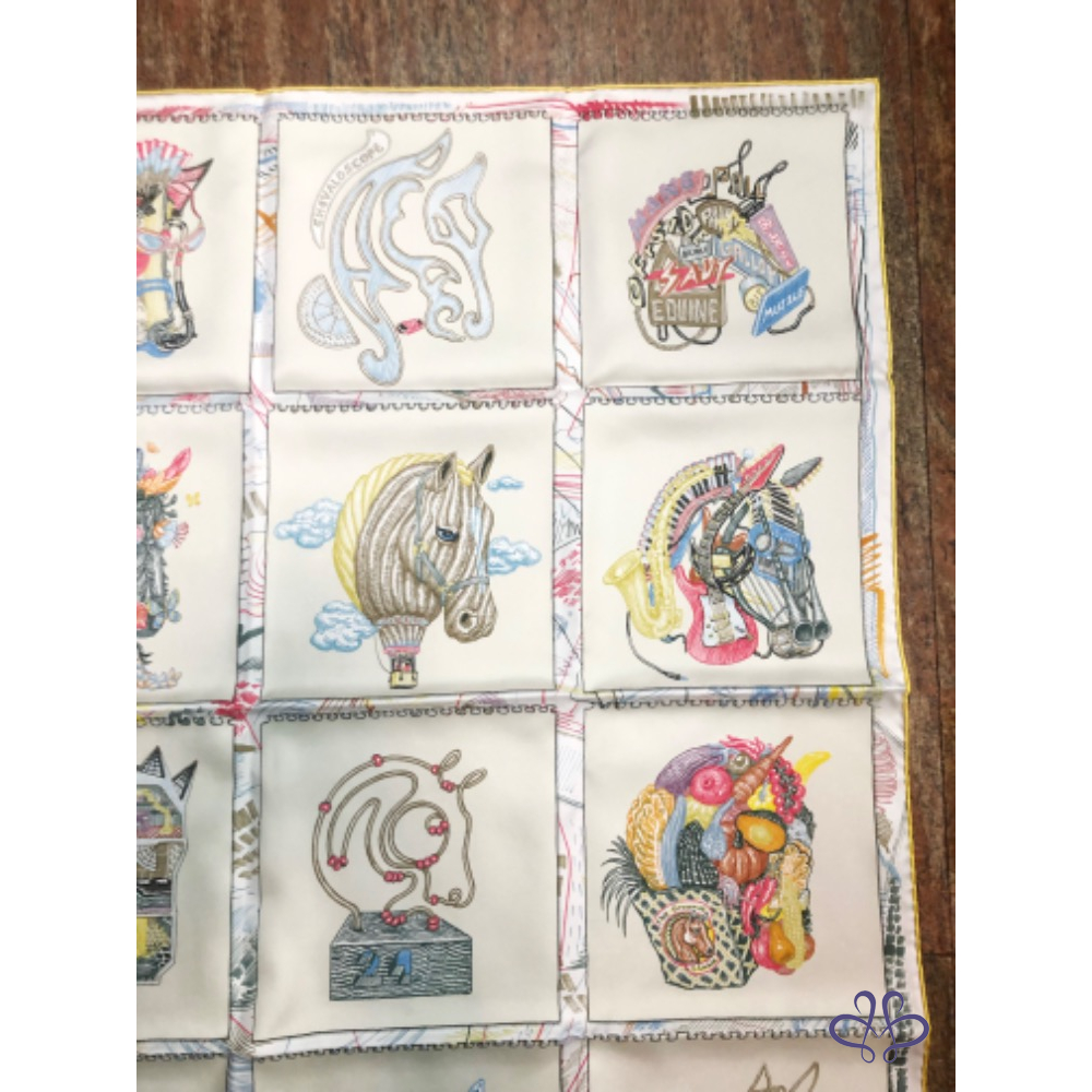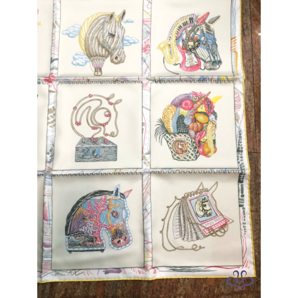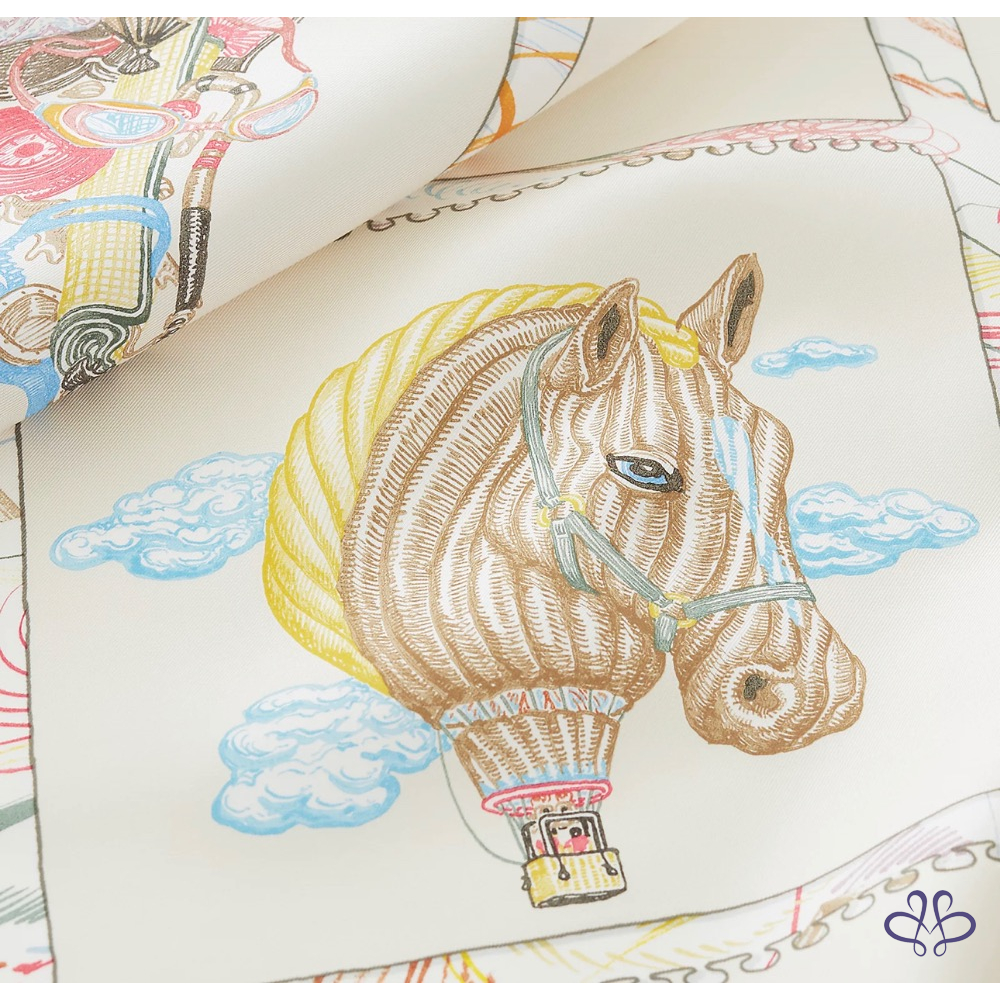 絲巾彷彿在說:“畫出一匹馬,我就能判斷你是怎樣的人。” Elias Kafouros在筆記本中描繪出16匹駿馬,將Hermès最鍾愛的動物與不同嗜好結合,同時呈現極致細膩的細節,包括園藝、樂器、遊戲、游泳,甚至熱氣球!我們可以透過此作品對駿馬看待世界的方式略知一二,並構想出截然不同的趣味生活方式,自由進行各種嘗試和改變,如同設計中的駿馬!