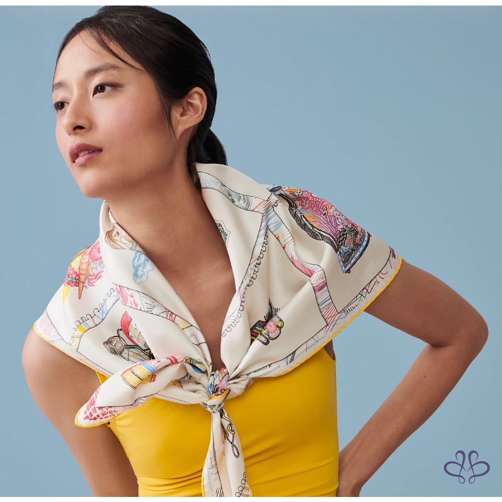 此款Hermès必備絲巾能搭配任何造型,風格百搭。無論是當圍巾、上衣、腰帶或是頭巾,這款絲巾皆可勝任!