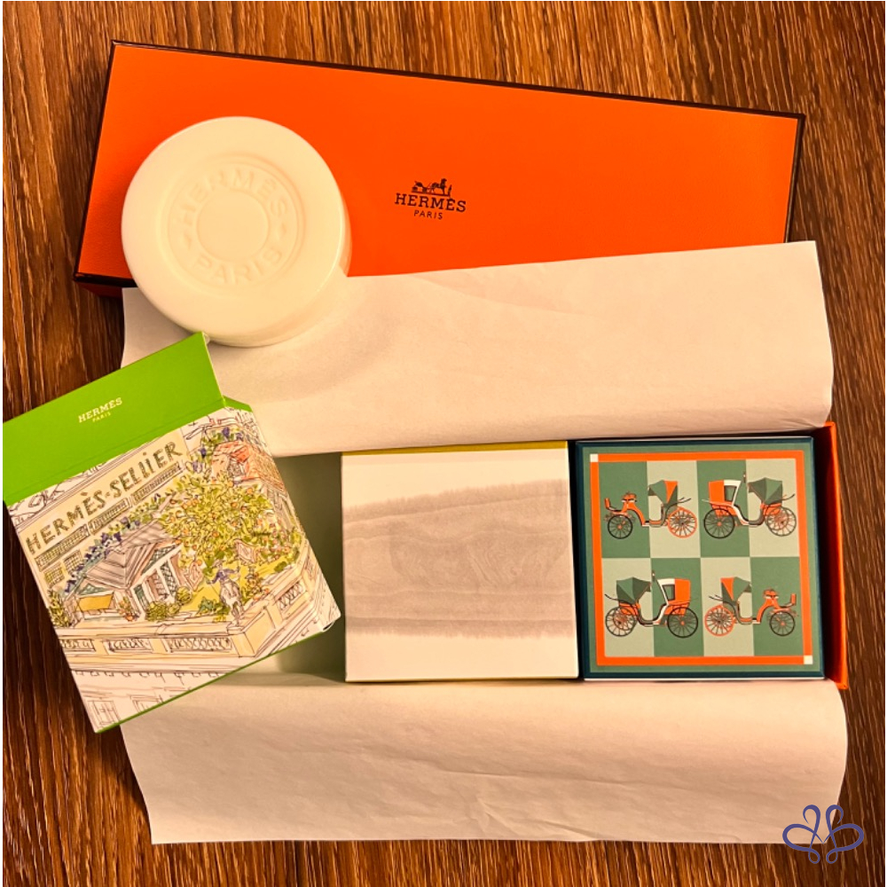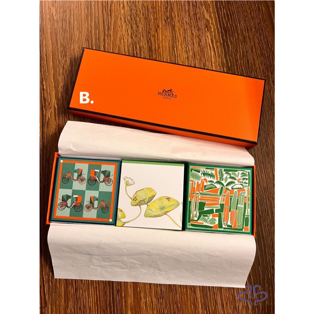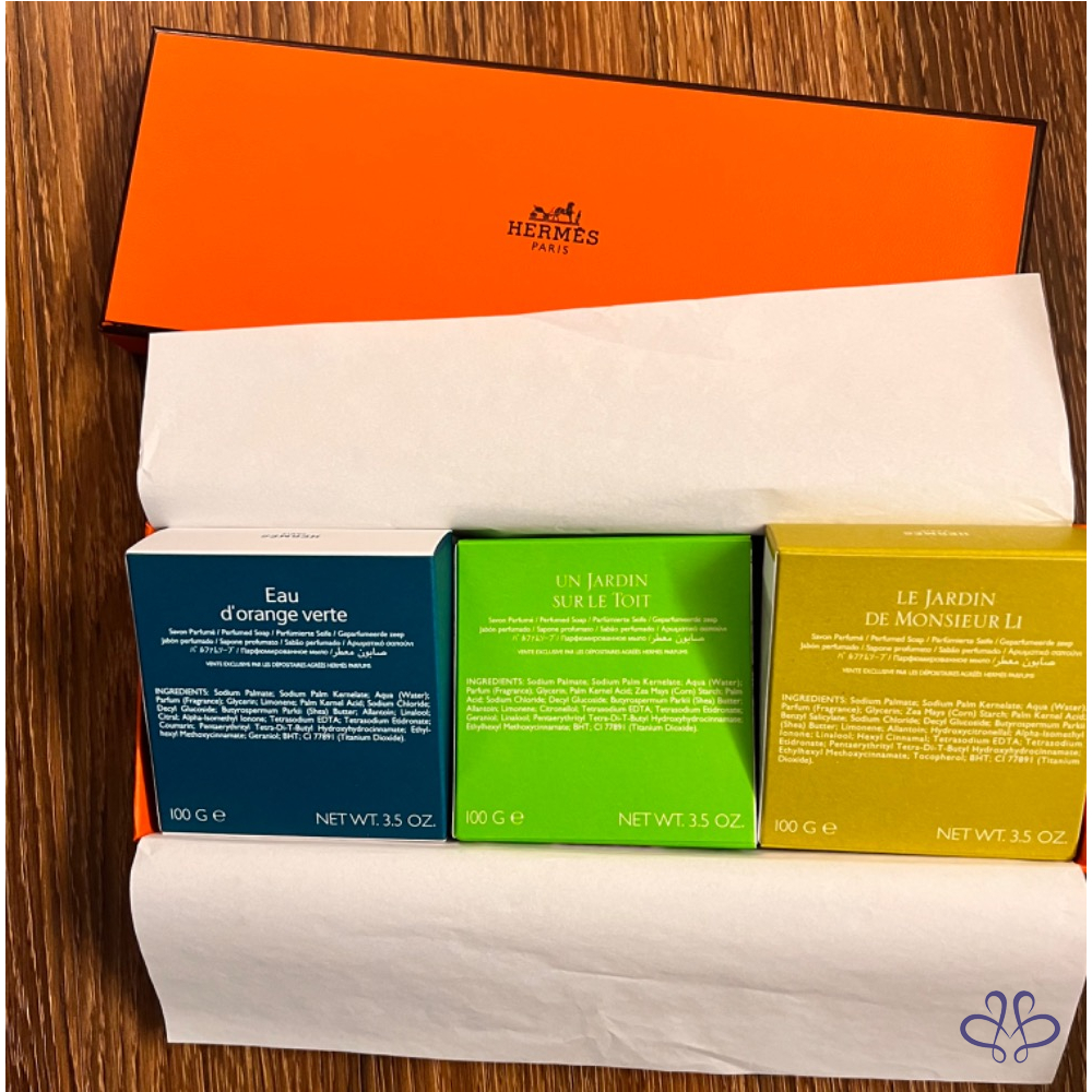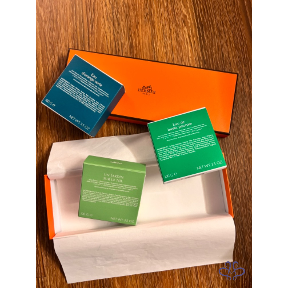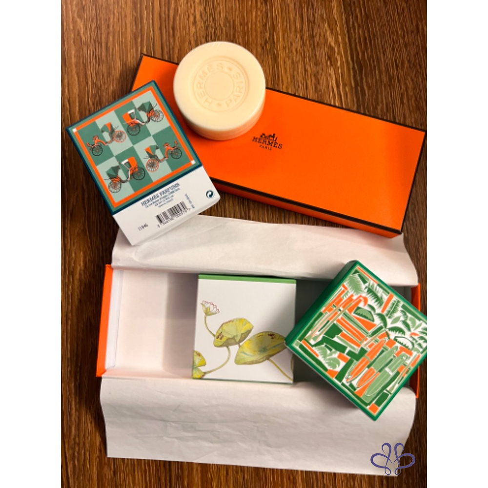 產品信息 售全新Hermes香氛香皂 三個一組不拆賣,有A.B兩組 購入價應該在2800 友人贈送。 甜甜價2500含運 (7-11店到店寄出) 過年送禮自用都很適合哦!! 含盒、紙袋 喜歡喊要!售出不退不換, 高標美人請繞道哦!
