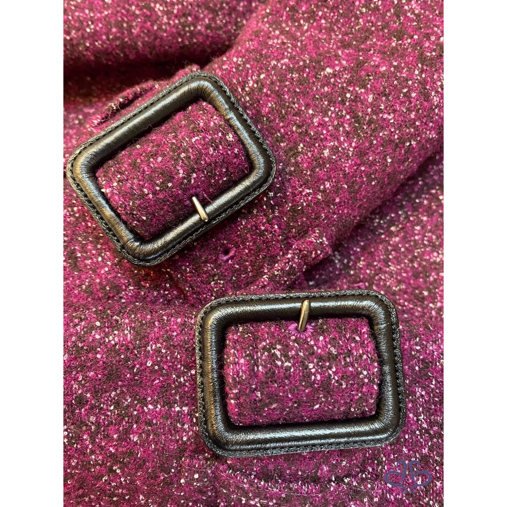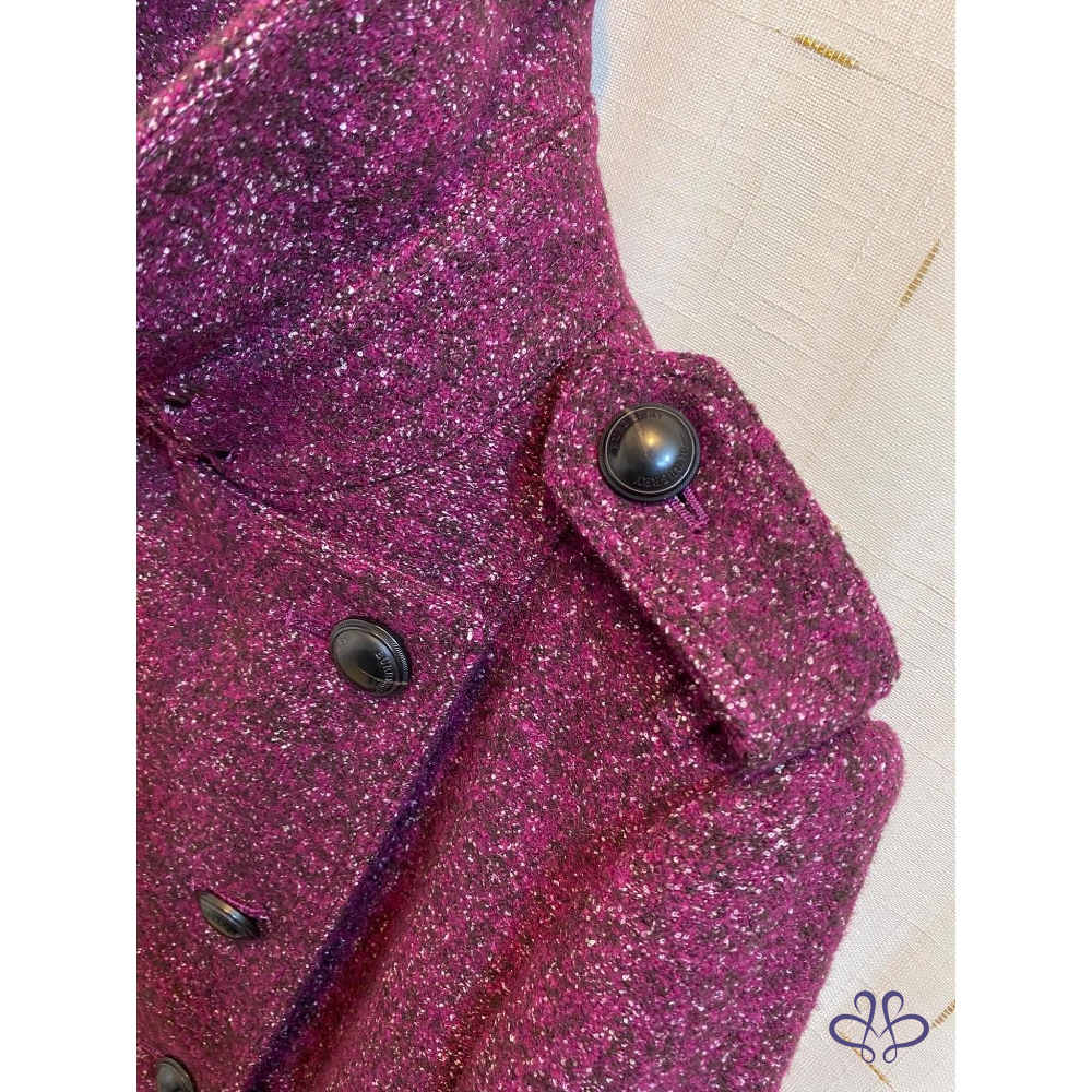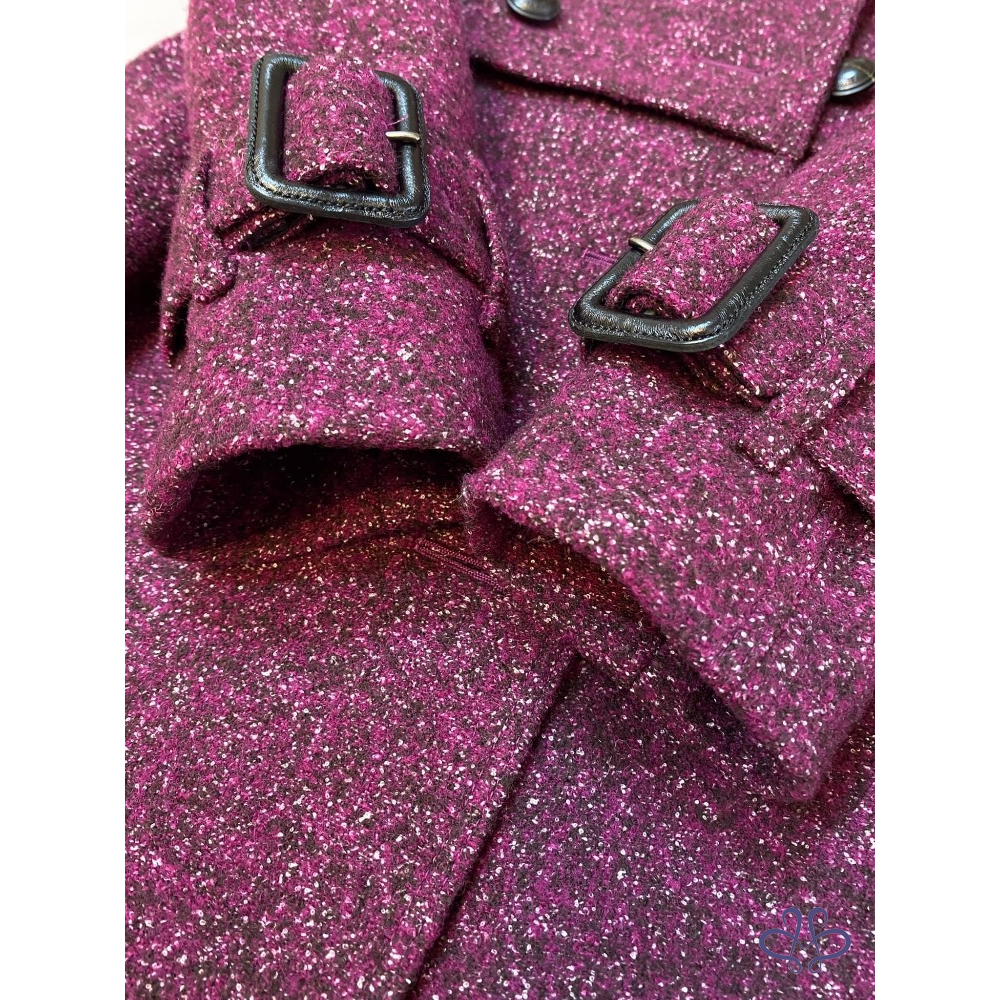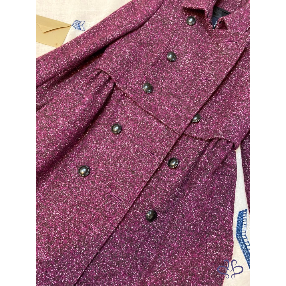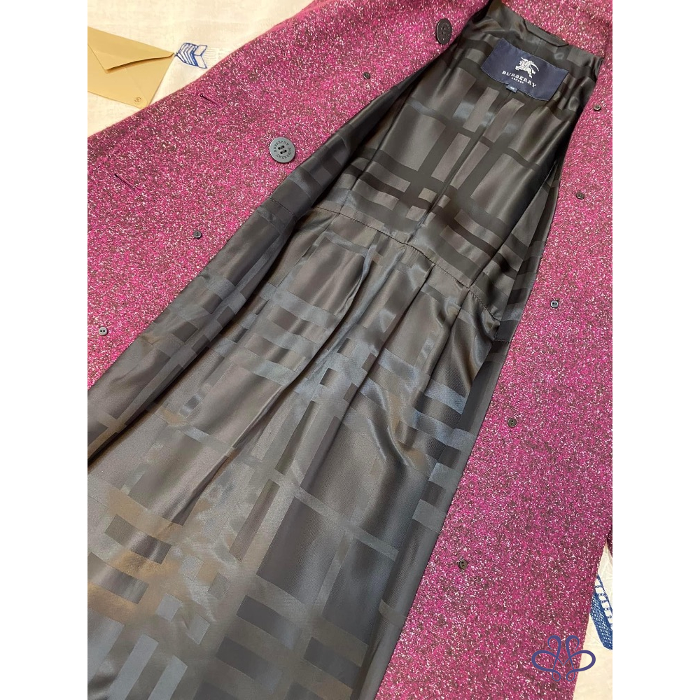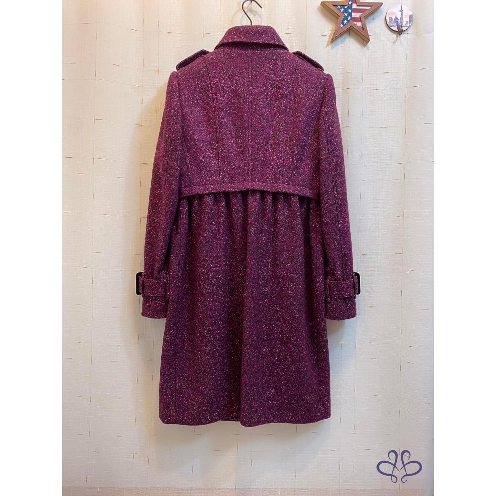????BURBERRY LONDON莓紫紅羊毛洋裝大衣